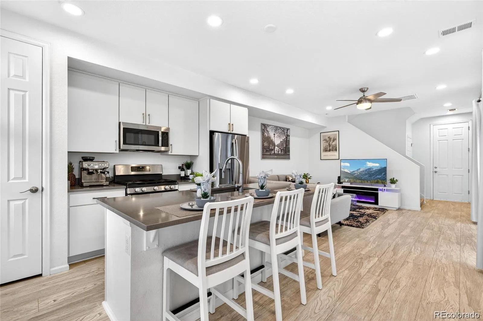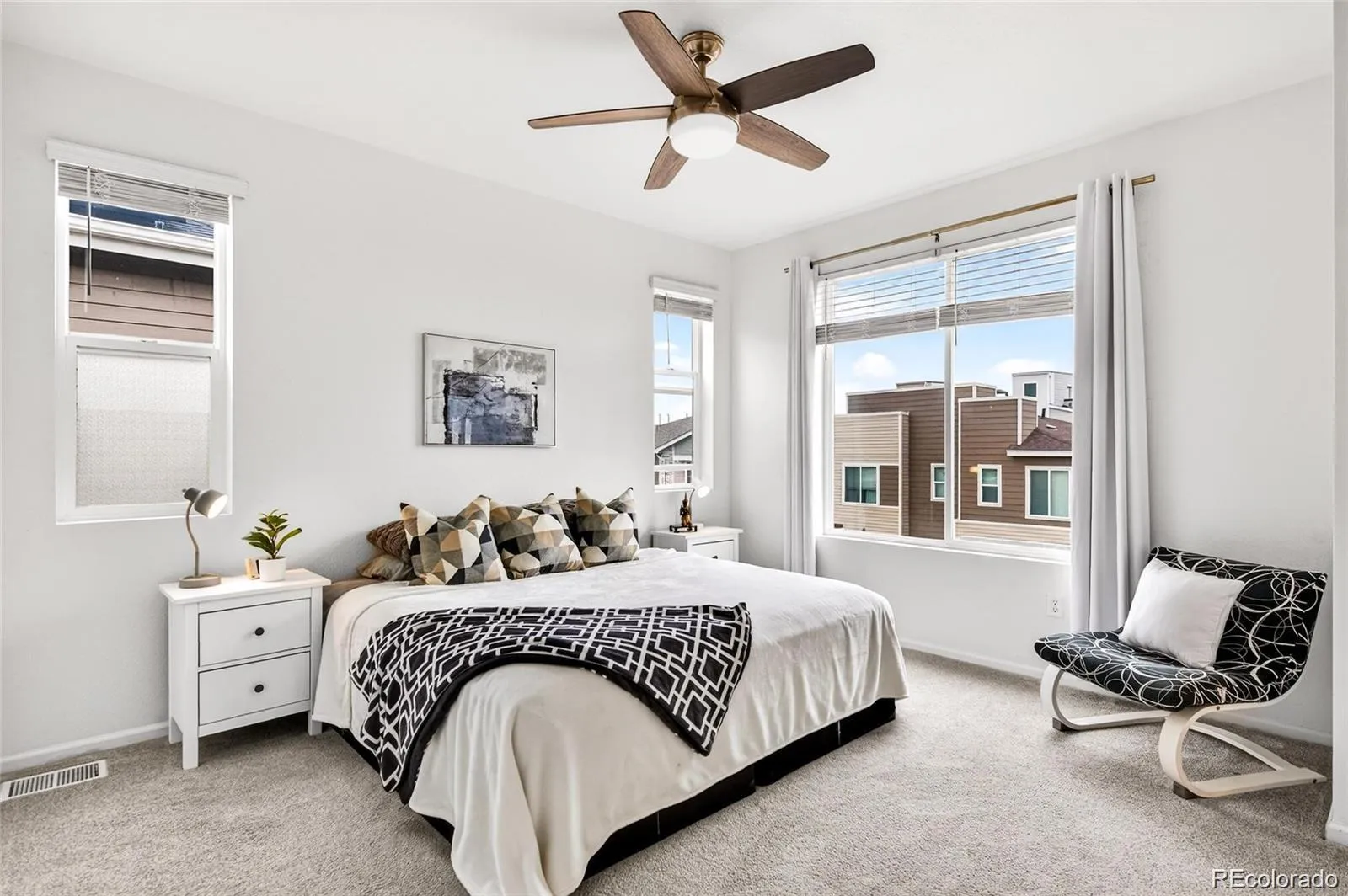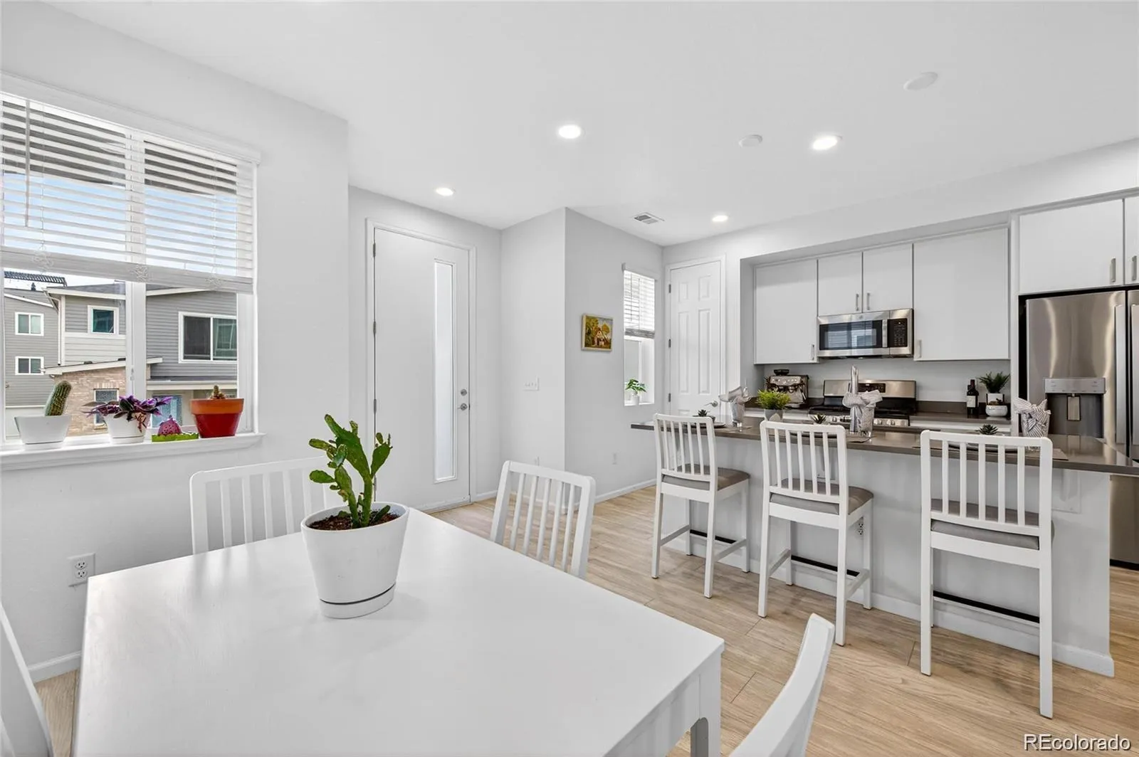 Welcome to this beautifully designed modern home that perfectly balances style, comfort, and convenience. Built in 2022, this move-in ready gem offers thoughtful finishes and an open layout ideal for everyday living and entertaining alike. The modern kitchen includes quartz countertops, a spacious island with bar seating, stainless steel appliances, a walk-in pantry, and a breakfast nook. The main floor living area also provides great natural light from oversized windows and sliding glass doors. Additionally, the covered patio gives you space to enjoy the outdoors year-round. Upstairs, the primary suite includes a large walk-in closet and a 3/4 bath. Two additional bedrooms share a full bathroom, and a conveniently located upper-level laundry room keeps daily routines effortless. A half bath on the main level adds extra convenience for guests. Step outside and enjoy a low-maintenance lifestyle, as the HOA handles all grounds maintenance, so you can spend your weekends doing what you love. The attached two-car garage rounds out this home’s practical appeal. Nestled in a quiet, friendly master-planned neighborhood with a park, playground, and walking paths, this home is minutes from top-rated schools, shopping, dining, public transit, and easy highway access. This one is move-in ready and checks every box, so don’t miss your chance to call it home.