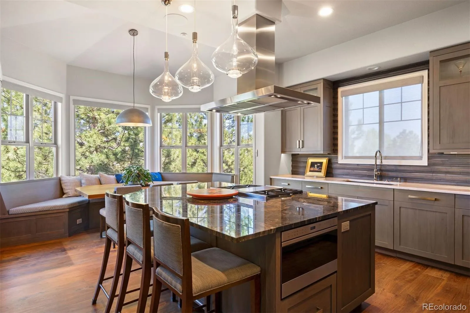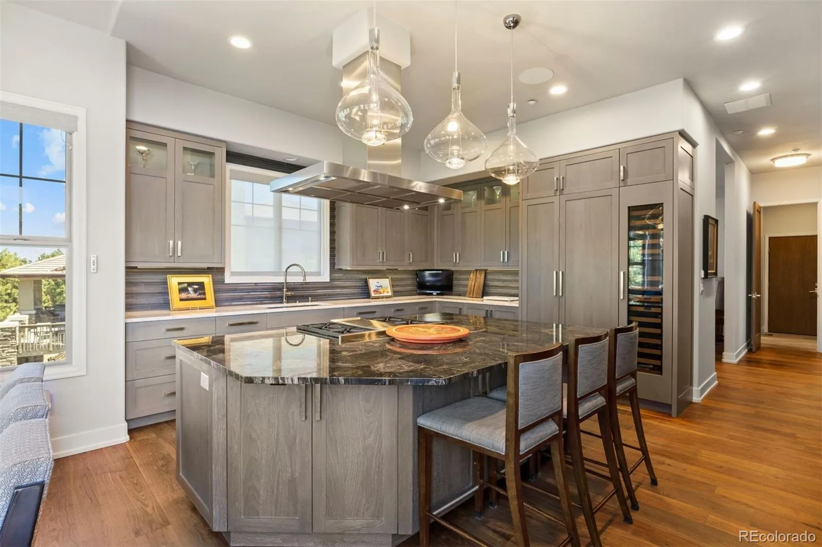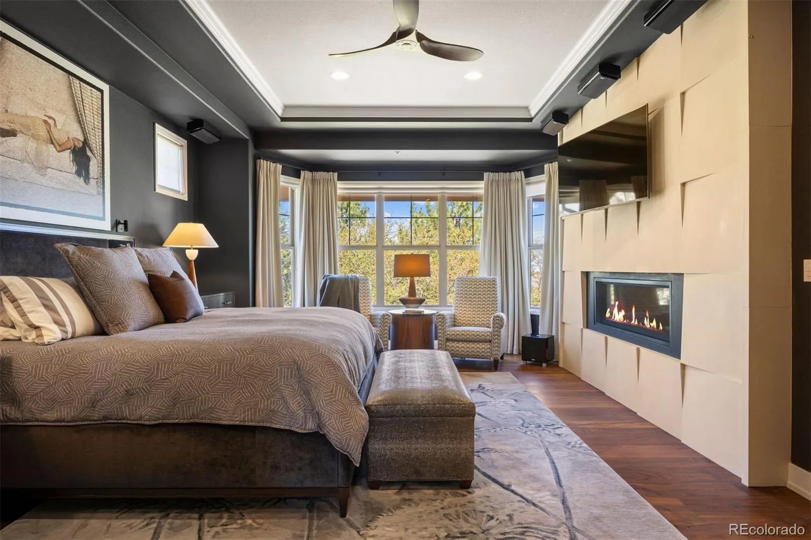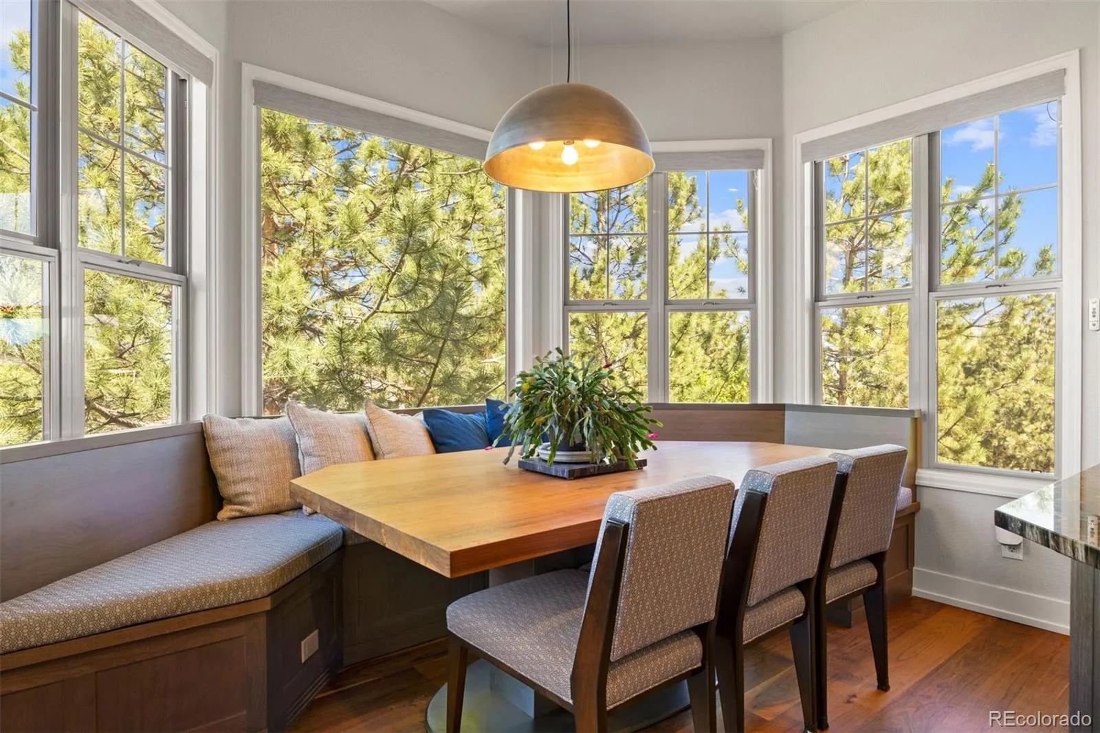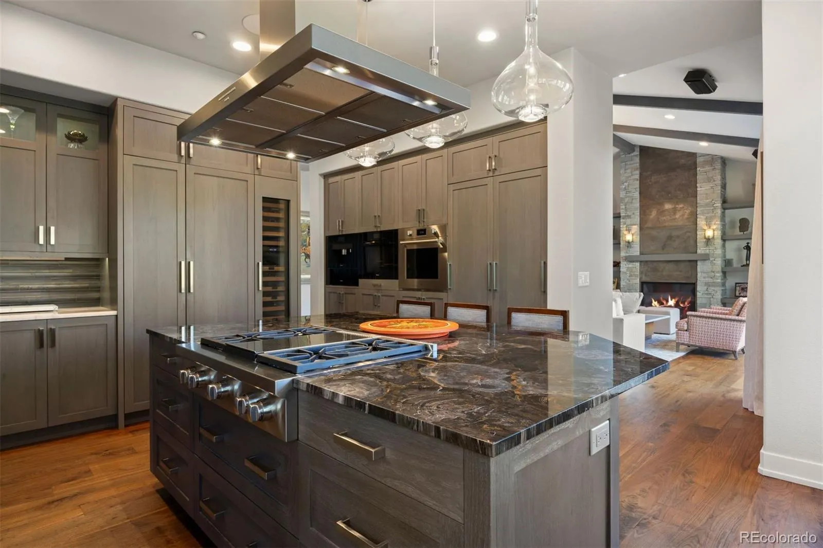 Completely reimagined and meticulously updated, this exceptional residence in The Village at Castle Pines showcases remarkable quality, craftsmanship, and sophisticated design at every turn. Every surface has been thoughtfully transformed with top-of-the-line finishes, creating a home that feels both luxurious and inviting, with light-filled spaces and timeless style throughout. The main level is designed for effortless living and entertaining, featuring stunning walnut floors, soaring cathedral ceilings with architectural beams, and expansive windows and sliding glass doors that open to a private deck with glimpses of mountain views and serene pine tree surroundings. The beautifully appointed kitchen is truly the heart of the home, offering premium appliances, custom cabinetry, and an inviting dining area perfectly suited for both everyday living and memorable gatherings. A richly appointed executive-style office, elegant dining room, and well-designed mudroom and laundry area add both comfort and functionality. The main-floor primary suite is a luxurious retreat, complete with a cozy fireplace, bay window, spa-inspired bath, and generous walk-in closets with custom built-ins. The fully finished lower level continues the home’s exceptional design, featuring high ceilings, a spacious family room with fireplace, and seamless indoor-outdoor living with direct access to a patio with dry below covering and beautifully private yard. A well-equipped entertaining bar, multiple guest bedrooms, and abundant storage provide flexibility for hosting family and friends. Situated on a quiet cul-de-sac with a three-car garage, this home offers a rare combination of refined elegance and everyday livability—all within the gated community of The Village at Castle Pines, known for its natural beauty, privacy, and premier amenities.