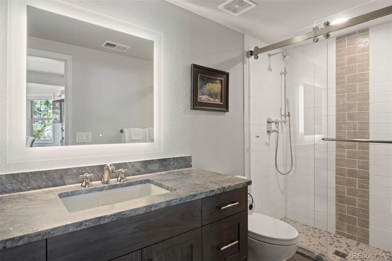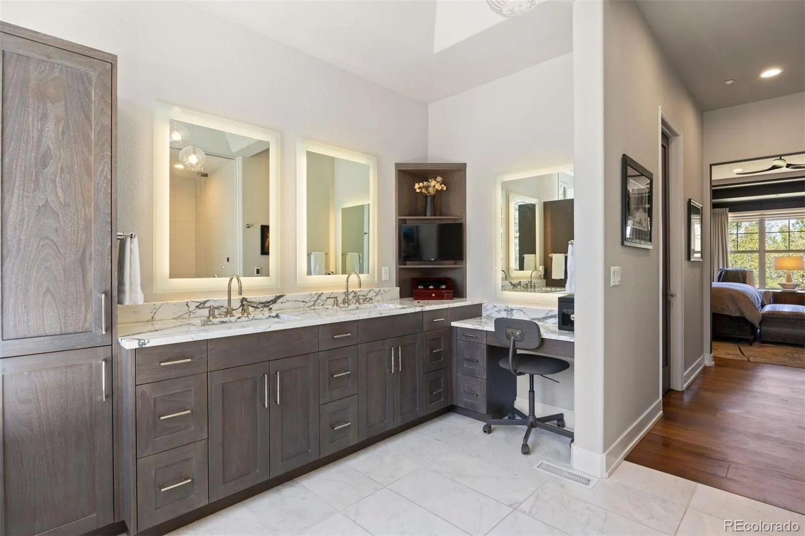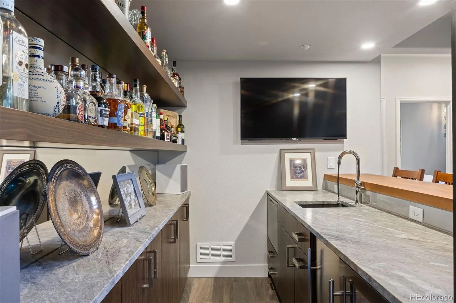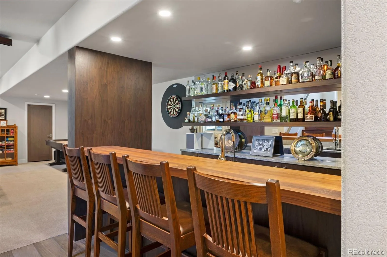 Completely reimagined and meticulously updated, this exceptional residence in The Village at Castle Pines showcases remarkable quality, craftsmanship, and sophisticated design at every turn. Every surface has been thoughtfully transformed with top-of-the-line finishes, creating a home that feels both luxurious and inviting, with light-filled spaces and timeless style throughout. The main level is designed for effortless living and entertaining, featuring stunning walnut floors, soaring cathedral ceilings with architectural beams, and expansive windows and sliding glass doors that open to a private deck with glimpses of mountain views and serene pine tree surroundings. The beautifully appointed kitchen is truly the heart of the home, offering premium appliances, custom cabinetry, and an inviting dining area perfectly suited for both everyday living and memorable gatherings. A richly appointed executive-style office, elegant dining room, and well-designed mudroom and laundry area add both comfort and functionality. The main-floor primary suite is a luxurious retreat, complete with a cozy fireplace, bay window, spa-inspired bath, and generous walk-in closets with custom built-ins. The fully finished lower level continues the home’s exceptional design, featuring high ceilings, a spacious family room with fireplace, and seamless indoor-outdoor living with direct access to a patio with dry below covering and beautifully private yard. A well-equipped entertaining bar, multiple guest bedrooms, and abundant storage provide flexibility for hosting family and friends. Situated on a quiet cul-de-sac with a three-car garage, this home offers a rare combination of refined elegance and everyday livability—all within the gated community of The Village at Castle Pines, known for its natural beauty, privacy, and premier amenities.