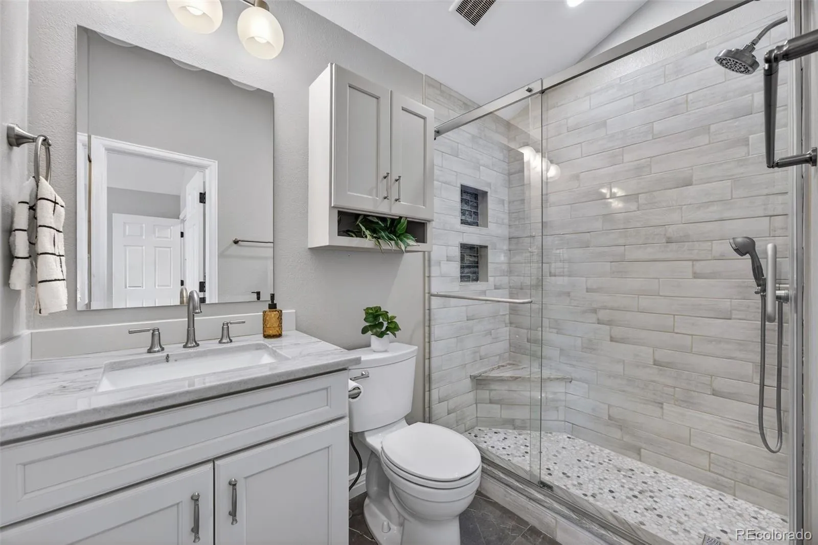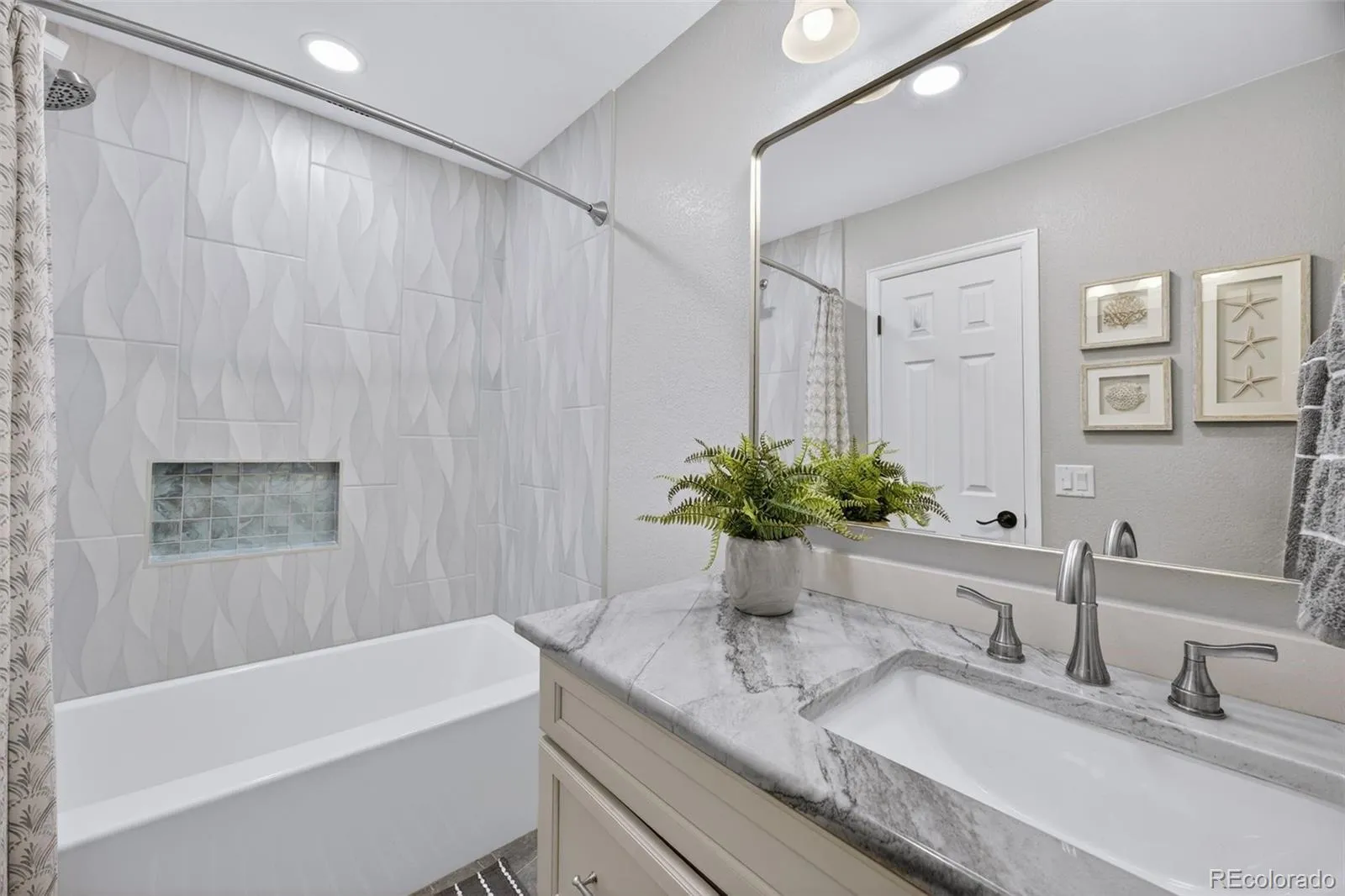 Welcome to this beautifully updated home in the heart of Highlands Ranch. Thoughtfully renovated and meticulously maintained, this 4 BR/3 BA home offers a layout designed for easy, everyday living. Step inside to rich, hand-scraped hickory hardwood floors, abundant natural light, and a warm, inviting feel throughout. The kitchen features granite countertops, upgraded cabinetry with crown molding and under-cabinet lighting, a subway tile backsplash, and newer LG appliances. Just off the kitchen, the living room opens to sliding glass doors leading to a private backyard with a patio, mature trees, and new landscaping, perfect for entertaining or relaxing. Also on the main level is a guest bathroom and a convenient laundry area off the garage with cabinetry for storage. Upstairs, all four bedrooms are conveniently located on the same level, including a spacious primary suite with a renovated bathroom featuring a marble tile shower, dual shower heads, and elevated finishes. Additional bedrooms offer flexibility for guests, home gym or a home office. The finished basement provides additional living space, while updates including a newer furnace, A/C, and radon mitigation system offer peace of mind. Located in a vibrant community with access to four rec centers, parks, trails, and top-rated schools, this home offers the perfect balance of lifestyle and convenience. Enjoy walkable access to parks, summer concerts, and Highlands Ranch fireworks right from your backyard. Schedule your showing today!