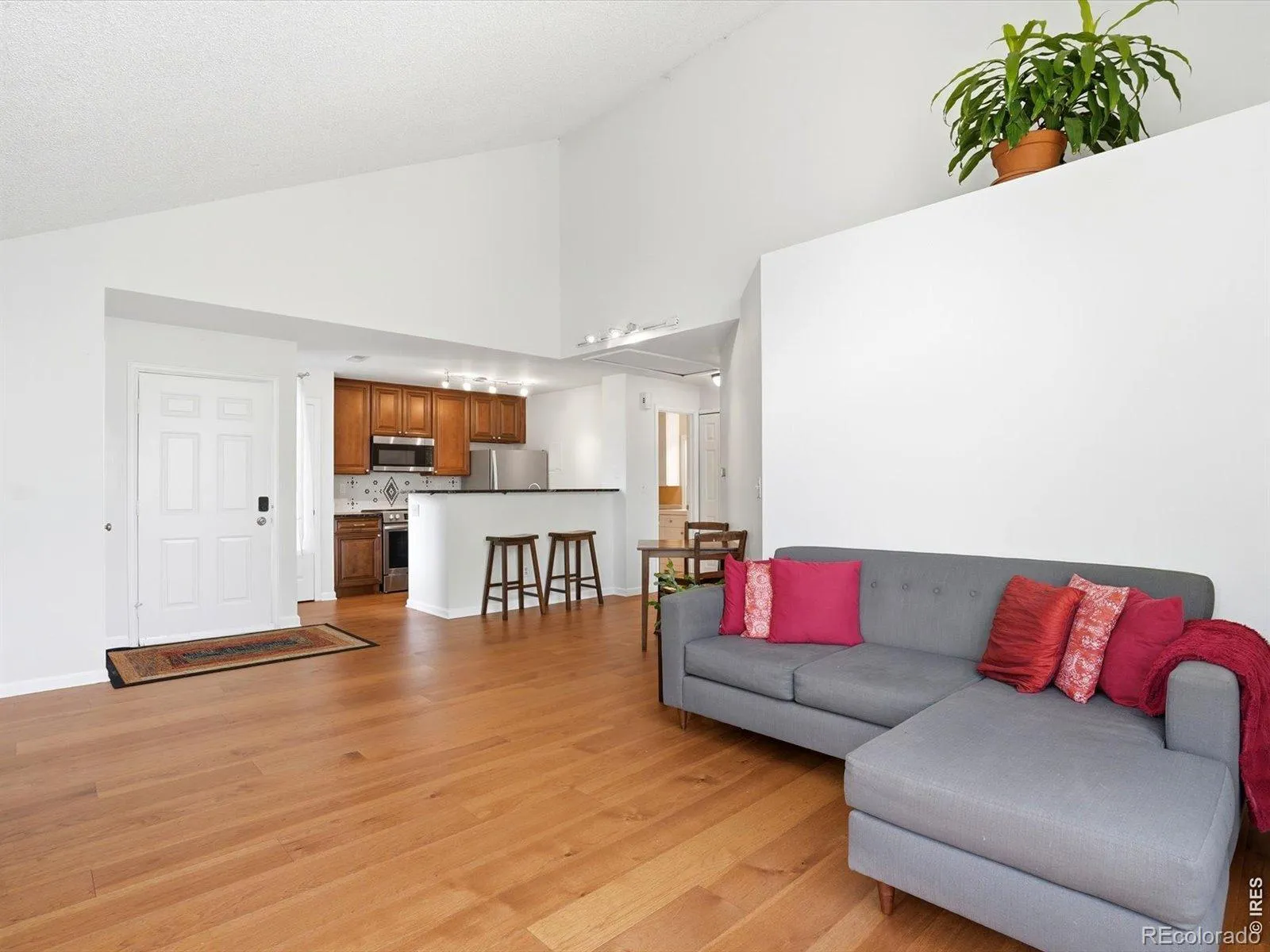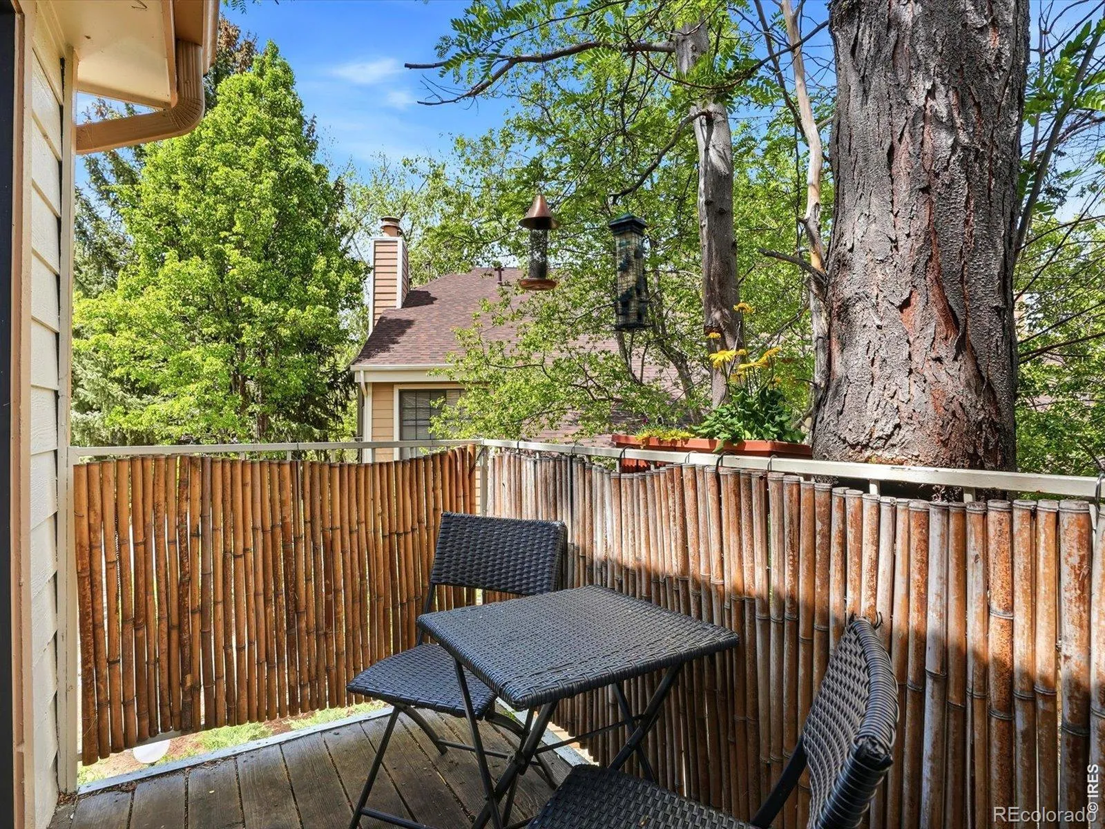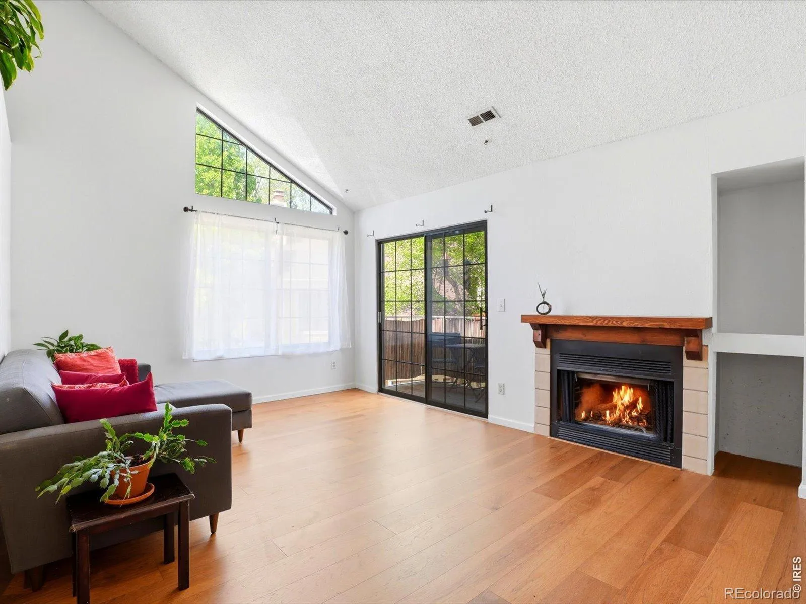 Top-floor, sunlit, and thoughtfully upgraded, this exceptional Powderhorn Condos one-bedroom, one-bath condo offers comfort, style, and an ideal Gunbarrel location. Soaring 20-foot vaulted ceilings in the main living area create dramatic volume and natural light, while engineered hickory hardwood floors, a cozy fireplace, and a private deck nestled among mature trees deliver warmth and charm rarely found in this price point.The fully renovated kitchen is a standout feature, designed with custom solid maple cabinetry extended to the ceiling, granite countertops with a hand-chiseled edge and leathered finish, premium stainless appliances, and a hand-laid penny tile backsplash that gives the space a true custom-home feel. Popcorn ceilings have been removed in both the kitchen and bedroom, enhancing the clean, modern aesthetic.The spacious bedroom includes new carpet and a ceiling fan, while the updated bathroom and fresh interior paint make this home move-in ready. Additional value includes a newer water heater and top-floor privacy. Residents of Powderhorn enjoy beautifully maintained grounds, access to a large private park, and HOA management focused on value, with recent dues reduced to $485/month. Conveniently located near everyday essentials including King Sooper, and popular dining destinations such as Avery Brewing Company, with quick access to trails, parks, downtown Boulder, Louisville, and Longmont. Ideal for first-time buyers, investors, or anyone seeking a move-in-ready Boulder condo with vaulted ceilings, updated finishes, and a private outdoor retreat in one of Gunbarrel’s most convenient communities.