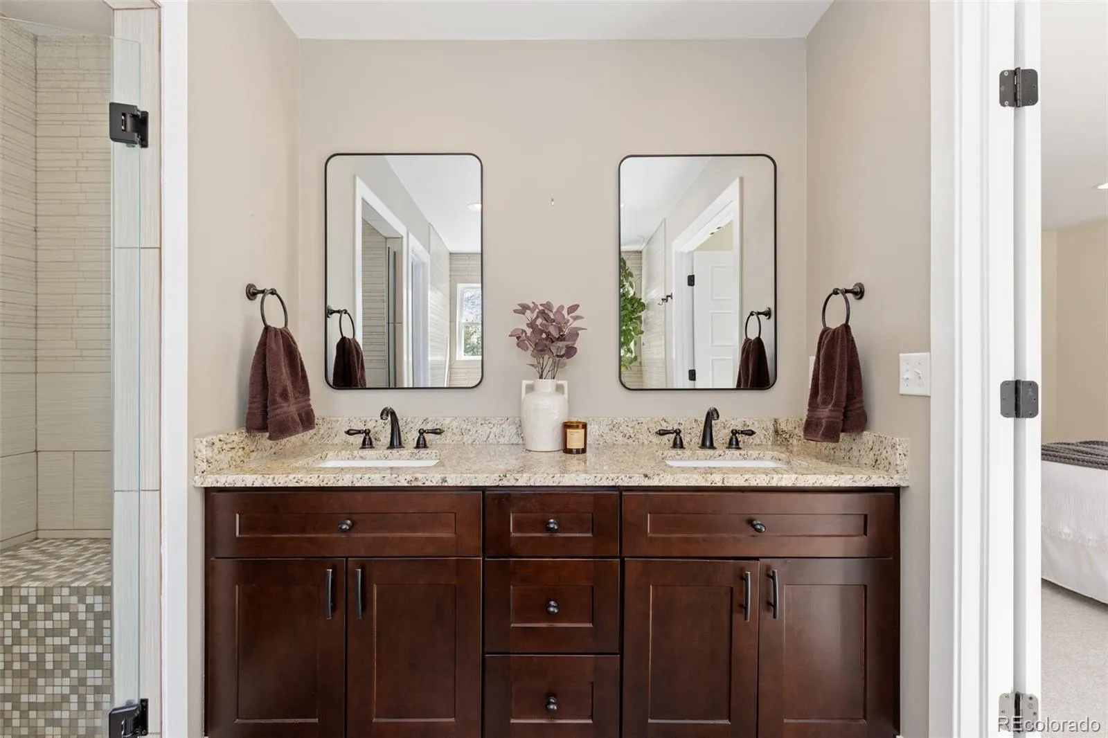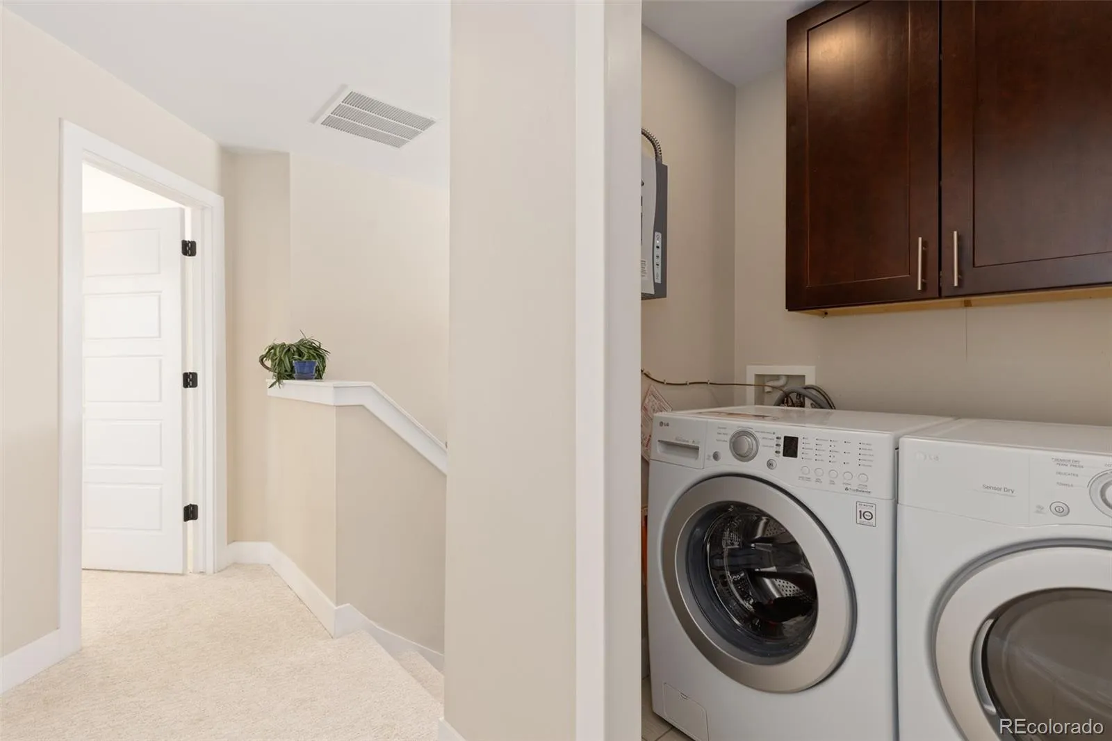 Upstairs, the spacious primary suite serves as a private retreat, complete with a custom-designed closet, a five-piece en-suite bath, and a private balcony ideal for taking in sunset views over the mountains. Two additional large bedrooms share a Jack-and-Jill bath, and the upstairs laundry adds everyday convenience.
