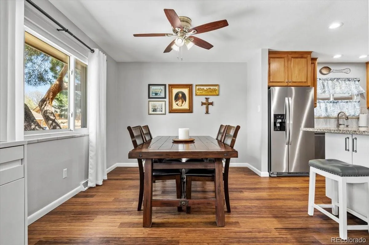 Welcome to this inviting 4-bedroom home in highly desired Old Littleton! Situated on a .21-acre lot in a quiet, established neighborhood, this residence has been completely updated in the past six years and offers incredible value. Step inside to an open, light-filled floor plan featuring westerly mountain views, a neutral color palette, and updated LVT flooring and carpet. The heart of the home is the open-concept kitchen with custom 40″ maple cabinets, granite countertops, a central island, and stainless steel appliances. It flows seamlessly into the dining and living areas, highlighted by elegant built-ins and a gas fireplace. The upper level also features a primary suite with a full ensuite bath, plus a second bright bedroom. Heading downstairs, the pristine garden level family room features a gas fireplace, track lighting, built-in shelving, 2 sunny bedrooms & 3/4 bath with laundry. Quality Andersen windows throughout–high quality & super easy to clean. Blink doorbell system is in place with cameras. Outside, enjoy a large, fully fenced private backyard with mature trees–Blue Spruce, Scottish Pine, Lilac etc. The yard has been newly seeded, partially Xeriscaped with river rocks, & you have a little garden beyond the white picket fence. Spend many evenings enjoying dinner on the covered patio, perfect for entertaining. Relax with a friend on the old fashioned swing, drink in hand. Adjacent is a built-in shed fitted with motion sensor lighting, great for wood-working, hobbies or whatever you fancy. The 2-car garage has a great workbench, storage, window, and Rainbird sprinkler box for the irrigation system. This property has great walkability, too! You are just 1 1/2 blocks to the Highline Canal offering miles of walking/biking trails. Top-rated Littleton schools to boot. So many reasons to love this home. Don’t miss a great opportunity!