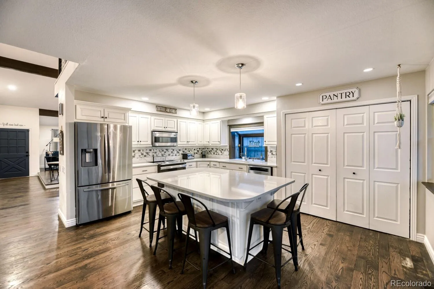 Welcome to the largest model home in one of Arvada’s most desirable neighborhoods. This beautifully updated 4-bedroom, 4-bathroom home that perfectly blends comfort, style, and functionality is ready for it’s new owners. From the moment you step inside, you’ll notice the attention to detail and quality upgrades throughout. The spacious kitchen is a true centerpiece, featuring gorgeous quartz countertops, ample cabinetry, and plenty of room for cooking and entertaining. The home boasts refinished hardwood floors, brand-new carpet, and fresh interior paint, creating a bright and modern feel in every room. Downstairs, the fully finished basement includes a dedicated theater room—perfect for movie nights, game days, or relaxing with family and friends.