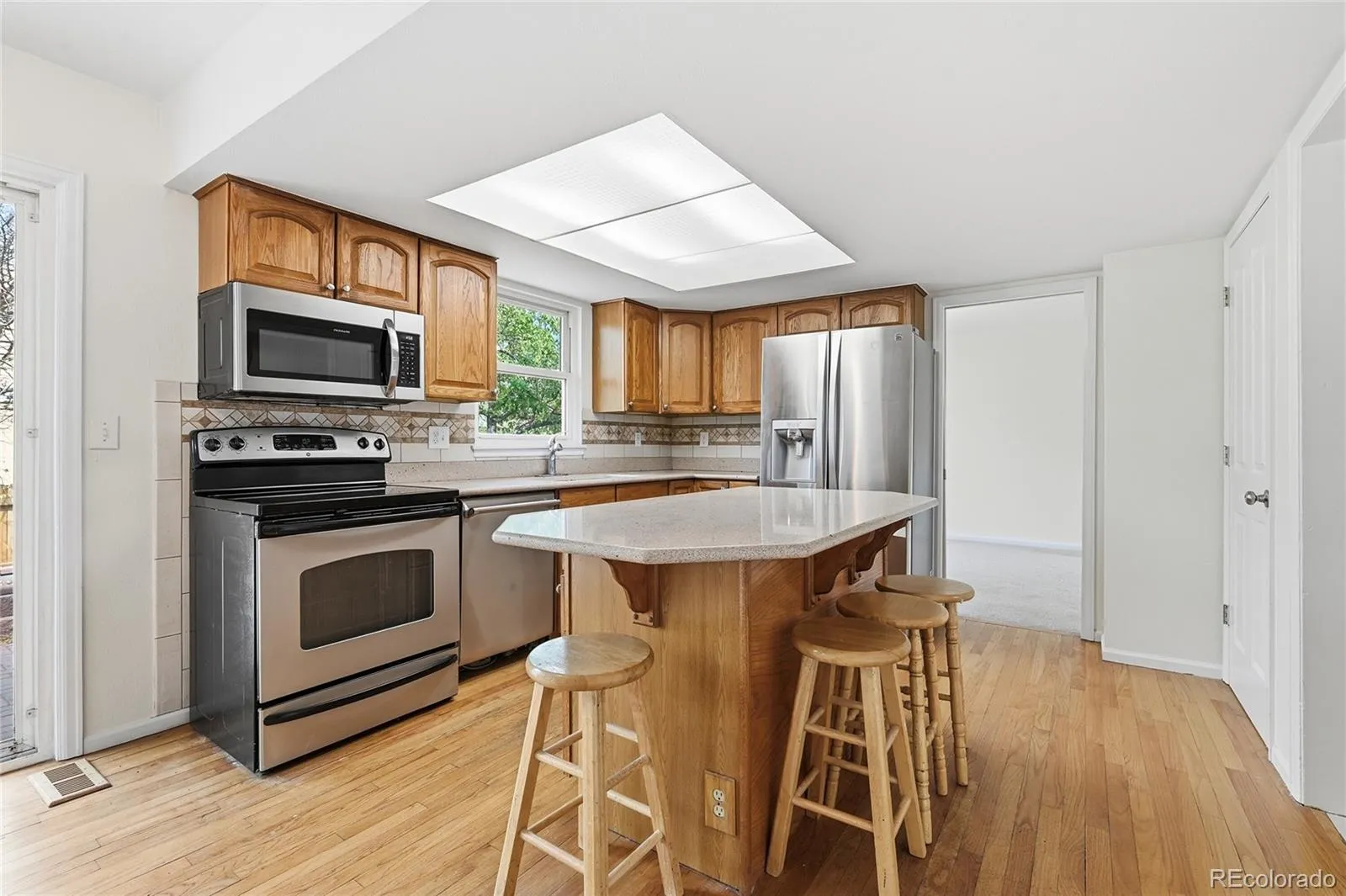 You will not want to miss this move-in ready 2-story home in desirable Cherry Creek Schools just steps away from Expo Park. This home is ready for your decorating touches with brand new interior paint and carpet. When you enter the home, you are greeted by hardwood floors that extend through the entryway to the kitchen, main floor laundry, and 1/2 bath. The kitchen comes equipped with stainless steal appliances, real wood cabinets, and corian countertops. The family room features vaulted ceilings and a wood burning fireplace for those cold Colorado Winters. Rounding out the main floor is a large living room and dinning area with traditional shutters on all the windows. The primary bedroom upstairs includes new LVP flooring in the 5-piece bathroom. The two secondary bedrooms are bright and spacious. In the basement, there is a large bedroom that could also be used for an entertainment space-including its own full bathroom and ample storage space. The large brick patio in the back yard is perfect for everything from entertaining to relaxing. Expo park is on lot away with views of the park from upstairs windows. With easy access to Anschutz, Buckley SFB, DTC and downtown, this home is centrally located. A home of this quality in Cherry Creek Schools at this price is sure to go fast, so don’t delay.
