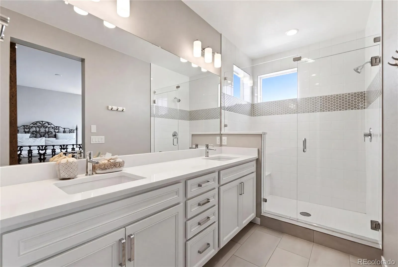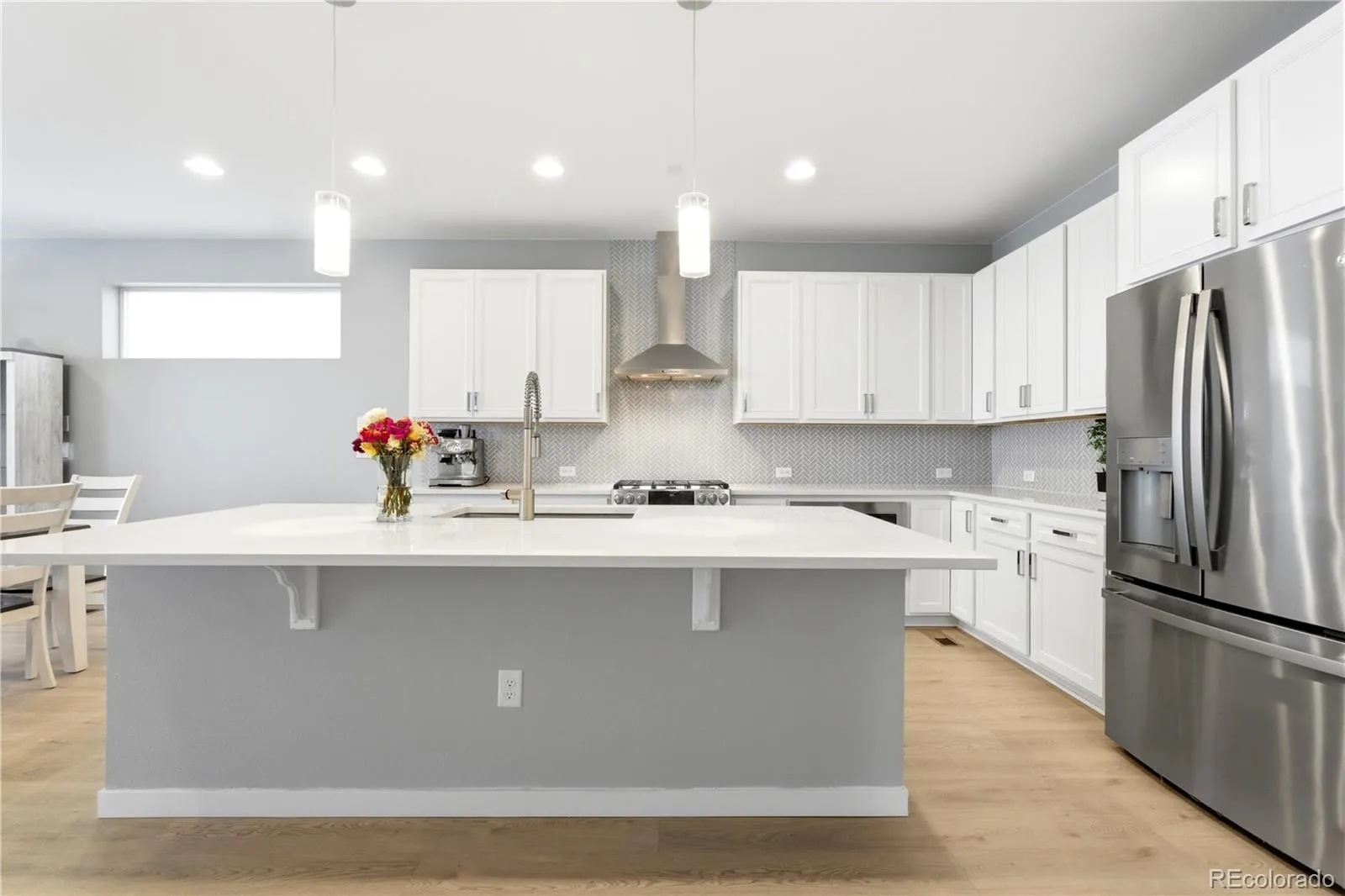 Upstairs, the primary suite offers a walk-in closet and a luxurious 4-piece bathroom with an oversized shower, custom tile work, quartz countertops, custom pulls, and a Euro-glass shower door. Two more bedrooms and a full bath complete the upper level.