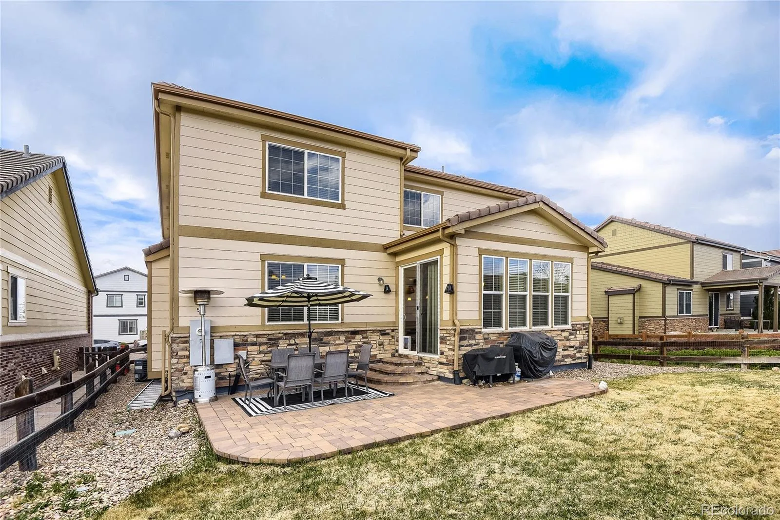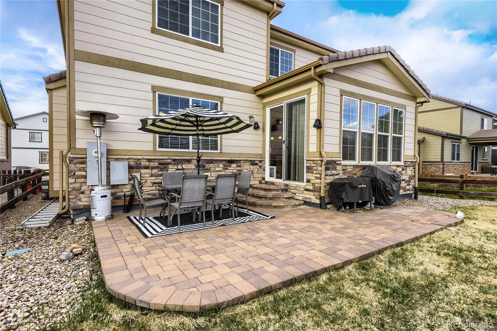 Beautiful 5-bedroom, 3-bath home in the desirable Meridian International subdivision. ~ Backing to open space and scenic walking trails on a quiet street. ~ This inviting home features an open floor plan with hardwood floors on the main level, a spacious living room with gas fireplace, and abundant natural light throughout. ~ The chef’s kitchen is perfect for entertaining, complete with a large island, granite countertops, tile backsplash, 42” cabinetry, double oven, gas cooktop, and included stainless steel appliances. ~ Upstairs offers 4 bedrooms including a generous primary suite with walk-in closets and private bath, plus convenient upper-level laundry. ~ The unfinished basement with four windows provides excellent potential for future expansion or custom design. ~ Enjoy outdoor living with a paver and concrete patio, private backyard, and direct access to trails. ~ Additional highlights include A/C, sprinkler system front and back, radon mitigation system, ceiling fan, and a 2-car garage with high ceilings for extra storage. ~ Fiber cement siding and quality finishes throughout. ~ Located close to community pool, parks, dining, and major commuter routes—this home offers comfort, efficiency, and an unbeatable location. ~ Call today to schedule a private showing.