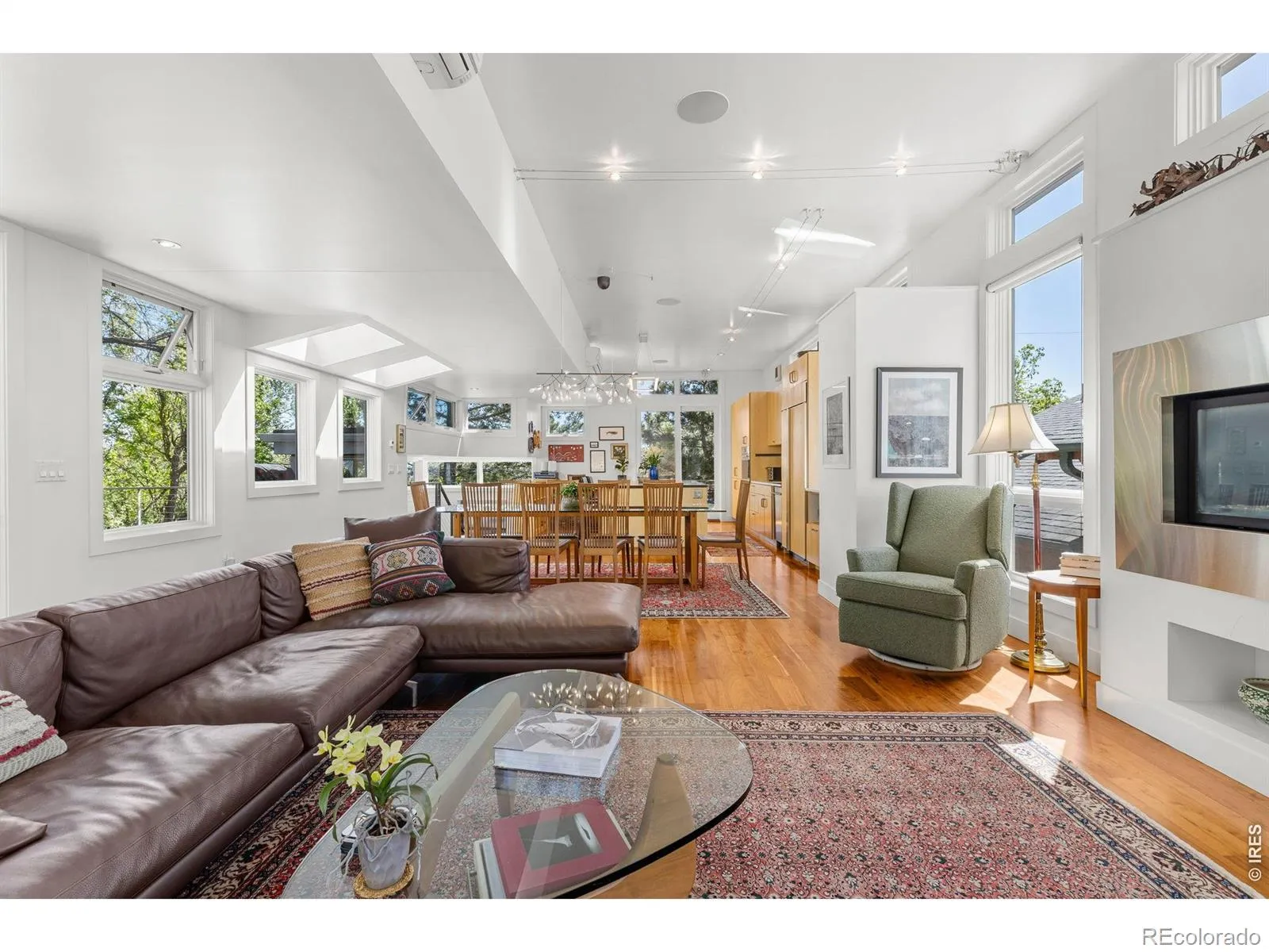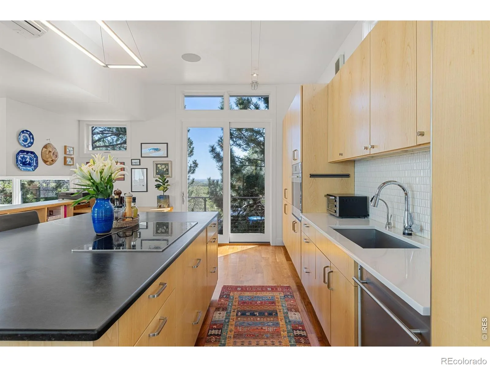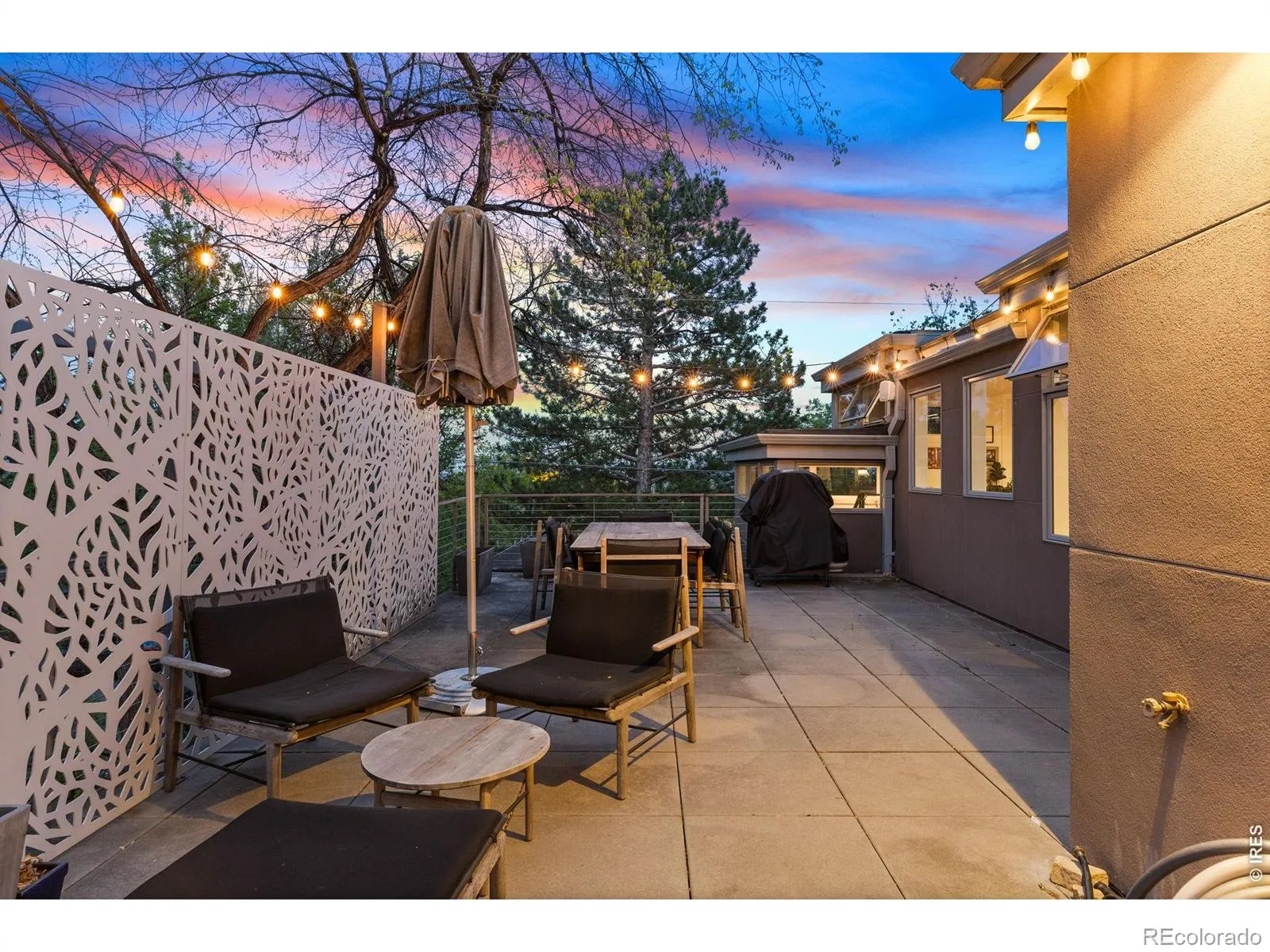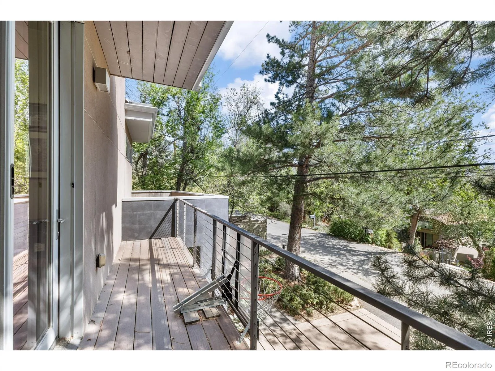 Experience urban sophistication at the base of Mt. Sanitas in this stunning custom-built green home. Located in the highly sought-after Newlands neighborhood, this residence features a striking modern facade and bright, open living spaces designed to celebrate its premier location. Backing directly to protected open space, the property offers a rare personal sanctuary with world-class trail access right outside your back door. The interior is defined by high-quality finishes, gleaming hardwood floors, and thoughtfully placed oversized windows that flood the home with natural light while showcasing serene treetop views. The heart of the home is the upper level, where a chef-inspired open kitchen, dining area, and living room merge into a singular expansive space with spectacular views that transition effortlessly to the tranquil outdoor setting. The top-floor living areas offer a unique treehouse feel, opening seamlessly to a large deck and buff sandstone patios for high-end indoor-outdoor entertaining. In the backyard, the Silver Lake Ditch meanders through the patio and yard space, creating a soothing natural soundtrack that transitions beautifully into the foothills. The primary suite serves as a spa-inspired retreat with a five-piece bath and steam shower, while a dedicated rec room provides custom built-ins and an integrated television for relaxation. While the home feels remarkably private, it is perfectly positioned near Boulder’s most popular hotspots. You are just steps from the Goat Trailhead and a short stroll from the expansive North Boulder Park. Convenience is at your fingertips with the Ideal Market shopping center nearby, home to local favorites like Santos, Sweet Cow Ice Cream, and Beleza Coffee. Plus, the iconic dining and shopping of the Pearl Street Mall are only minutes away, offering the ultimate Boulder lifestyle.