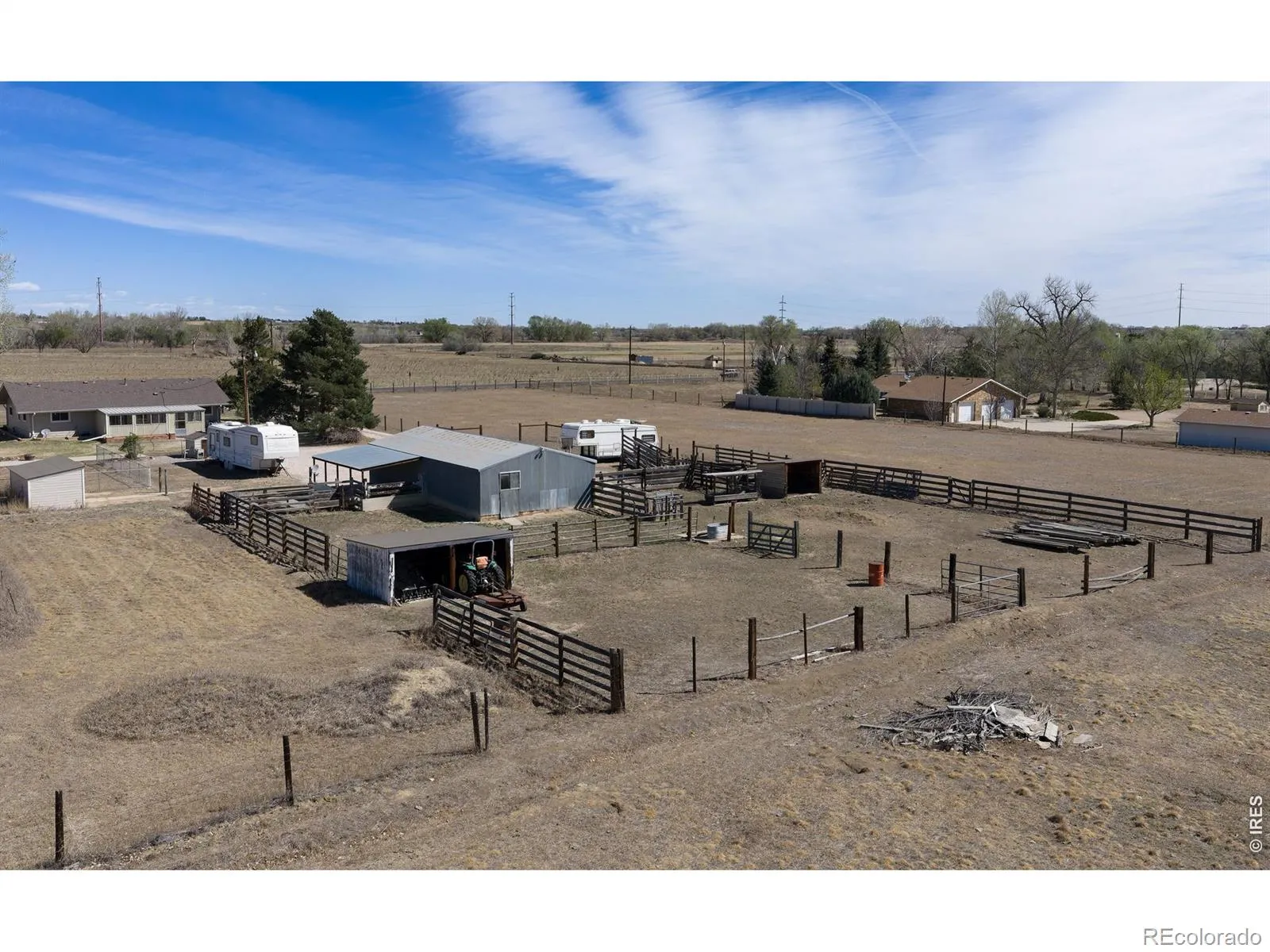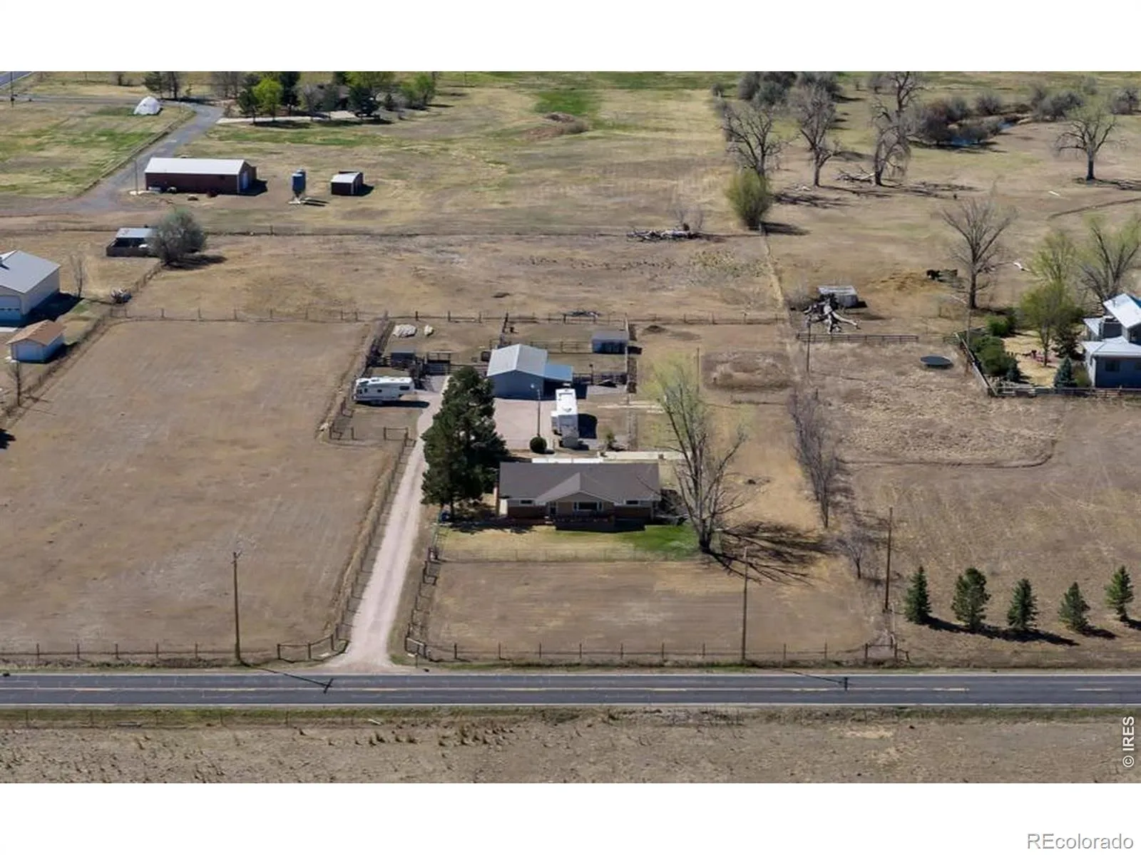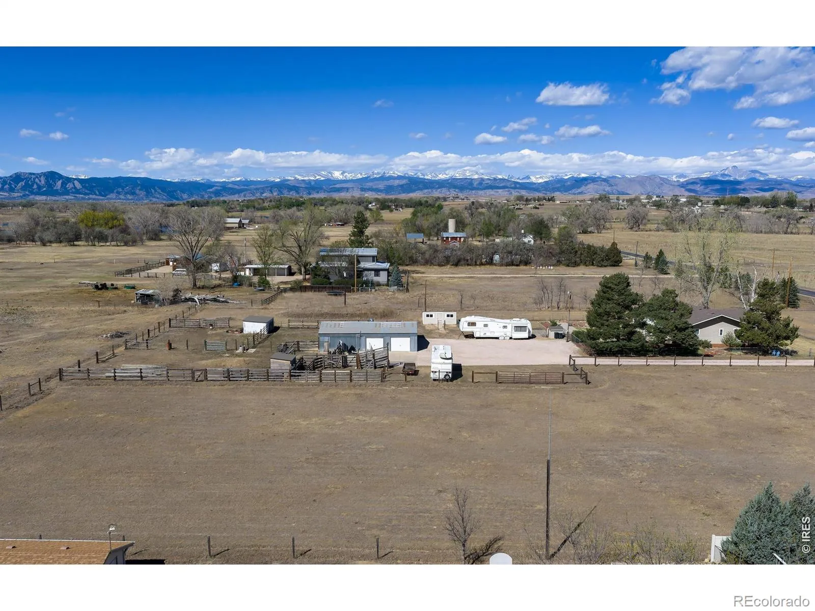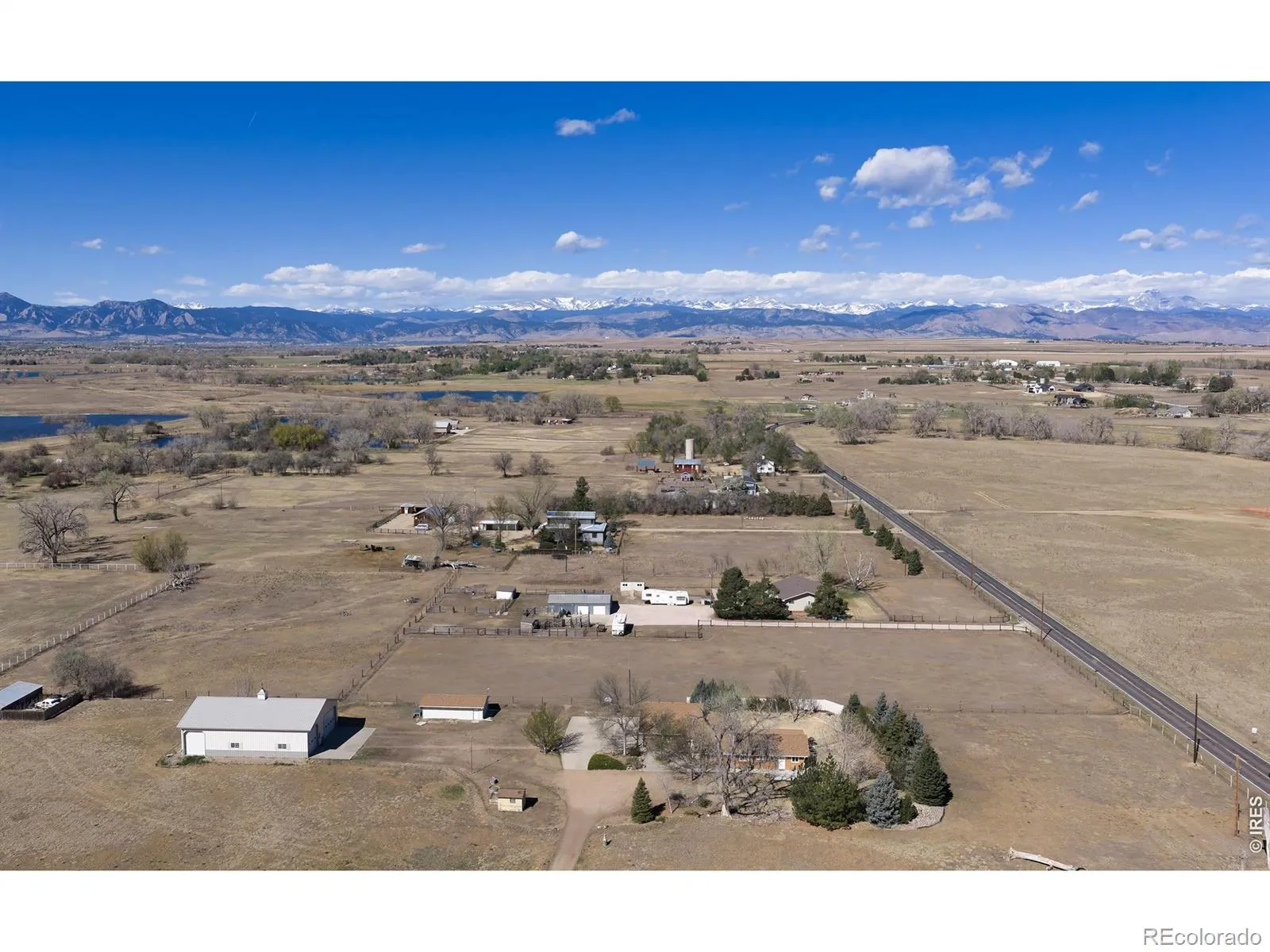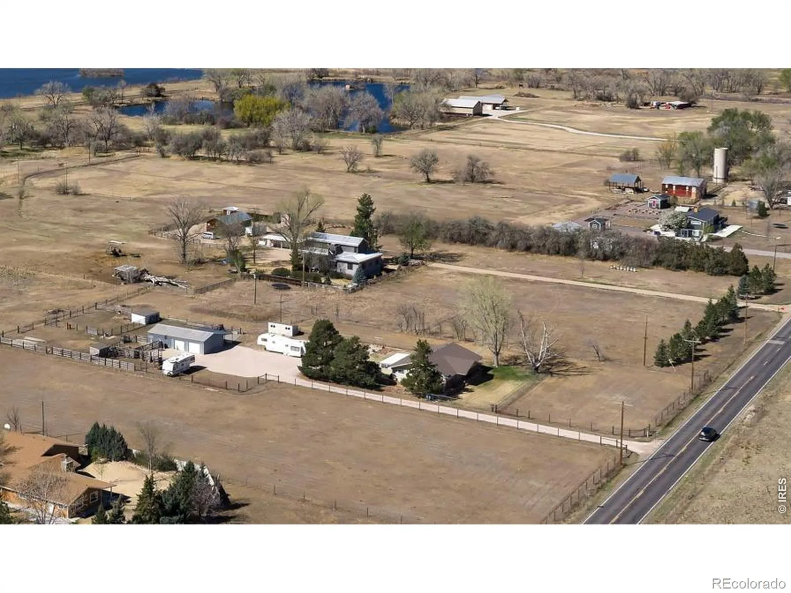 Experience the best of Colorado country living on this remarkable 4.76-acre ranchette, where sweeping foothill and snow-capped back-range views set the scene for peaceful afternoons and unforgettable sunsets enjoyed from the covered front porch or the inviting back patio. Designed for effortless main-floor living, the home features 4 bedrooms, 2 bathrooms, a spacious living room, and a beautifully remodeled kitchen showcasing custom hickory cabinetry, granite countertops, stainless steel appliances, and gleaming hickory hardwood floors. The expansive property is perfectly equipped for a small farm or ranch, offering a 45′ x 24′ barn with a 24′ x 24′ two-car garage area, RV or boat parking, a tack room or hay storage area, two loafing sheds, and a large chicken coop that could easily serve as additional storage. Other updates include a newer roof in 2018, and the septic system was completely replaced in 2000. There is an old permitted domestic well that is currently not in use. Surrounded by open farmland, ponds, and small lakes, the setting delivers true rural charm with all the space you need. Recently annexed into the Town of Erie, this property presents exciting possibilities for future use. With Agricultural zoning, no HOA, no covenants, and no metro district, the freedom here is rare-especially in Boulder County. Properties like this don’t come along often.