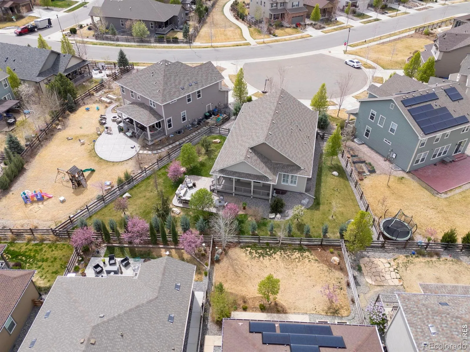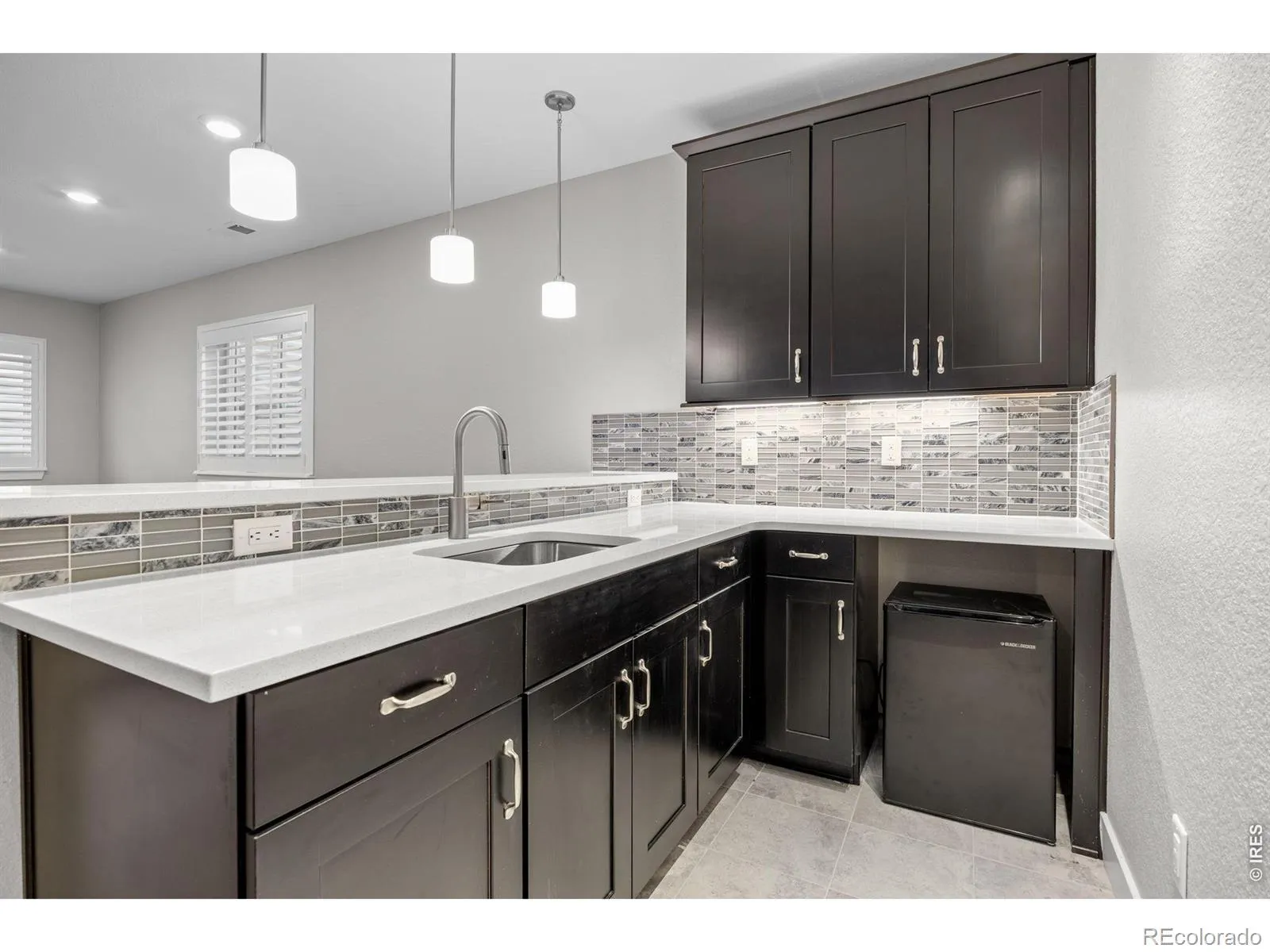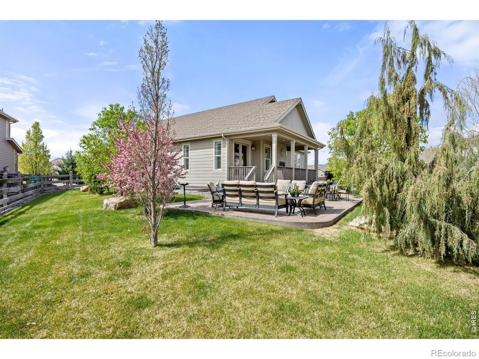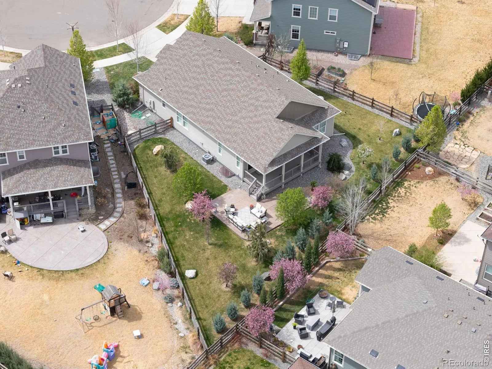 This home captures the essence of Colorado living, grounded in natural textures, timeless stonework, and a warm, inviting presence that feels both refined and effortless. From the moment you arrive, the stone-accented exterior sets the tone. Inside, a welcoming entry with wide-plank engineered hardwood floors creates a seamless flow throughout the main level. A front bedroom and full bath offer flexibility, while French doors open to a light-filled study, ideal for work or quiet retreat. Plantation shutters throughout add classic elegance. At the heart of the home, an expansive open-concept living space is designed for connection and everyday living. The kitchen features quartz slab countertops, an oversized island, abundant cabinetry with pull-outs, and high-end stainless-steel appliances-including a gas cooktop, double ovens, counter-depth refrigerator, and dishwasher. It serves as a true command center for gathering, meal prep, and entertaining. The adjoining dining and living areas balance comfort and refinement, anchored by a striking double-sided fireplace that adds warmth and ambiance. Privately set at the back, the primary suite offers a peaceful retreat with hardwood flooring, a spa-like five-piece bath, and a generous walk-in closet. A spacious mudroom and laundry area just off the oversized two-car garage add everyday convenience. The garden-level basement expands the living space with plush carpet, a large family room, and a beautifully designed wet bar, ideal for entertaining. An additional bedroom and bath provide comfort for guests, while unfinished space allows for storage, a gym, or future expansion. Set on a 9,900 sq ft lot, the backyard is lush and private with mature landscaping. A stamped concrete patio creates outdoor living areas for dining, grilling, and lounging, complemented by garden beds, lawn space, and soft mountain views. A covered patio and two-sided outdoor fireplace complete this seamless indoor-outdoor Colorado lifestyle.