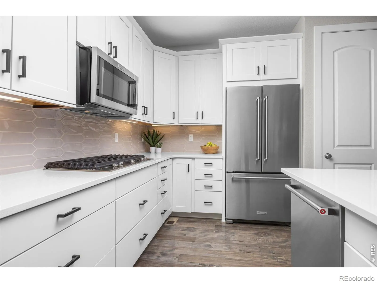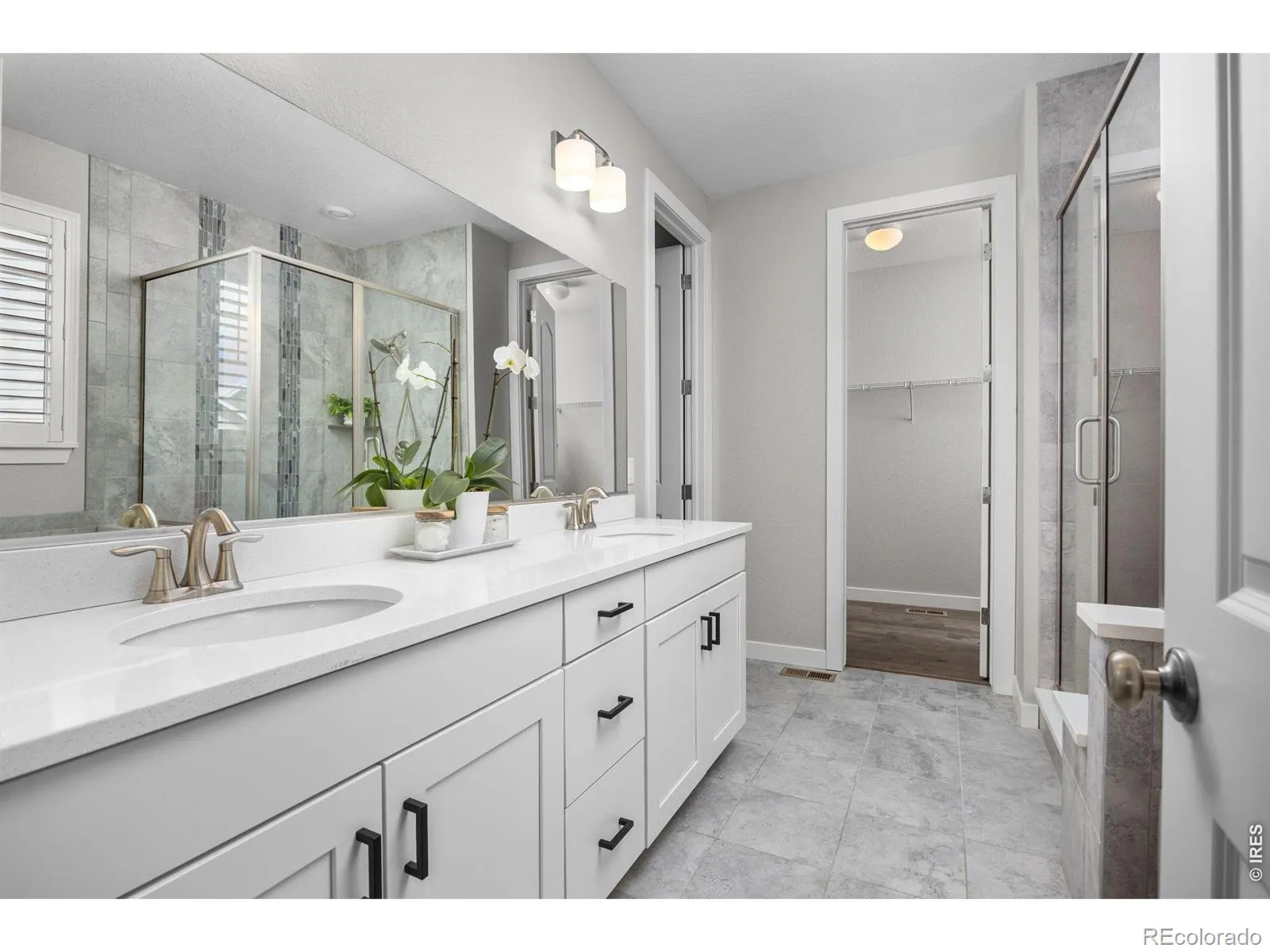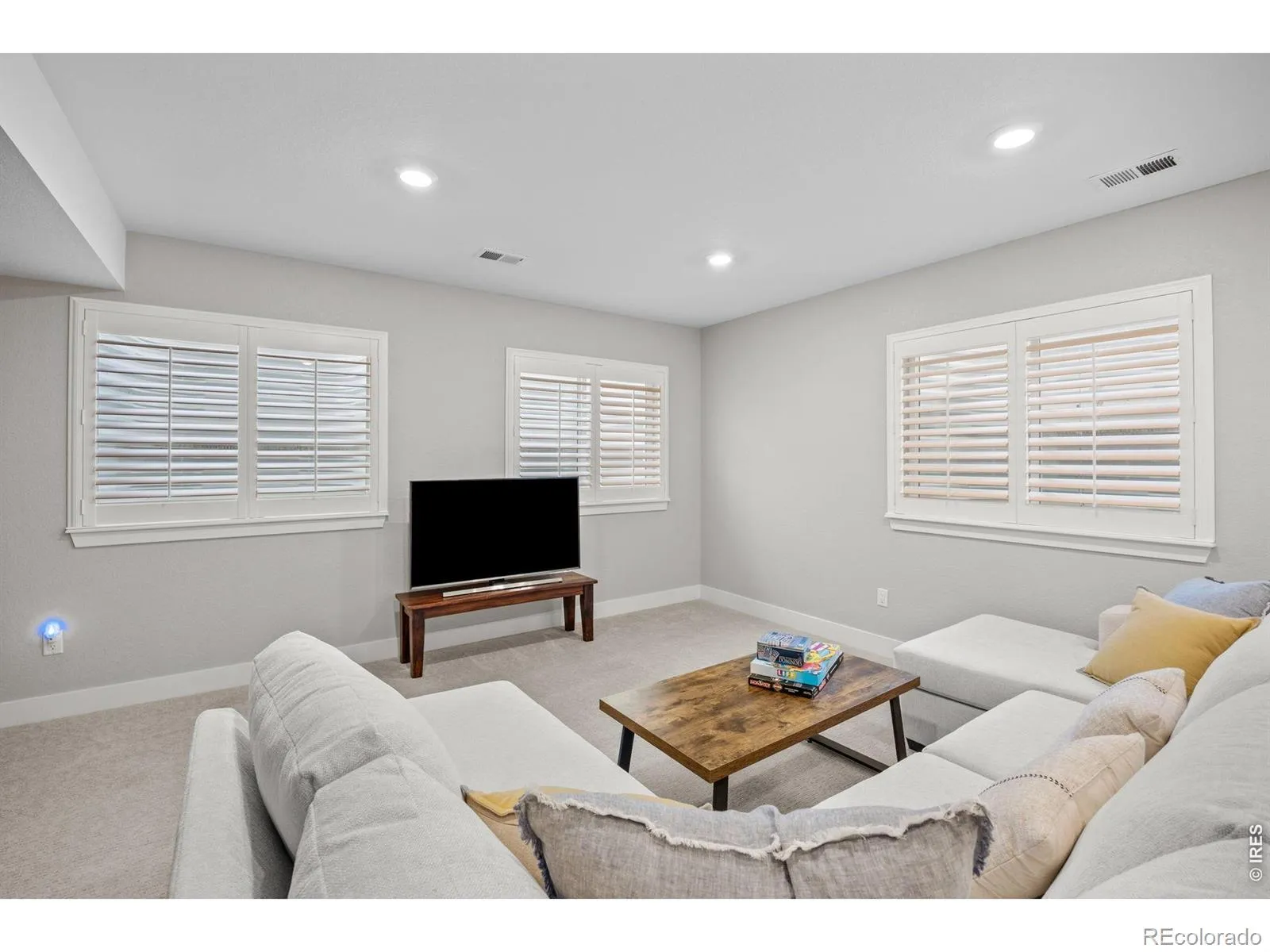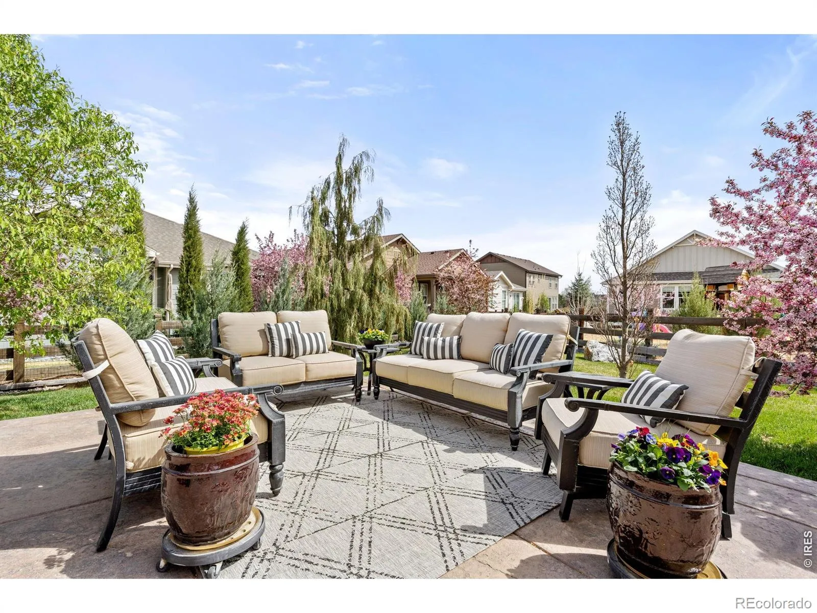 This home captures the essence of Colorado living, grounded in natural textures, timeless stonework, and a warm, inviting presence that feels both refined and effortless. From the moment you arrive, the stone-accented exterior sets the tone. Inside, a welcoming entry with wide-plank engineered hardwood floors creates a seamless flow throughout the main level. A front bedroom and full bath offer flexibility, while French doors open to a light-filled study, ideal for work or quiet retreat. Plantation shutters throughout add classic elegance. At the heart of the home, an expansive open-concept living space is designed for connection and everyday living. The kitchen features quartz slab countertops, an oversized island, abundant cabinetry with pull-outs, and high-end stainless-steel appliances-including a gas cooktop, double ovens, counter-depth refrigerator, and dishwasher. It serves as a true command center for gathering, meal prep, and entertaining. The adjoining dining and living areas balance comfort and refinement, anchored by a striking double-sided fireplace that adds warmth and ambiance. Privately set at the back, the primary suite offers a peaceful retreat with hardwood flooring, a spa-like five-piece bath, and a generous walk-in closet. A spacious mudroom and laundry area just off the oversized two-car garage add everyday convenience. The garden-level basement expands the living space with plush carpet, a large family room, and a beautifully designed wet bar, ideal for entertaining. An additional bedroom and bath provide comfort for guests, while unfinished space allows for storage, a gym, or future expansion. Set on a 9,900 sq ft lot, the backyard is lush and private with mature landscaping. A stamped concrete patio creates outdoor living areas for dining, grilling, and lounging, complemented by garden beds, lawn space, and soft mountain views. A covered patio and two-sided outdoor fireplace complete this seamless indoor-outdoor Colorado lifestyle.