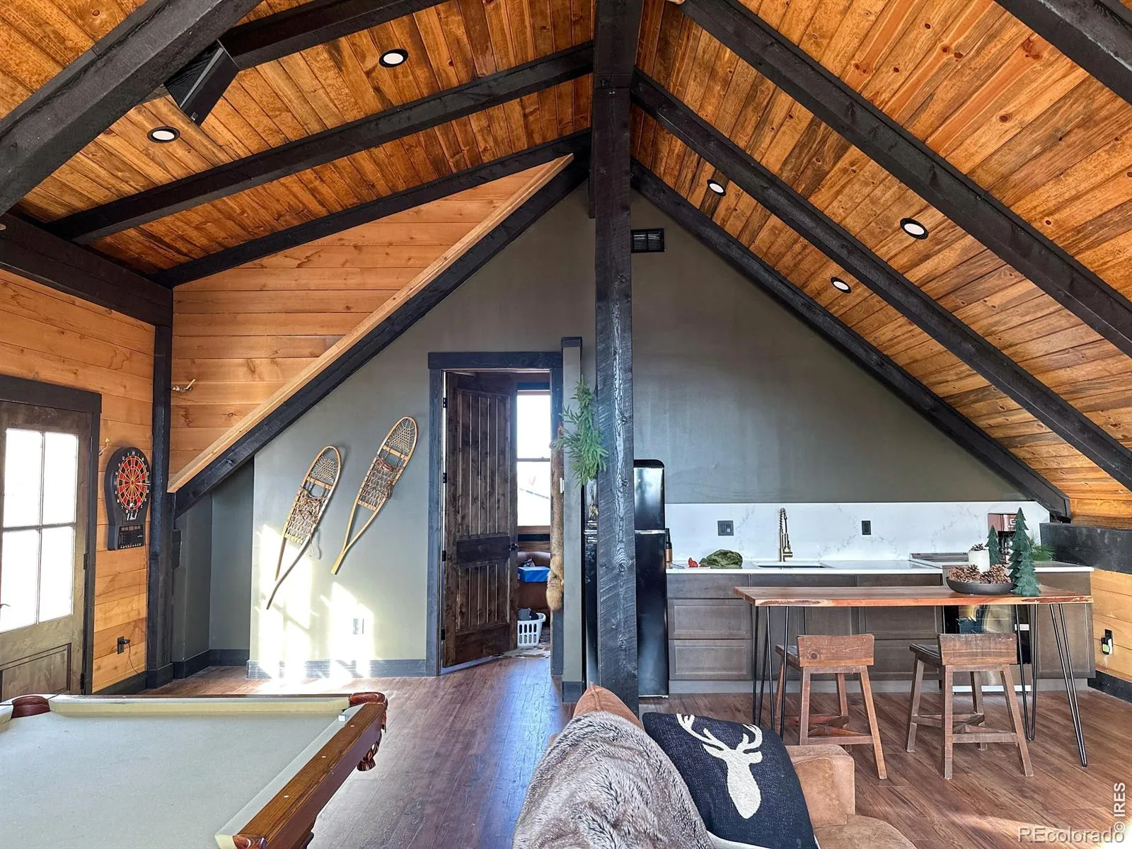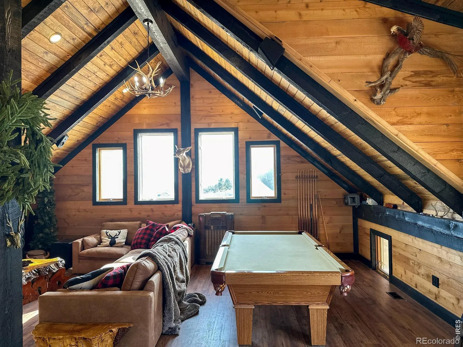 Welcome to 69 Juniper Ridge Rd-an expansive 38.8-acre mountain-meets-valley retreat in Bonner Peak Ranch in Laporte, just off Highway 287 north of Fort Collins. This property delivers privacy, adventure, and a slower pace of life. The updated Nordic-style ranch home offers 1,858 sq ft with 3 bedrooms, 2 bathrooms, a dedicated laundry room, and a bright, window-filled living space. The simple, no-basement layout is both functional and accessible. A large wraparound deck captures all-day sun and shade with sweeping valley views-ideal for relaxing or entertaining. The renovated timber frame barn (1,296 sq ft) functions as a versatile guest/recreation space with a kitchen, bath, bedroom, smart lighting, and a Dolby Atmos-wired rec room. Additional features include a private office, conditioned storage, and a large gym. The unfinished shop (1,452 sq ft) offers 220V power, space for 6-10 cars and a two-story climbing wall, and is ready for a car lift. A 2-car detached garage (448 sq ft) with subpanel for Level 2 EV charging. The land is built for exploration, featuring hiking and ATV trails, 4×4 terrain, mining-era remnants, crystal caves, geodes, and stunning 360 views from the top. Residents enjoy private access to hunting and fishing on the North Fork of the Poudre, plus forest hiking throughout Bonner Peak Ranch. Over $250K in upgrades enhance comfort and sustainability: a custom designer kitchen and baths, reclaimed wood floors, a 4-6 person barrel sauna with wireless control, 50+ new trees, orchard, vineyard, and garden. A 13.3 kW solar system with battery backup supports off-grid potential, complemented by a durable, hail-resistant steel roof. Located approximately one mile from the planned Glade Reservoir, this property offers potential future access to water recreation. A rare blend of privacy, functionality, and natural beauty-ideal for those seeking space, capability, and lifestyle.