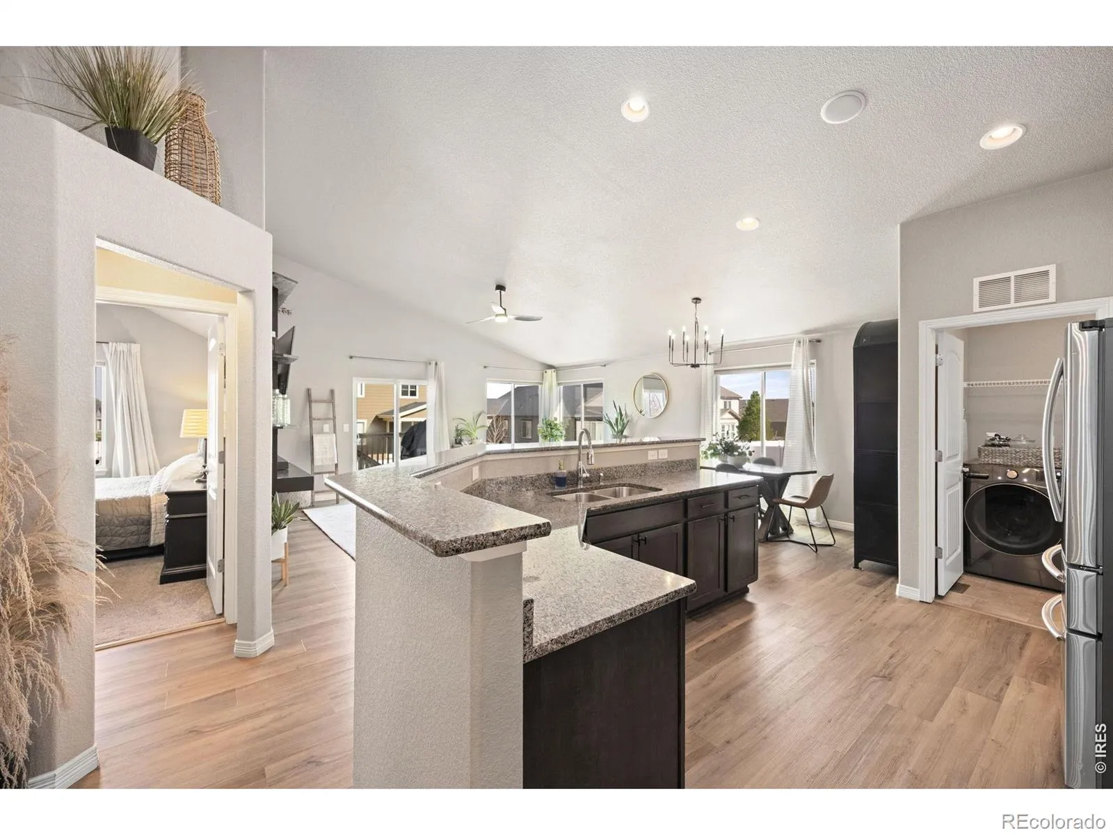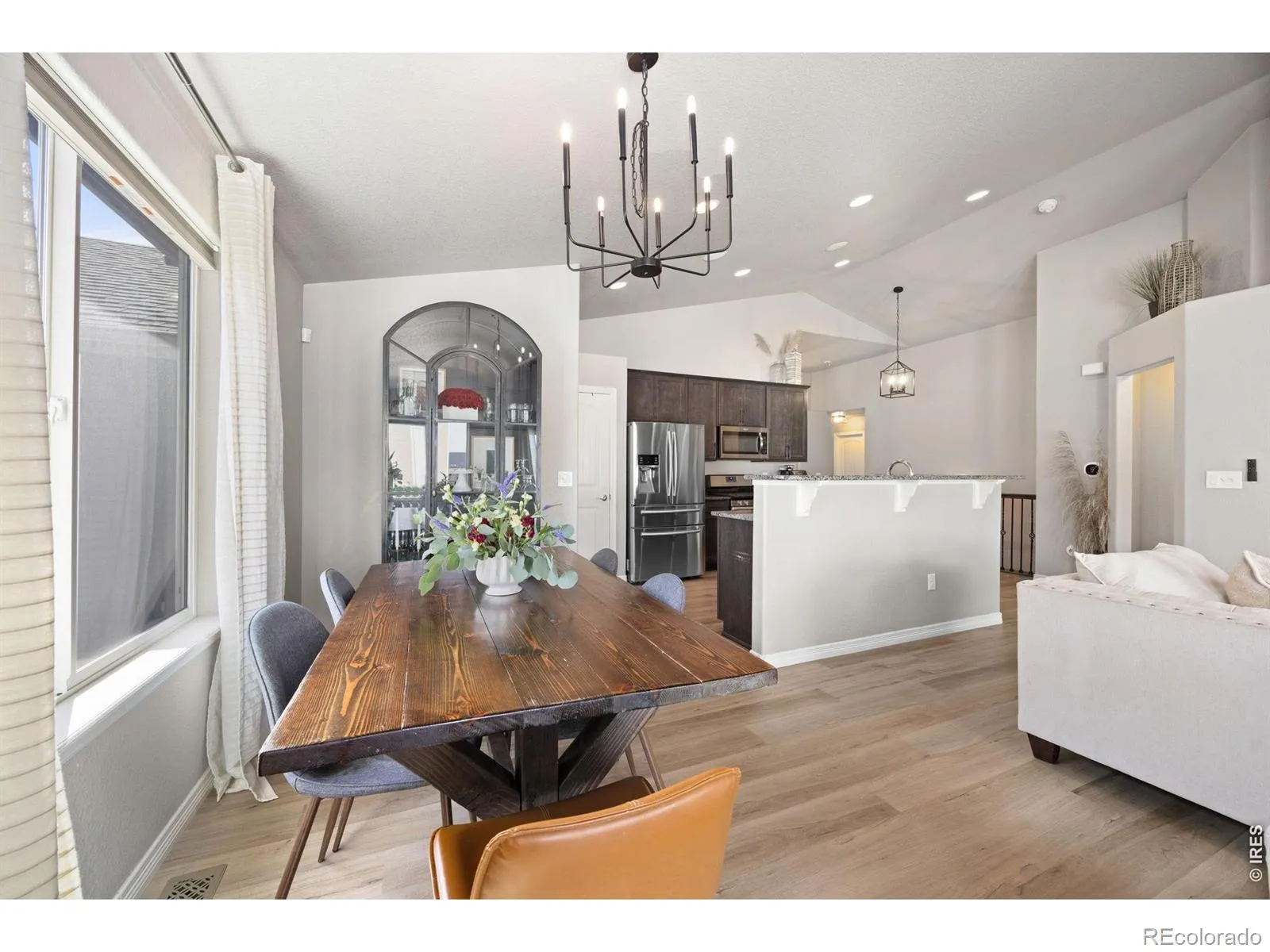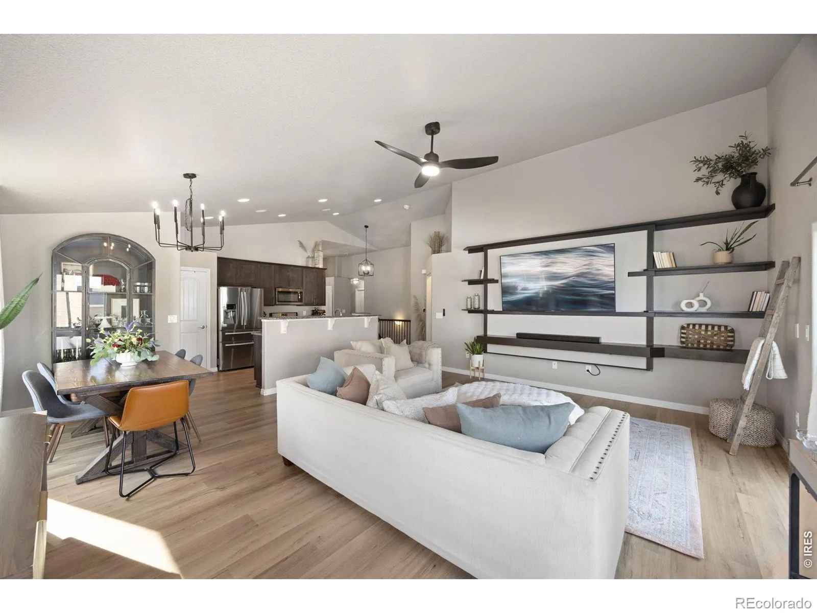 Welcome to your charming ranch home, nestled in Windsor, only minutes from renowned Harmony Club. This stunning residence epitomizes elegance and sophistication, boasting an array upscale finishes throughout. As you approach this picturesque property, you are greeted by a meticulously maintained exterior. Step inside, and you’ll immediately be captivated by the warm and inviting ambiance that permeates every corner of this residence. The main level features an open-concept layout, ideal for both relaxation and entertaining. The spacious living area is bathed in natural light, creating a bright and airy atmosphere that invites you to unwind after a long day. Adding to the living room appeal is the modern fixtures, built-in entertainment area, and brand new lvp floors. The adjoining gourmet kitchen is a chef’s dream, equipped with sleek appliances, well designed cabinetry, granite countertops, and a generous center island, perfect for preparing delicious meals while socializing with guests. The primary bedroom provides ample space, featuring a spa-like ensuite bathroom and a walk-in closet, providing the perfect escape from the hustle and bustle of everyday life. With a total of 5 generously sized bedrooms and three full bathrooms, this home offers plenty of space for family members or guests. Other highlights of this exceptional home include a convenient main-level laundry room, an attached, 610 sqft 3-car garage, and a full finished basement with daylight window wells. Located in a desirable neighborhood, this residence offers easy access to a plethora of amenities, including shopping, dining, parks, and recreational activities. Adding to the appeal is the Windsor School district, with numerous top rated schools to choose from. With its unbeatable combination of style, comfort, and convenience, enjoy the best of Northern CO living.