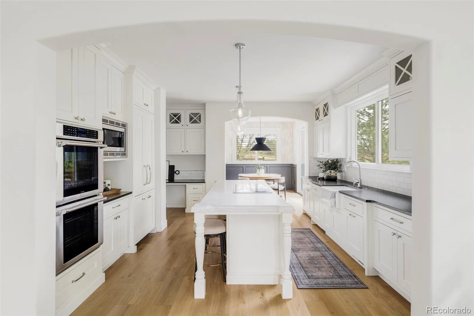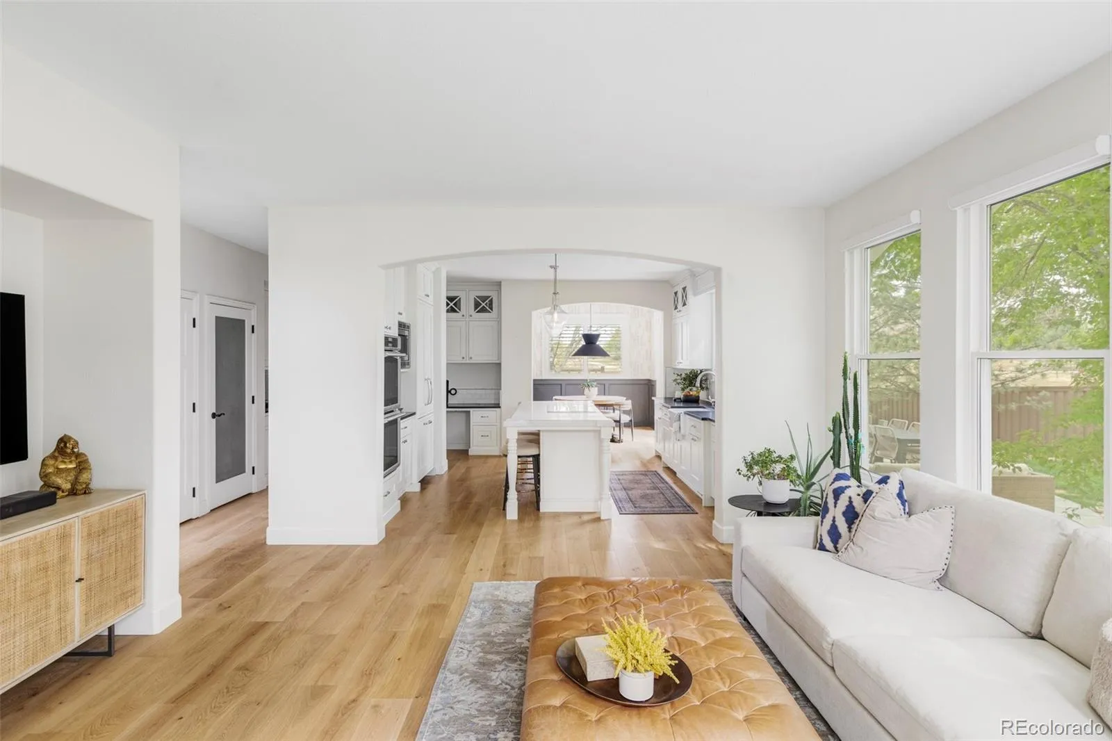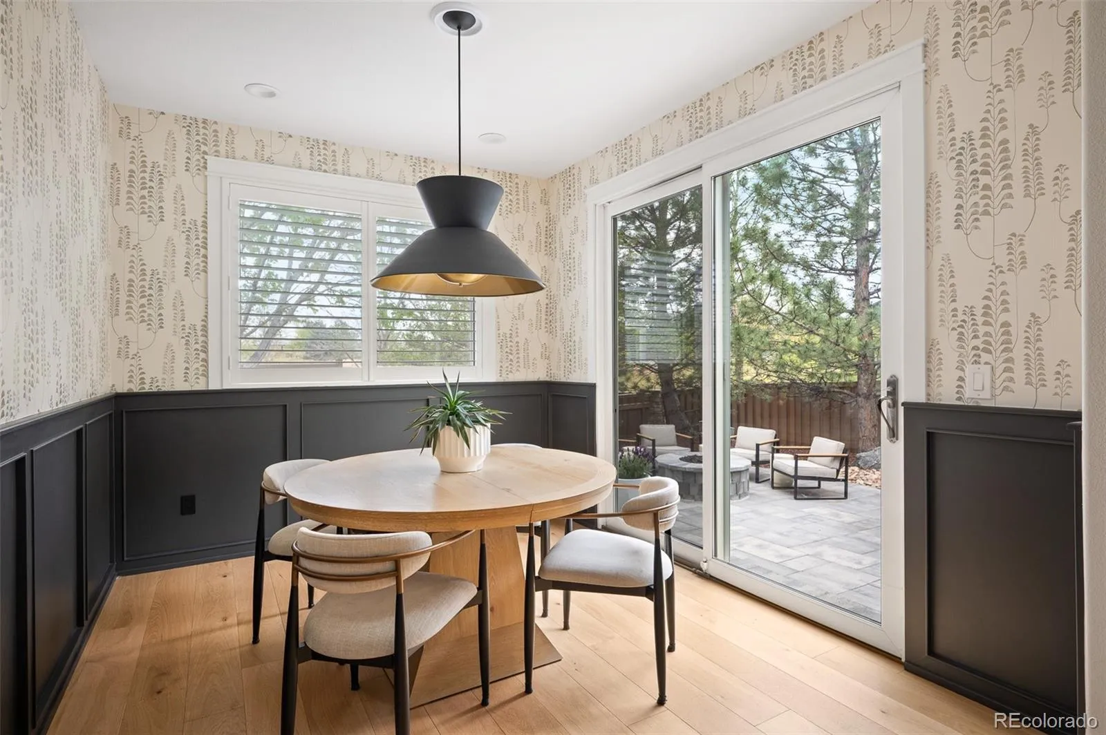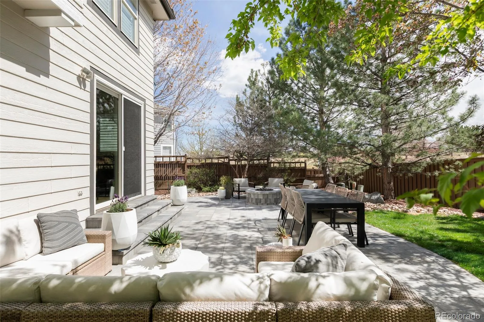 Luxury living in the desirable Highlands Ranch Golf Club! This home includes several recent and thoughtful updates. The backyard was completely transformed to include a large paver patio, custom gas fire pit, timed outdoor lighting and refreshed landscaping. Wide plank white oak engineered flooring was installed throughout the main floor. The office, family room, fireplace and dining nook were all remodeled and brought current. AC, furnace, and humidifier were all replaced three years ago, offering peace of mind. The home sits on a private 1/4 acre lot on a quiet cul-de-sac. Upon entering the home you will be impressed by 18 foot ceilings in the foyer, opening into dining & living room. Adjacent to foyer you’ll find a full bathroom and remodeled home office. Stylish & comfortable family room with gas fireplace & 6 large windows with roller shades that can be adjusted (or programmed) at the touch of a button! The kitchen is full of upgrades, featuring a paneled Thermador refrigerator & appliances including induction cooktop & double wall ovens, soft-close inset cabinets & drawers, under cabinet lighting, stone countertops & farmhouse sink! At the end of the kitchen you’ll find the beautiful breakfast nook with gorgeous wainscoting & sliding glass doors that open to the brand new paver patio, gas fire pit & huge backyard lined with mature trees! Upstairs, the tastefully decorated primary bedroom features 2 large walk-in-closets with Elfa closet systems & an updated 5-piece spa-like bathroom! Upstairs you will also find a full bathroom & 3 additional bedrooms! The cozy basement features a kitchenette/wet bar & rec room with built in speakers, recessed TV mount & second gas fireplace with concrete fireplace surround! Basement also has a gym, 3/4 bathroom & 5th bedroom and spacious storage room. The 3-car garage is fully finished with epoxy flooring and includes overhead storage.