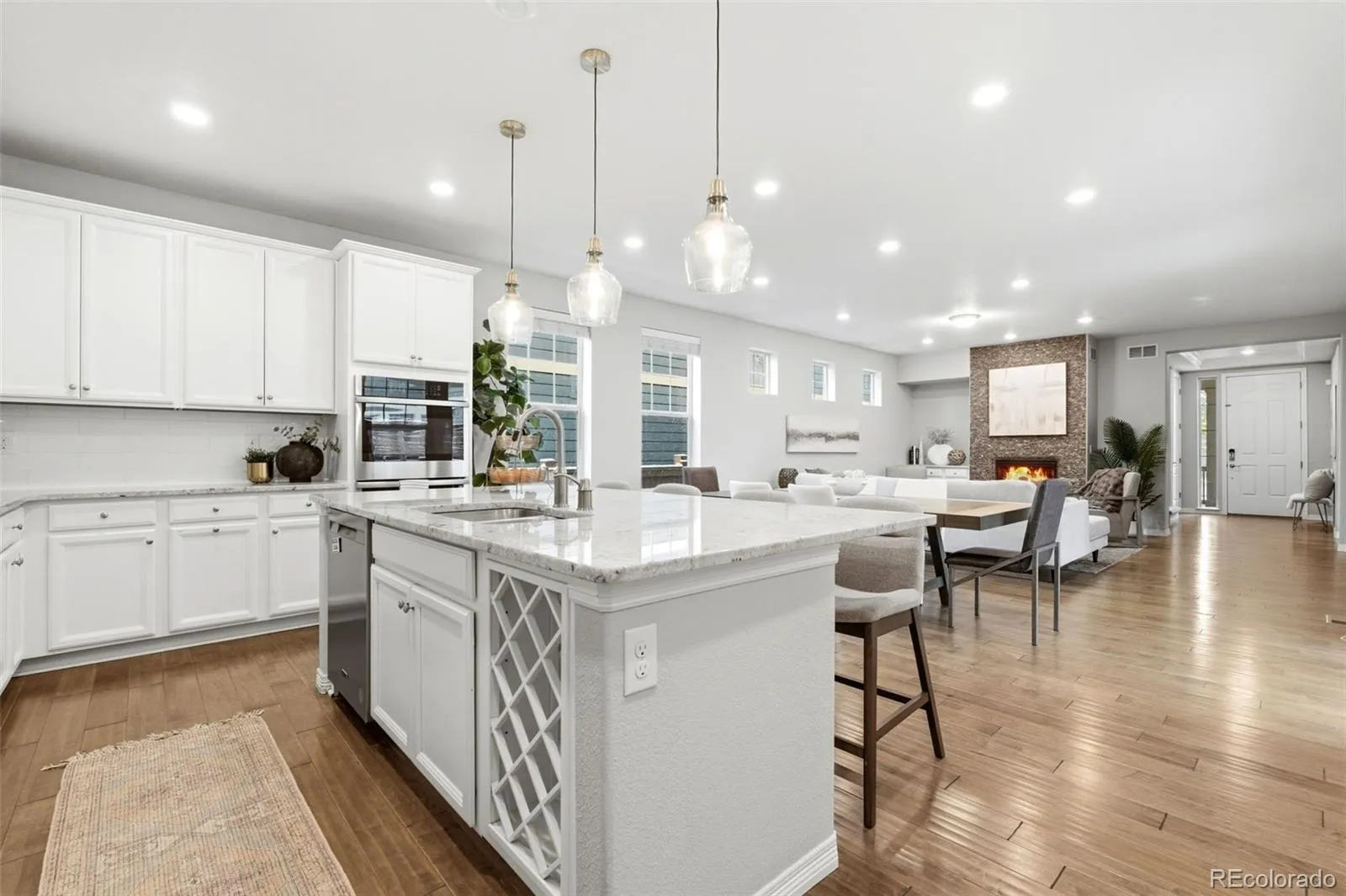 Professionally landscaped front and back. The backyard is equipped with and outdoor “kitchen” with granite counters and a built-in grill. The back porch has room enough for a large table and chairs, and the long gas firepit on the side yard is perfect to host friends at the Friday Firepit. The three-car garage has room for vehicles, storage, or projects that may/may not get finished. All of this runs on paid for solar, in a neighborhood people move to on purpose—close to parks, trails, and everything Central Park does well. Homes with this level of flexibility and outdoor living don’t come up often here—and when they do, they tend to get attention.