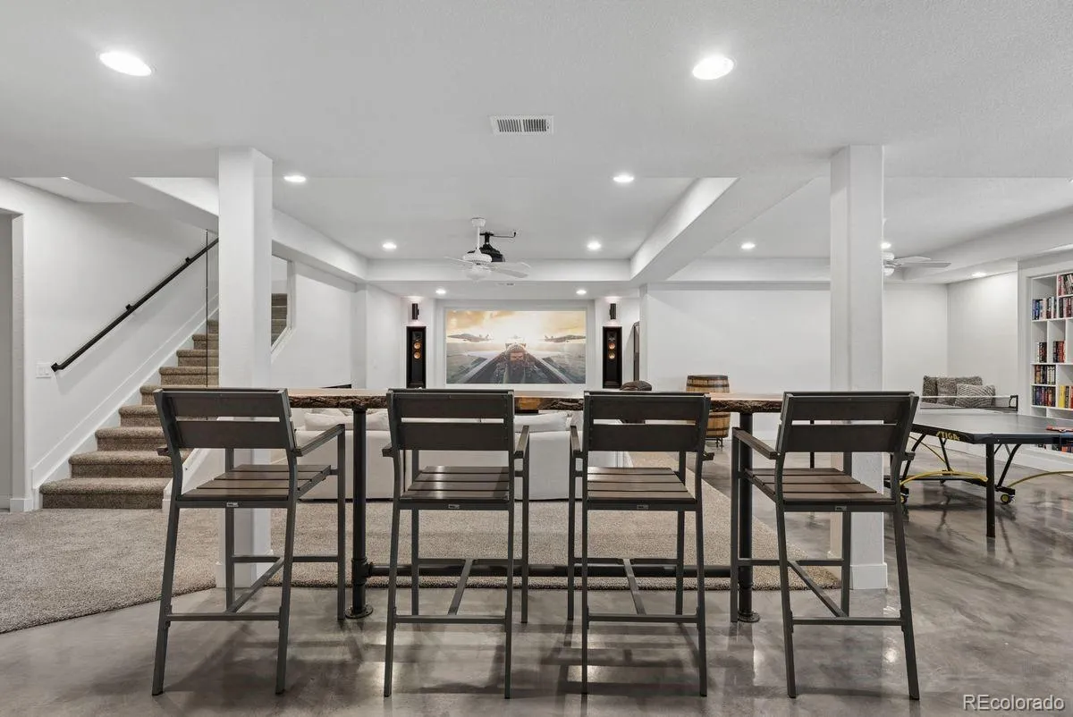 introducing a distinguished residence in the highly sought-after Solterra, situated on a corner lot, where luxury living meets breathtaking natural beauty & practical living. Perfectly positioned to capture views of Red Rocks & surrounded by miles of scenic trails, this home offers an exceptional Colorado lifestyle defined by elegance & outdoor connection. This 2-story great room has soaring ceilings, expansive space, and abundant natural light, creating an ambiance of sophistication. The chef-inspired kitchen is a true centerpiece, featuring newly installed white quartz countertops, SS appliances, a built-in ice maker, expansive prep space, & abundant cabinetry complemented by a generous pantry. Designed with both form and function in mind, it flows seamlessly into the dining space formal dining room & living areas—perfect for hosting everything from intimate dinners to large gatherings. The fireplace brings a warm enchanting feeling to the home. There is a private main-level guest suite ideal for visitors or multigenerational living or an office. Upstairs, the primary suite serves as a serene retreat, 2 walk-in closets, & amazing views, along with a beautifully appointed ensuite bath. 2 additional bedrooms are connected by a Jack-&-Jill bath, while a versatile loft provides an elegant flex space for a home office or study. The finished basement is an entertainer’s dream, with distinct areas for recreation and relaxation. Enjoy a dedicated movie room for a true cinematic experience or the perfect setting for Sunday football games. A 5th bedroom and full bath is secluded and great for guest escape. The backyard has been transformed into a private oasis, featuring multiple seating areas, a custom fireplace, & a water feature. Explore the incredible nearby trails for hiking & biking, all while taking in the iconic red rock landscapes. Prime location near! Providing the perfect balance of luxury, convenience, and an elevated Colorado lifestyle.