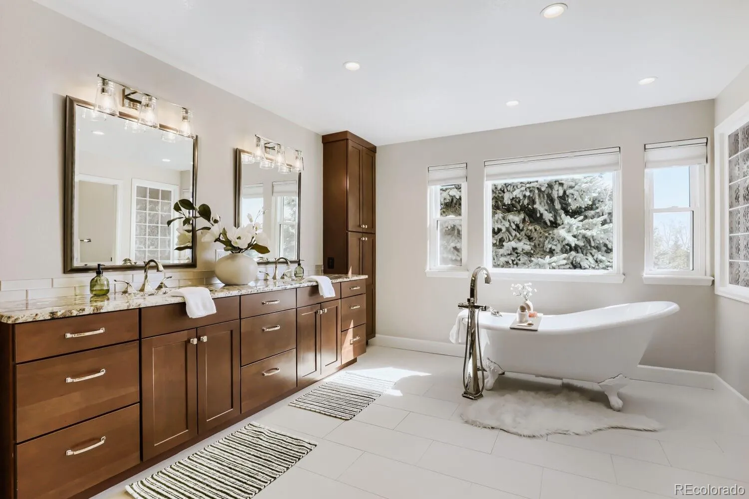 Welcome to this extraordinary home and yard in a prime Arvada location. This stunning and updated, 4 bedroom, 5 bathroom, 2 story home on a half-acre lot offers a 4-car oversized, insulated, drywalled, and painted garage with trench drains, and an abundance of cabinets. The garage also features a finished, heated, and air-conditioned workshop/dog room for your beloved pets. Now step inside the house where classy updates include 2 new sleek electric fireplaces with designer stone & mantel that create a classic look. Timeless hardwood floors on the main floor. Gourmet kitchen with an island, granite countertops, maple cabinets, stainless steel appliances, and recessed lighting. Main floor 4th bedroom currently used as a study. Baseboards replaced to 6″ boards in 2025. The primary bedroom with a sitting room and stunning mountain views is a spa-like sanctuary with a showstopper 5-piece en-suite bathroom! Remodeled in 2019, featuring a claw foot soaking tub, oversized walk-in shower, heated tile floors, dual walk-in closets. The secondary upstairs bedrooms each have their own full en-suite bathrooms.