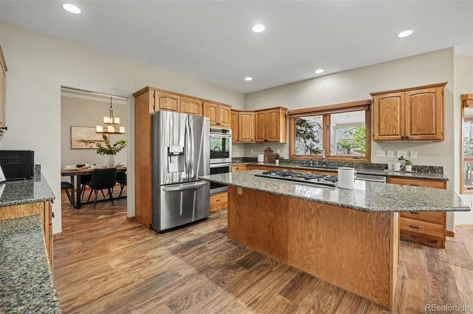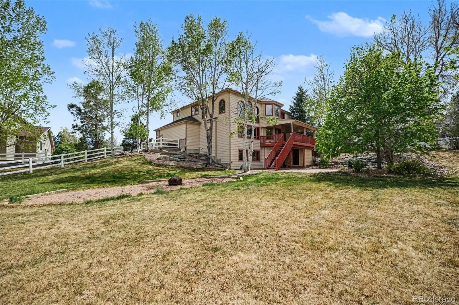 Welcome to a true West Arvada retreat in highly desirable Summertree Lane community. Set on 1.21 acres & backing directly to open space, this home offers a rare combination of space, privacy, & views. From your backyard, enjoy access to scenic trails connecting to Leyden Lake, Pattridge Open Space, Tucker Lake, & more. Paired with top-rated schools including West Woods Elementary & Ralston Valley High, the location is exceptional. Inside, the home is bright & inviting with a layout ideal for both everyday living and entertaining. Custom tile flooring runs throughout the main level, adding a high-end, durable finish. The gourmet kitchen showcases stainless steel appliances, double ovens, granite countertops, a large center island, & plenty of space to gather. It opens seamlessly to the spacious family room with soaring ceilings, custom built-ins, a cozy fireplace, & an abundance of windows that frame the views & bring in natural light. The primary suite is a true retreat—bright, spacious, & filled with incredible views. It features a large layout, a five-piece ensuite bath, & a generous walk-in closet. Upstairs you’ll also find three well-sized bedrooms, including one with its own 3/4 ensuite bath. The main-level office adds flexibility & can serve as a sixth bedroom if needed with the attached 3/4 bath. The finished walkout basement expands the living space with a bedroom, full bath, wet bar, potential workout or hobby area, & a comfortable living room. With direct backyard access, it’s perfect for guests, entertaining, or extended living. Several key updates were completed in 2023, including new wood-look tile flooring, remodeled secondary bathrooms, a new furnace and A/C, & basement finishes. The backyard is a standout with mature trees offering privacy, shade, and seasonal color, plus a covered deck ideal for relaxing and taking in the peaceful surroundings. All of this just minutes from West Arvada amenities, Hwy 93, Boulder, Golden, and Old Town Arvada.