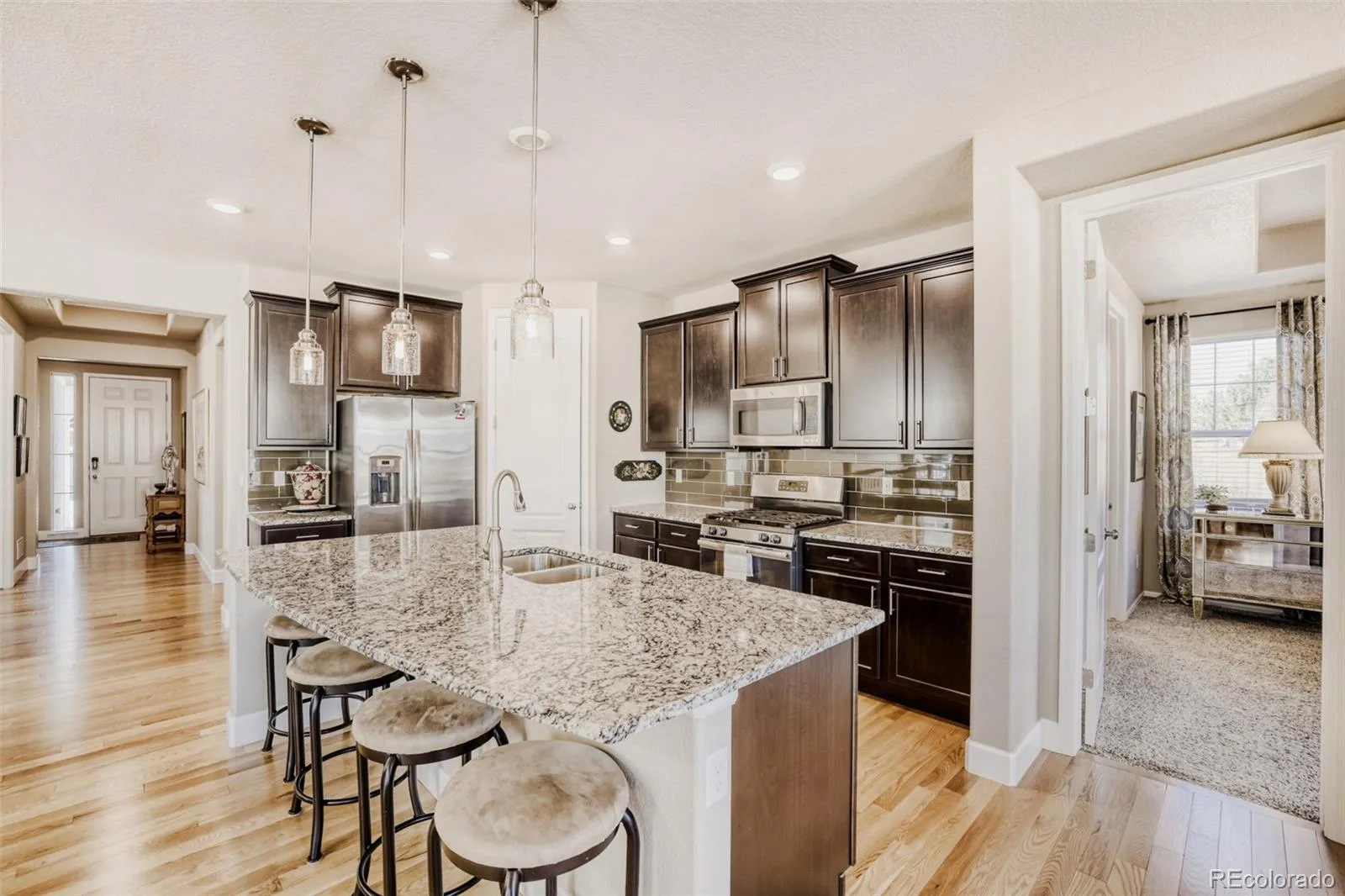 Remarkable ranch in the highly sought-after Table Rock Ridge! This luxurious home features an open floor plan with 9’ ceilings, gourmet kitchen with 42” cabinets, gas fireplace, hardwood floors, granite slab counters, stainless-steel appliances and custom butler’s pantry! An abundance of natural light fills the main level that also includes the primary suite with luxurious 5-piece master bath and expansive walk-in closet, an additional large bedroom, main floor study/office, convenient mudroom off the oversized garage, & spacious laundry area! Downstairs is a fully furnished basement with a 3rd bedroom area, kitchenette/wet bar, an additional bathroom and ample storage! Situated in close proximity to downtown Golden with easy access to both Boulder and Denver, this property has the ideal location to experience Colorado living at its best!