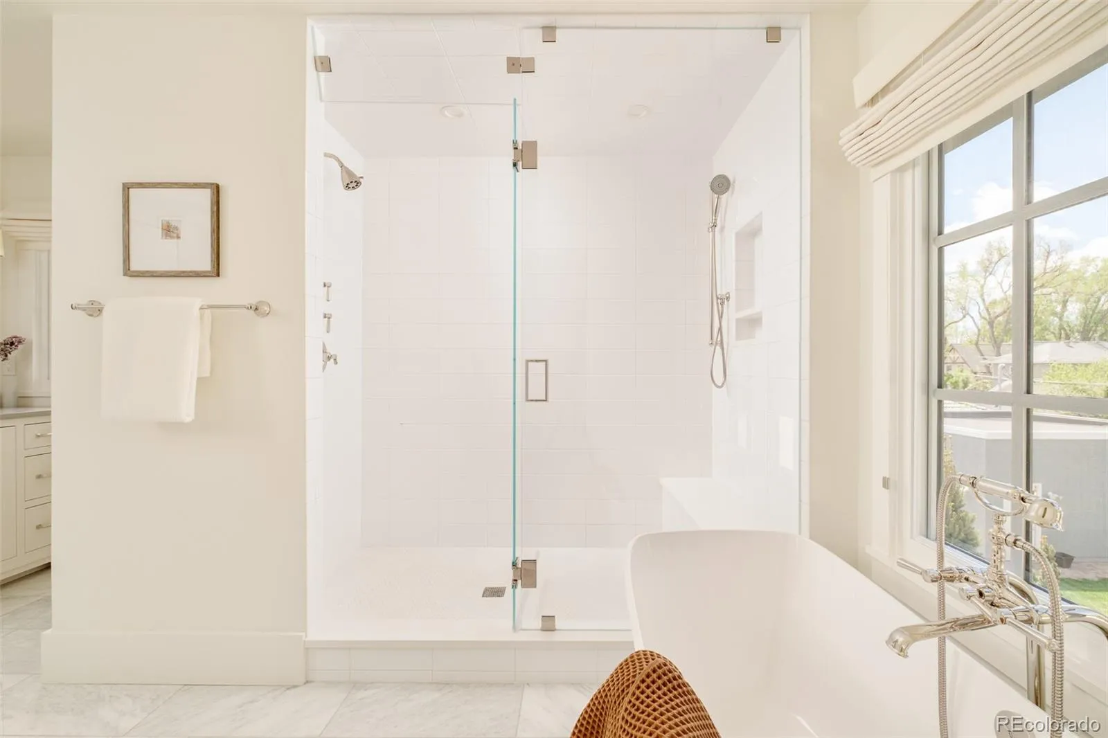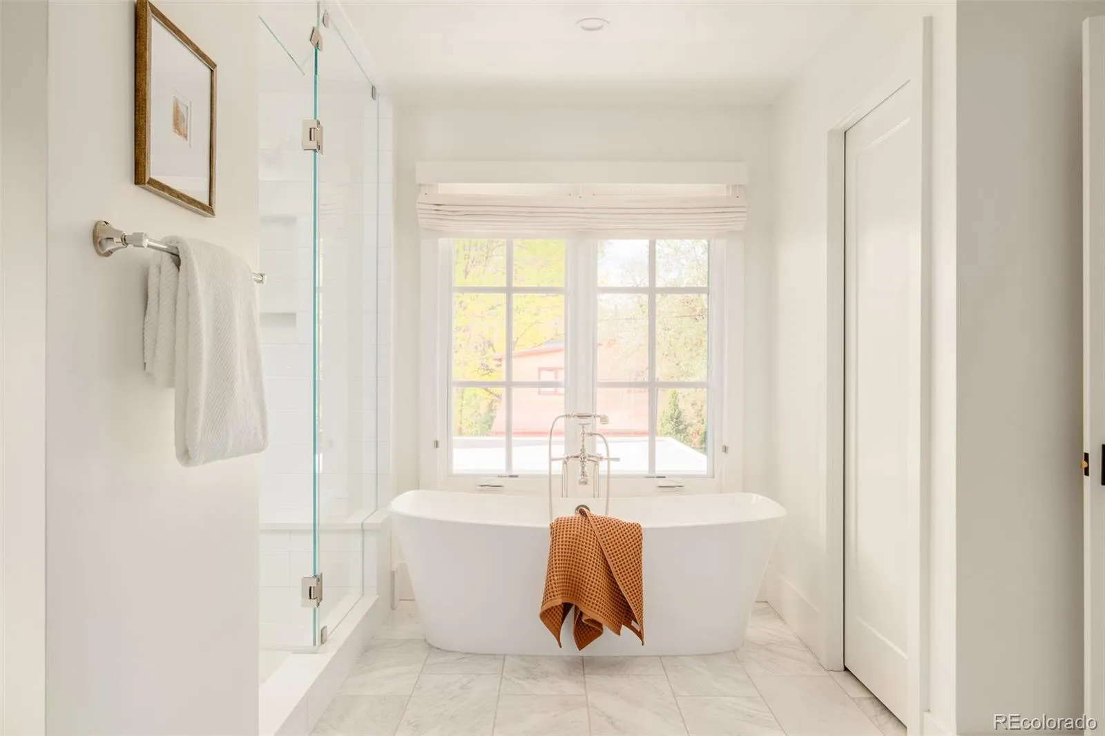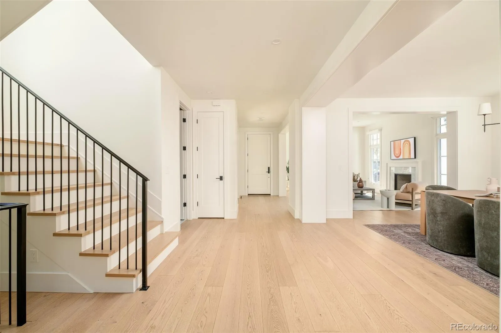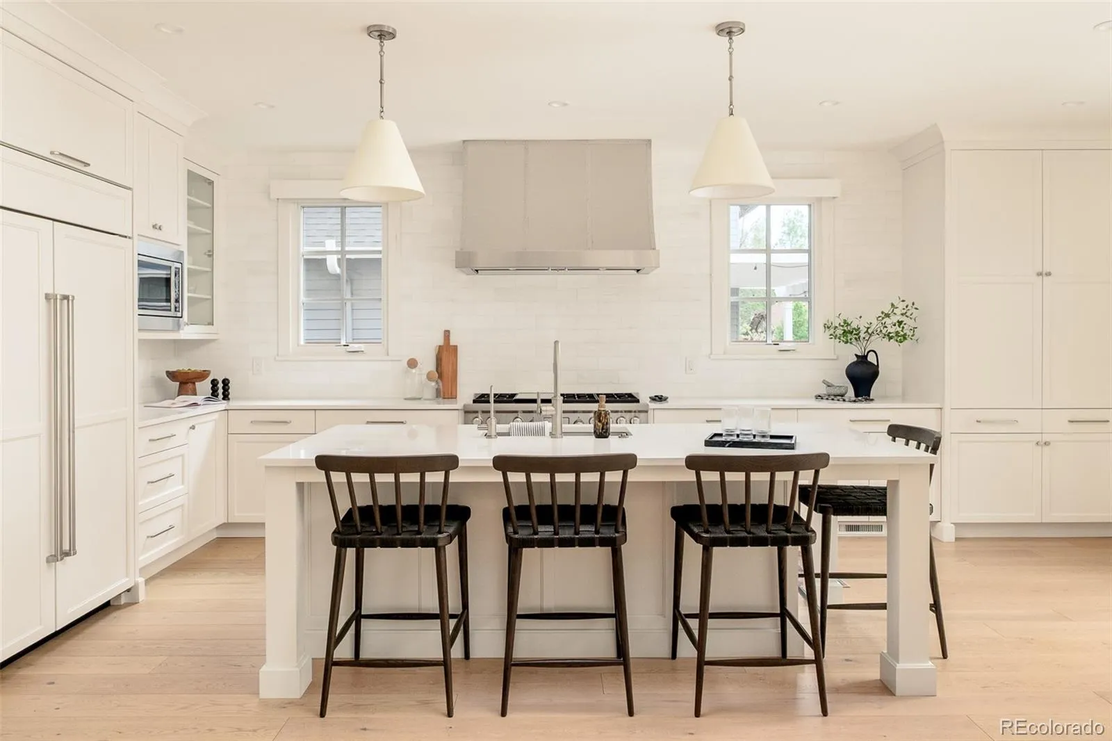 Set on the coveted stretch of South Milwaukee Street, this Observatory Park home pairs classic design with a complete modern transformation. Completely remodeled in 2019 by Larsen, every detail was curated to create a cohesive, elevated living experience. From the moment you enter, the architectural intent is unmistakable. A striking, custom-designed staircase anchors the space, while long, uninterrupted sightlines draw your eye straight through to the backyard, creating an immediate sense of openness and flow. Wide-plank European white oak flooring, paired with smooth, skim-coated walls for a clean, gallery-like finish. The main level is designed for both entertaining and daily living, featuring two inviting living rooms with marble surround fireplaces, a formal dining room, and a private office with bespoke built-ins and refined paneling. A powder room with a shower adds convenience complete with hand selected Ann Sacks tile. The custom kitchen is a showpiece with a professional-grade appliance suite including Wolf, Sub-Zero, and Bosch, custom cabinetry and Quartz countertops. Upstairs offers three bedrooms, including a spacious primary suite and bathroom featuring radiant heated marble floors, a Victoria + Albert volcanic limestone soaking tub, custom vanities, and a custom built-out closet system. Set on an oversized 7,500-square-foot lot, the outdoor space is private and serene with mature trees and a professionally installed sport court by Sports Court of the Rockies. Wide setbacks enhance light and privacy. Additional features include new Sierra Pacific windows, custom Shade Store window treatments, Carrier Infinity HVAC and plumbing systems (2019), Visual Comfort lighting, Restoration Hardware lighting and mirrors, professionally designed landscaping, including work by Lifescape Landscaping and a whole-home humidifier. Meticulously maintained and ideally located, this home offers a rare opportunity in Observatory Park.