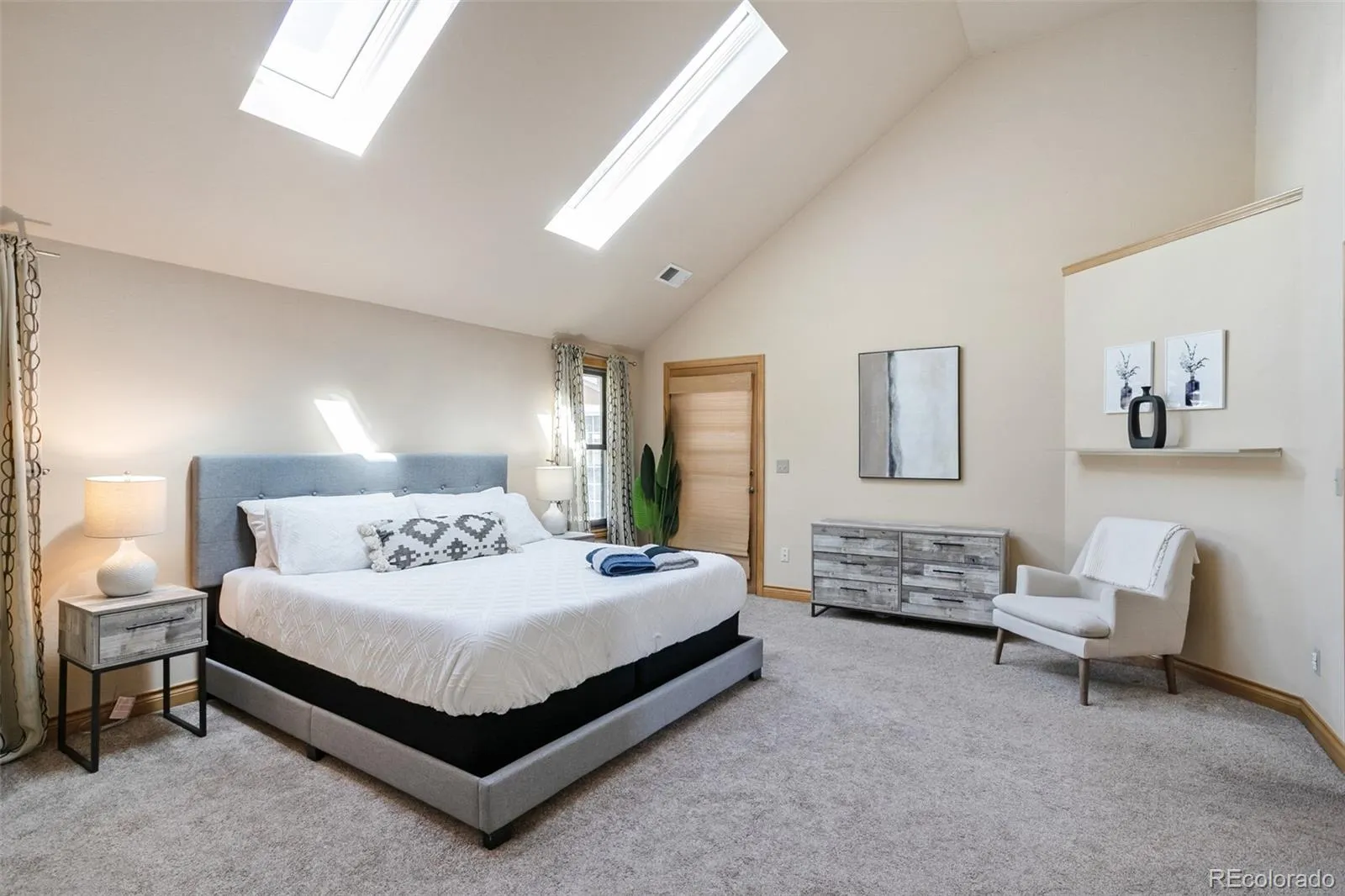 Inside, the home is warm, inviting, and thoughtfully updated. The kitchen features refreshed finishes, complemented by updated flooring, carpet, and windows throughout. The main-floor primary suite is a true highlight, with vaulted ceilings and skylights that bring in natural light by day and offer a rare “sleep under the stars” experience at night.