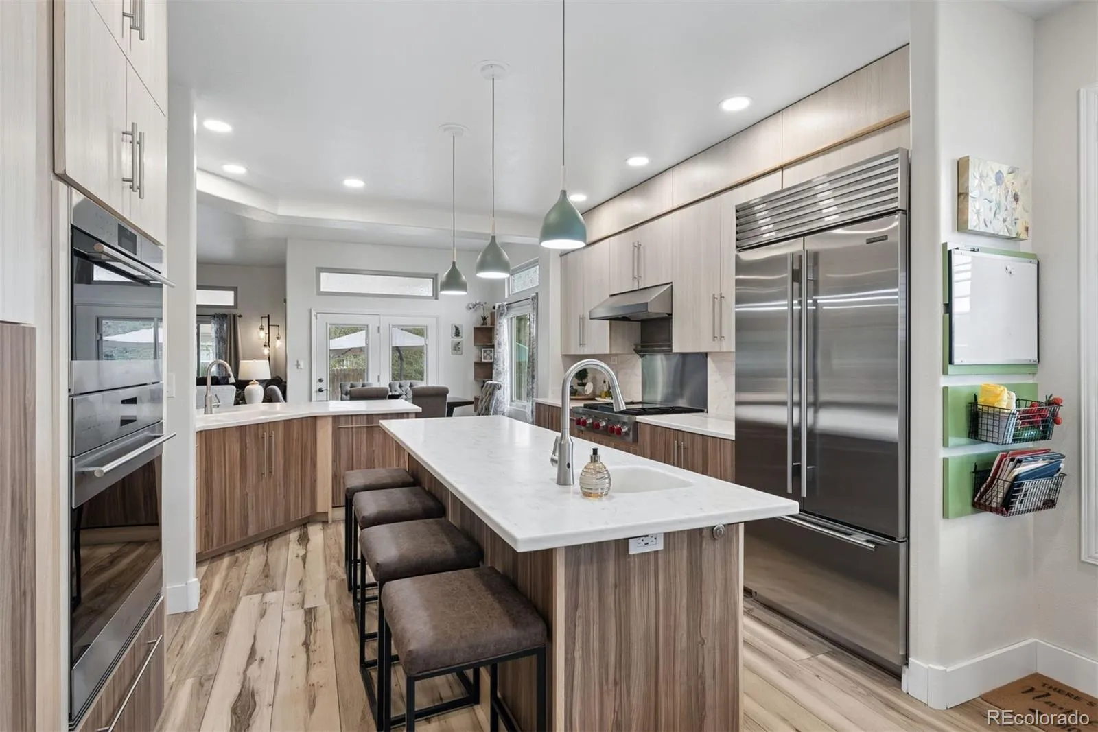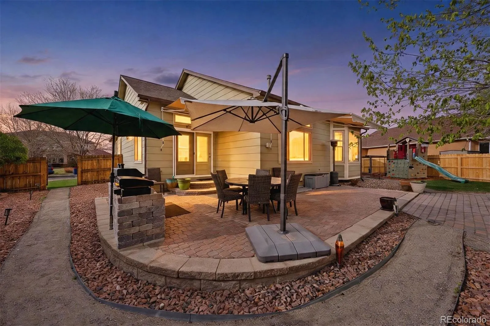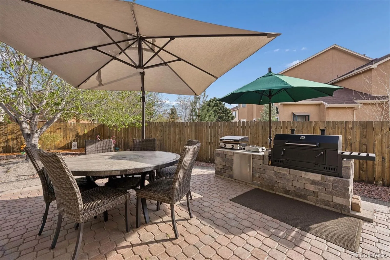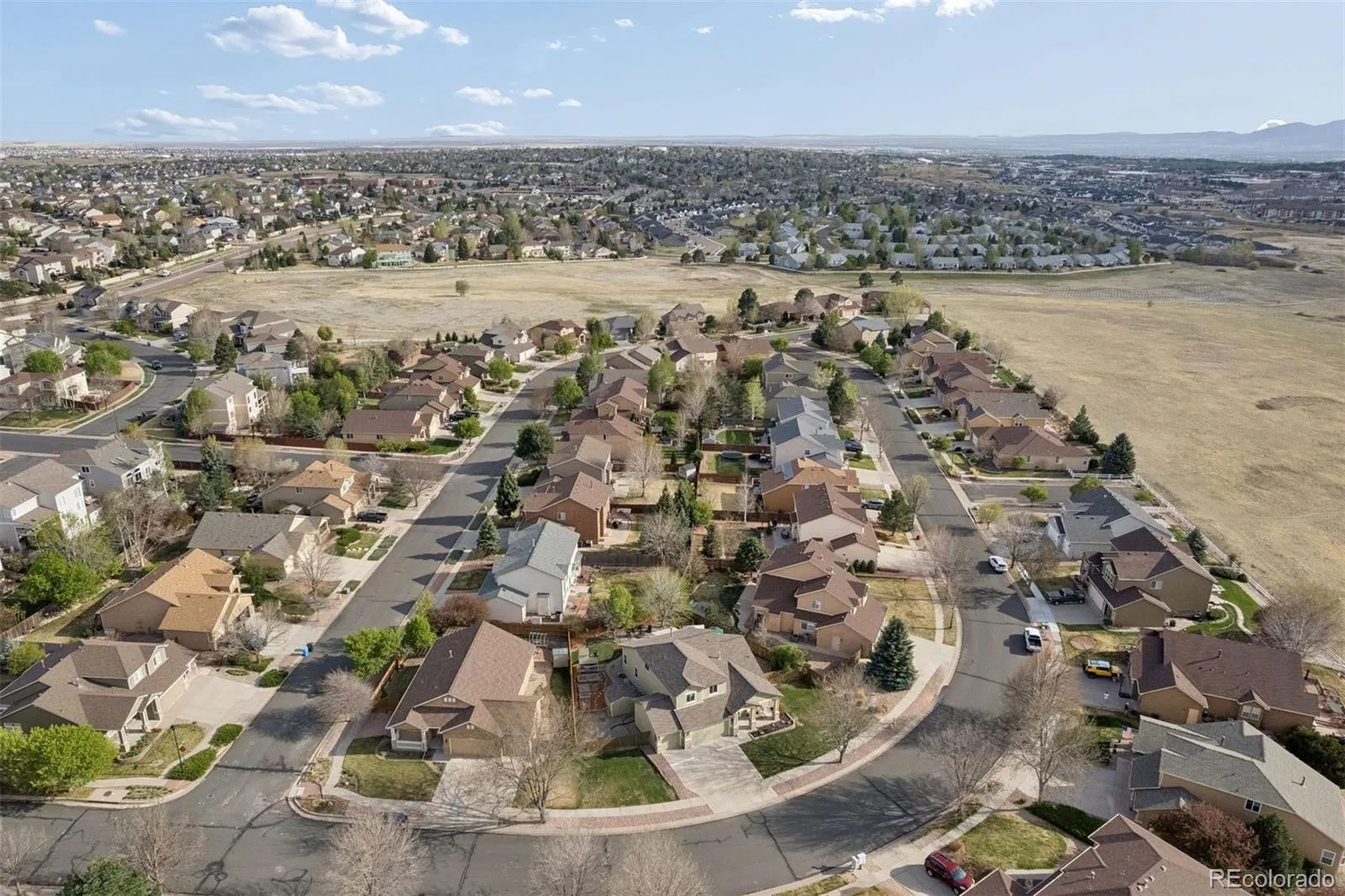 Stunning curb appeal on the best lot in the entire neighborhood! Timeless elegance describes this impeccably maintained residence, where thoughtful design and elevated finishes come together in effortless harmony. Perfectly balanced for refined entertaining and comfortable living, the home offers 10-foot ceilings, newer furnace and central air, a spacious 3-car garage, impact resistant roof, and a completely updated kitchen and primary bedroom suite that is as functional as it is beautiful. The kitchen serves as the heart of the home, appointed with high-end kitchen appliances featuring a Wolf gas cooktop, Wolf double wall ovens, range hood, and Sub-Zero refrigerator! The kitchen also includes custom-made Wilsonart engineered countertops, a designer tile backsplash, recessed and pendant lighting, an expansive center island with an additional sink, and floor-to-ceiling custom cabinets and drawers. The eat-in kitchen also boasts a custom coffee bar! The kitchen opens seamlessly into the dining area and inviting living room, where a corner gas fireplace creates a warm, understated focal point. The main-level primary suite offers a serene retreat, with an oversized bay window overlooking the private 1/4 acre backyard. The en-suite bath provides a spa-inspired experience, including 2 separate closets. Upstairs, a versatile loft adds flexible living space, along with two generous bedrooms adjacent to a full bath. The unfinished lower level presents exceptional potential for a home theater, a bathroom (rough-in plumbing in place), gym, fourth bedroom, or custom entertaining space. The fully fenced backyard offers privacy and room to relax, with front and rear sprinkler systems for easy maintenance, outdoor speakers, an expansive paver patio with an outdoor kitchen, children’s playset, and like-new storage shed. Set on a quiet street in Springs Ranch, the home is ideally located near the Powers Corridor, with convenient access to shopping, dining, and everyday amenities.