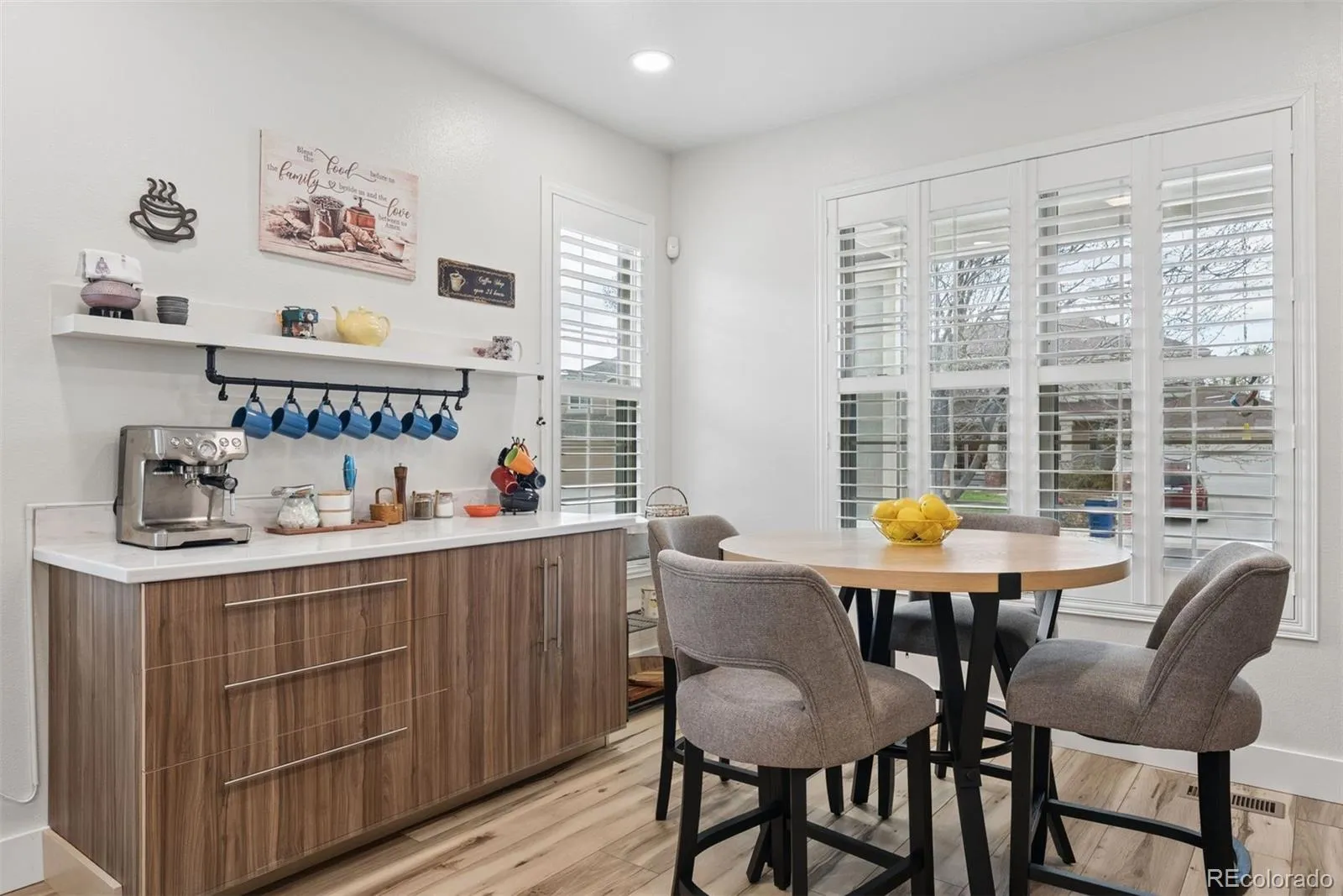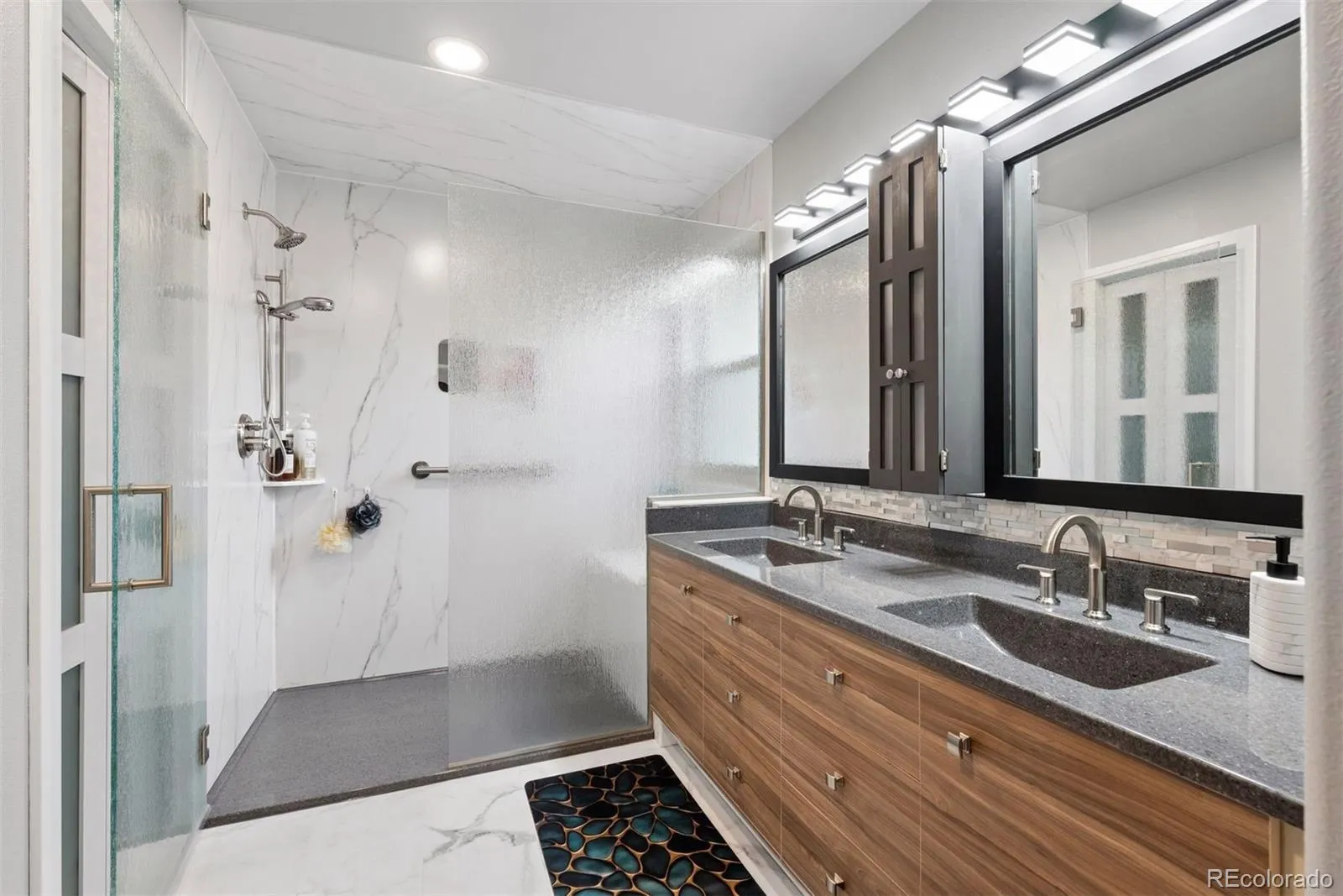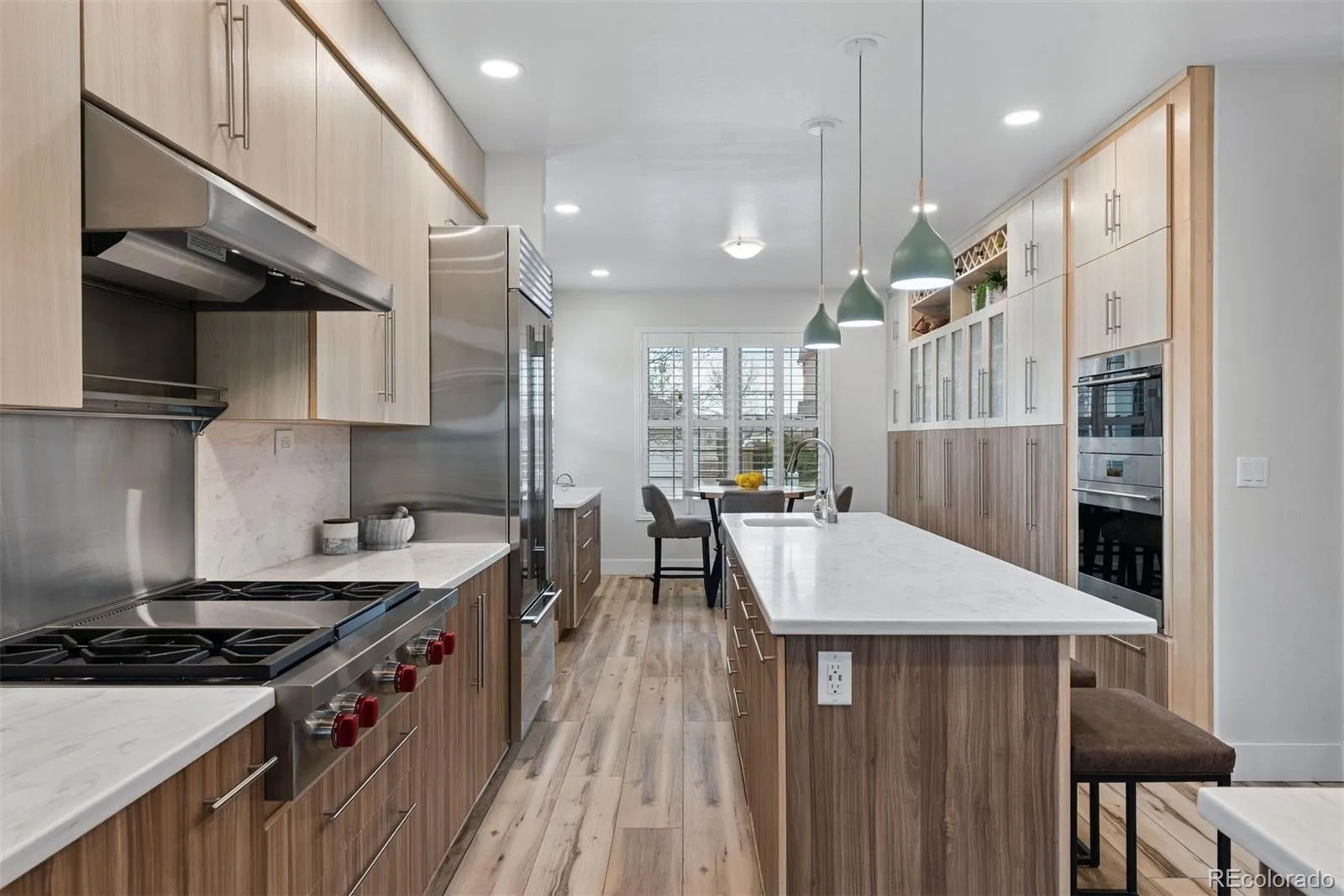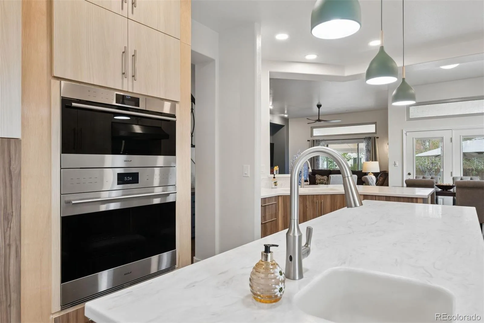 Stunning curb appeal on the best lot in the entire neighborhood! Timeless elegance describes this impeccably maintained residence, where thoughtful design and elevated finishes come together in effortless harmony. Perfectly balanced for refined entertaining and comfortable living, the home offers 10-foot ceilings, newer furnace and central air, a spacious 3-car garage, impact resistant roof, and a completely updated kitchen and primary bedroom suite that is as functional as it is beautiful. The kitchen serves as the heart of the home, appointed with high-end kitchen appliances featuring a Wolf gas cooktop, Wolf double wall ovens, range hood, and Sub-Zero refrigerator! The kitchen also includes custom-made Wilsonart engineered countertops, a designer tile backsplash, recessed and pendant lighting, an expansive center island with an additional sink, and floor-to-ceiling custom cabinets and drawers. The eat-in kitchen also boasts a custom coffee bar! The kitchen opens seamlessly into the dining area and inviting living room, where a corner gas fireplace creates a warm, understated focal point. The main-level primary suite offers a serene retreat, with an oversized bay window overlooking the private 1/4 acre backyard. The en-suite bath provides a spa-inspired experience, including 2 separate closets. Upstairs, a versatile loft adds flexible living space, along with two generous bedrooms adjacent to a full bath. The unfinished lower level presents exceptional potential for a home theater, a bathroom (rough-in plumbing in place), gym, fourth bedroom, or custom entertaining space. The fully fenced backyard offers privacy and room to relax, with front and rear sprinkler systems for easy maintenance, outdoor speakers, an expansive paver patio with an outdoor kitchen, children’s playset, and like-new storage shed. Set on a quiet street in Springs Ranch, the home is ideally located near the Powers Corridor, with convenient access to shopping, dining, and everyday amenities.