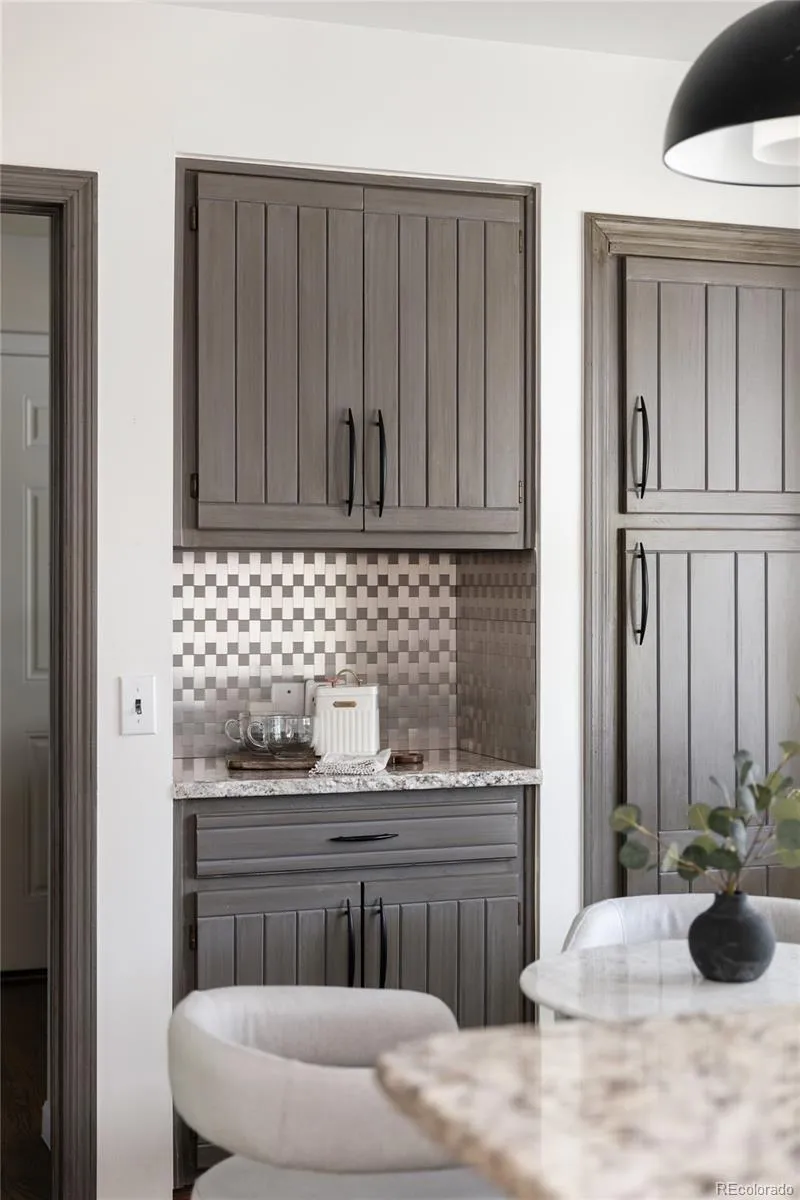 Inside this 4-bed, 3-bath ranch-style home, you’ll find an open, functional flow with plenty of space to spread out. The kitchen features granite countertops, stainless steel appliances, a wet bar, coffee bar, and breakfast nook. It opens to the living room and connects seamlessly to the dining room, where a double-sided fireplace anchors both spaces.