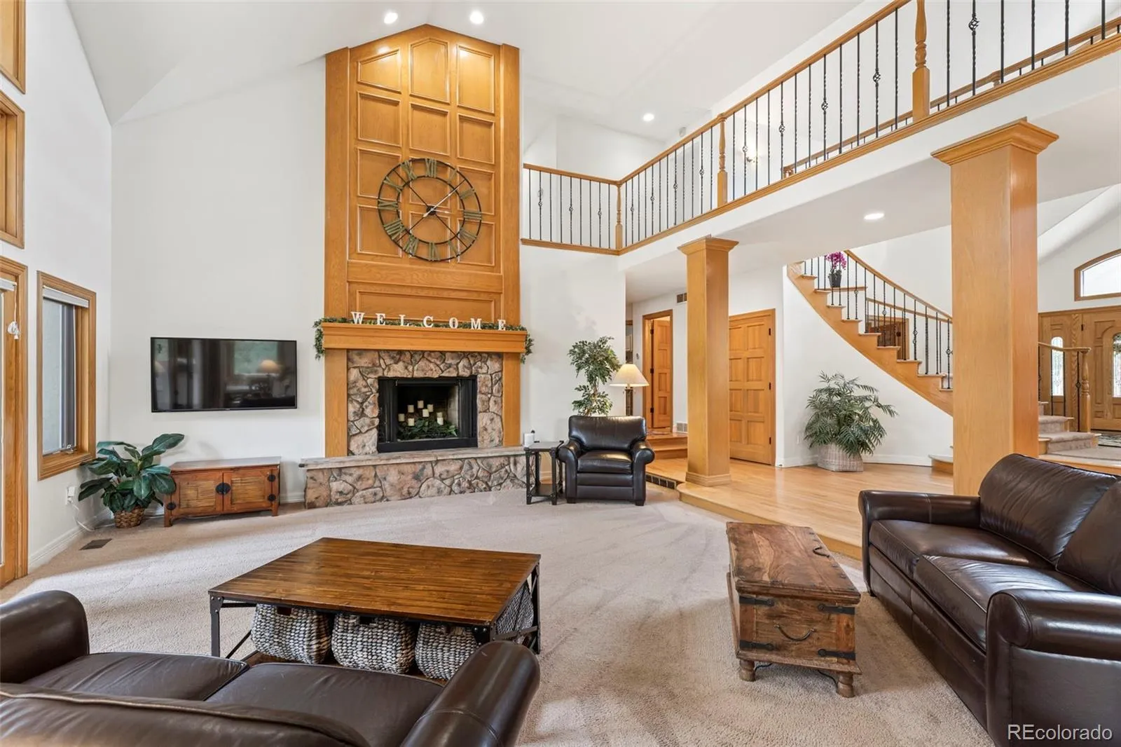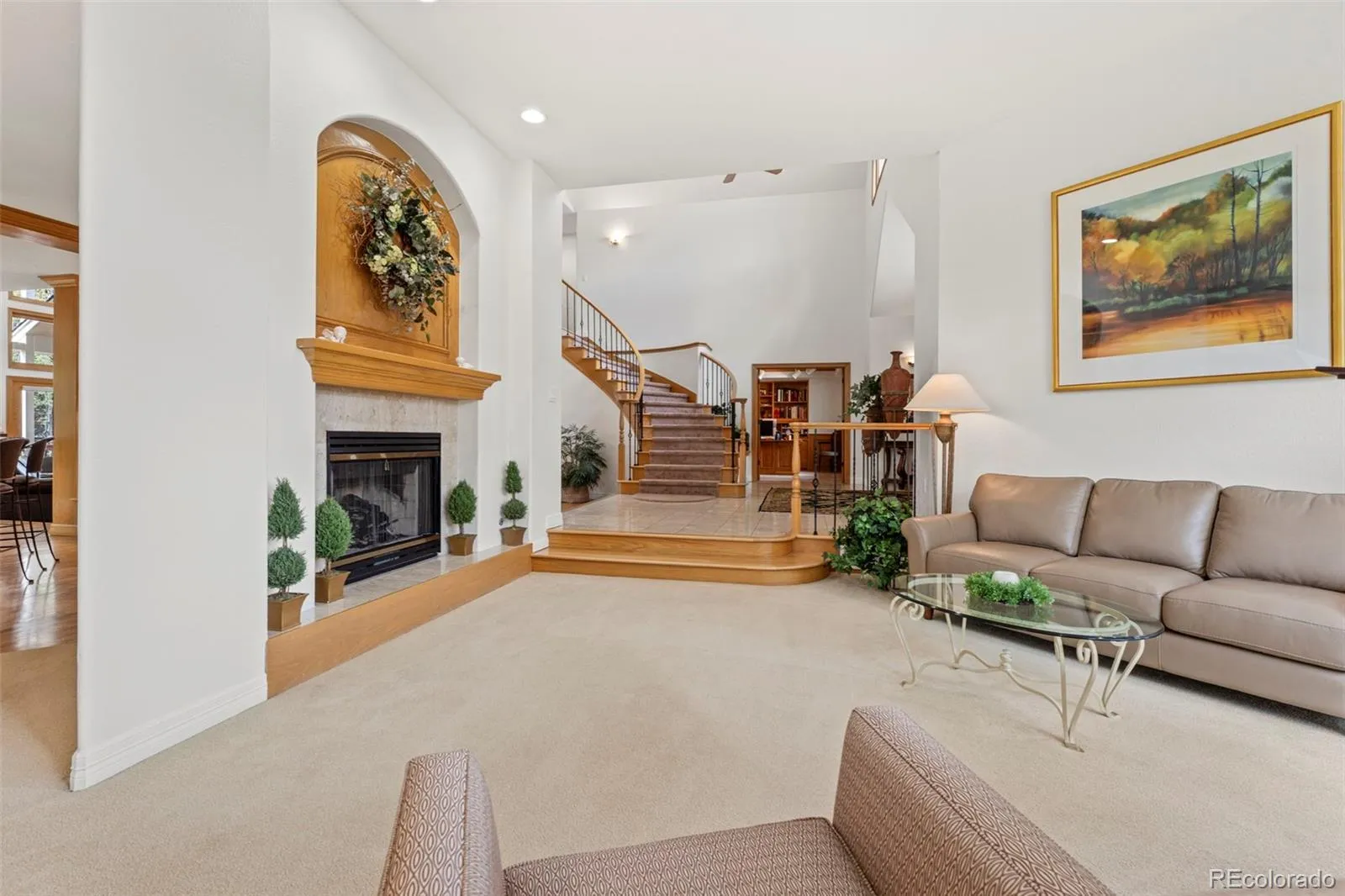 Inside, the main level features a functional, flowing layout with three fireplaces anchoring the family room, formal living room, and main-floor primary suite. The spacious kitchen opens to the main living areas and includes a cozy eat-in nook, while a formal dining room provides space for gatherings and special occasions. A dedicated office with an attached half bath adds flexibility.