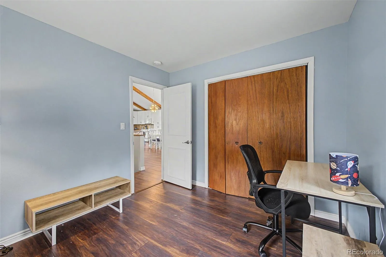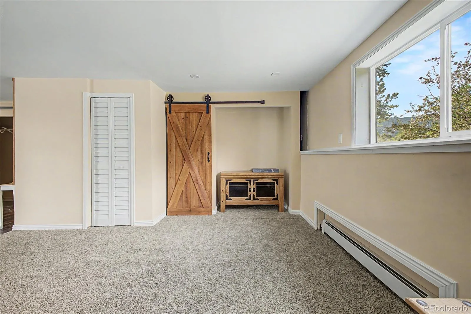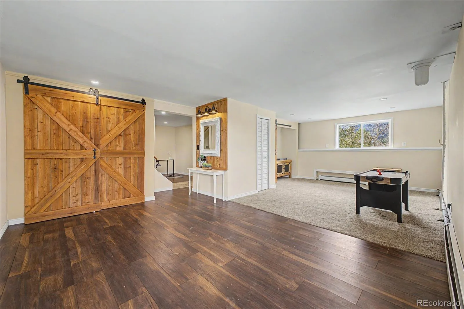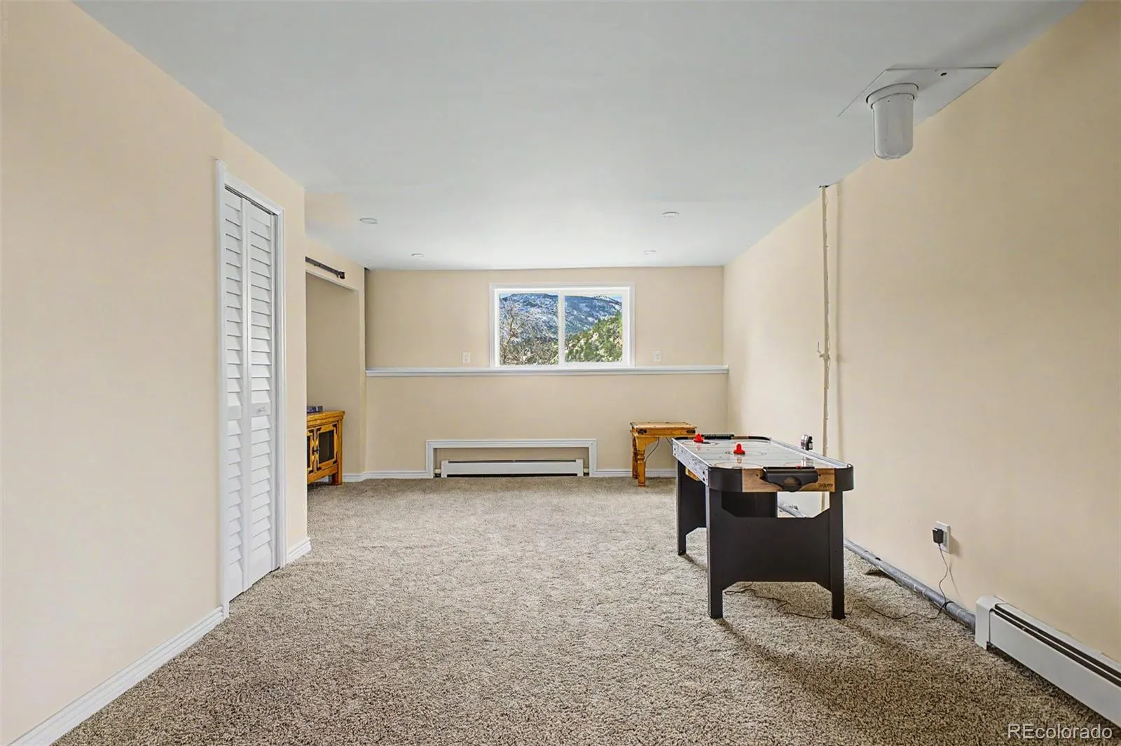This beautifully updated Pinewood Springs mountain retreat nestled on a scenic hillside offers sweeping forest views, modern comforts, and a warm, inviting atmosphere throughout. The reimagined interior features a bright contemporary kitchen with an expansive island, high ceilings, and large windows that fill the home with natural light, while the open-concept living area showcases beamed vaulted ceilings, soothing tones, LVP flooring, and a cozy electric fireplace. The lower-level walkout lives like a first floor, providing a versatile living space with a comfortable family room, guest bedroom, open den ideal for an office or flex area, and direct access to the attached garage and a spacious laundry/utility room with abundant cabinetry. Outside, a large deck invites relaxation and entertaining amid breathtaking mountain scenery and a fenced in yard. Fire mitigation, a newer Class A fire-rated roof, and durable noncombustible James Hardie siding offer peace of mind, while an attached one-car garage and garden shed provide ample storage for mountain gear. With a voluntary HOA, residents enjoy unique community benefits including a rural water system, year-round road maintenance through county tax districts, and access to a private swimming hole on the Little Thompson River. Surrounded by Roosevelt National Forest, the neighborhood offers many opportunities for hiking, mountain biking, and wildlife viewing, all while being conveniently located just 10 minutes from downtown Lyons, 20 minutes from Estes Park, and 30 minutes from Boulder and Longmont—an ideal blend of seclusion, natural beauty, and accessibility.
