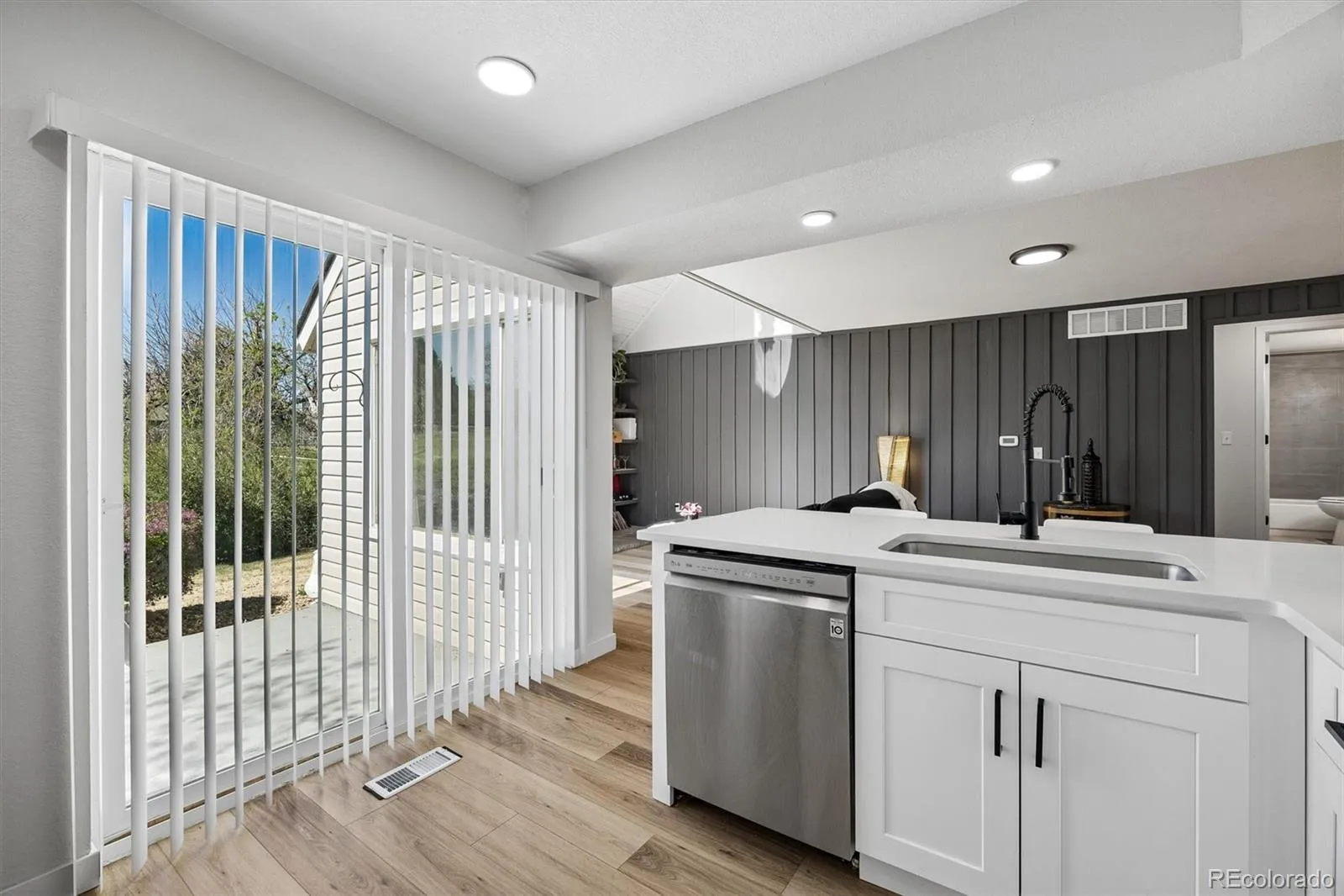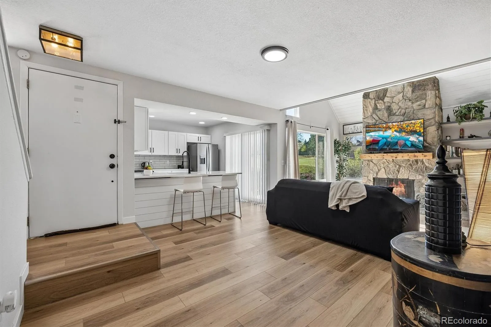 Inside, you’re greeted by a bright, open layout enhanced by luxury vinyl plank flooring and abundant natural light. The fully updated kitchen features quartz countertops, stainless steel appliances, elegant finishes, and a seamless flow into the living and dining areas. Offering beautiful views of the golf course from the living room – ideal for both everyday living and entertaining.