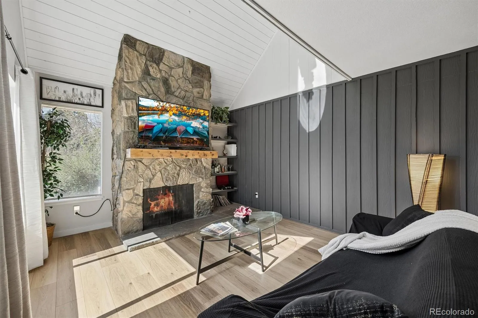 Upstairs boasts a bedroom / second living space that is complete with its own bathroom, balcony, and walk-in closet. The living room is anchored by a beautifully designed stone fireplace with custom built-in shelving, creating a warm and stylish focal point. Step outside to your private balcony overlooking the lush green fairways – the perfect place to unwind, host guests, or simply enjoy the view.