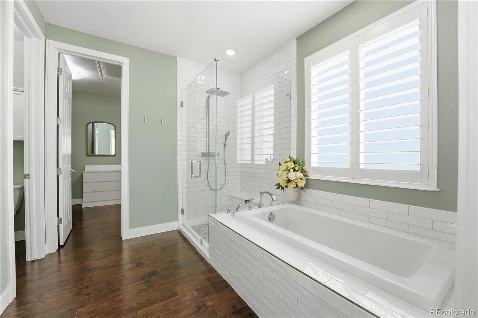 a bay window with garden views and a fully updated 5-piece bath with frameless shower,