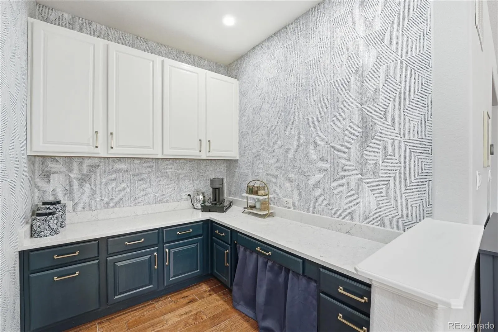 adjacent tech center/office includes quartz counters, built-ins, and Cat5 wiring.The great