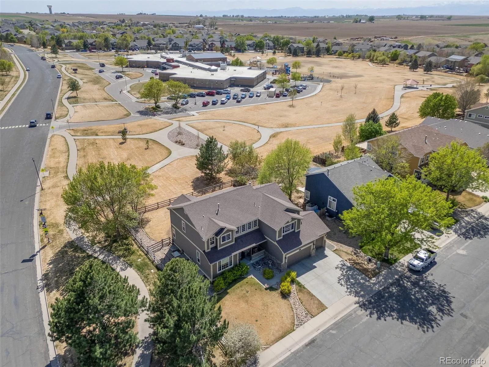 Welcome to this stunning, light-filled home in the highly desirable Pioneer Ridge neighborhood of Johnstown where space, style, and location come together beautifully. Offering 4 bedrooms, 3 bathrooms, and a rare, thoughtfully designed layout, this home is built to impress from the moment you walk in. All four bedrooms are conveniently located upstairs, creating a private retreat away from the main living areas, while a dedicated main-floor office provides the perfect work-from-home setup. The heart of the home is the massive family room, featuring soaring ceilings and oversized windows that flood the space with natural light and a gorgeous, open kitchen with double ovens & plenty of counterspace and cabinets! A striking staircase overlooks this area, adding architectural charm and an open, airy feel. The seamless flow from the entry to the dining room, kitchen, and family room makes this home ideal for both everyday living and entertaining. Whether hosting gatherings or enjoying a quiet night in, the layout offers both connection and comfort. Situated on a premium corner lot with no neighbors behind, you’ll enjoy added privacy and peaceful views. The 3-car garage provides ample space for vehicles, storage, or hobbies, while the unfinished basement offers endless potential to create the space you’ve always wanted-home gym, theater, or additional living quarters. Living in Pioneer Ridge means access to multiple parks, scenic walking paths, and beautiful mountain views, all while being just minutes from downtown Johnstown’s local markets, restaurants, and coffee shops. Homes like this don’t come along often-spacious, bright, and perfectly located! Schedule your showing today and experience everything this exceptional home has to offer.
