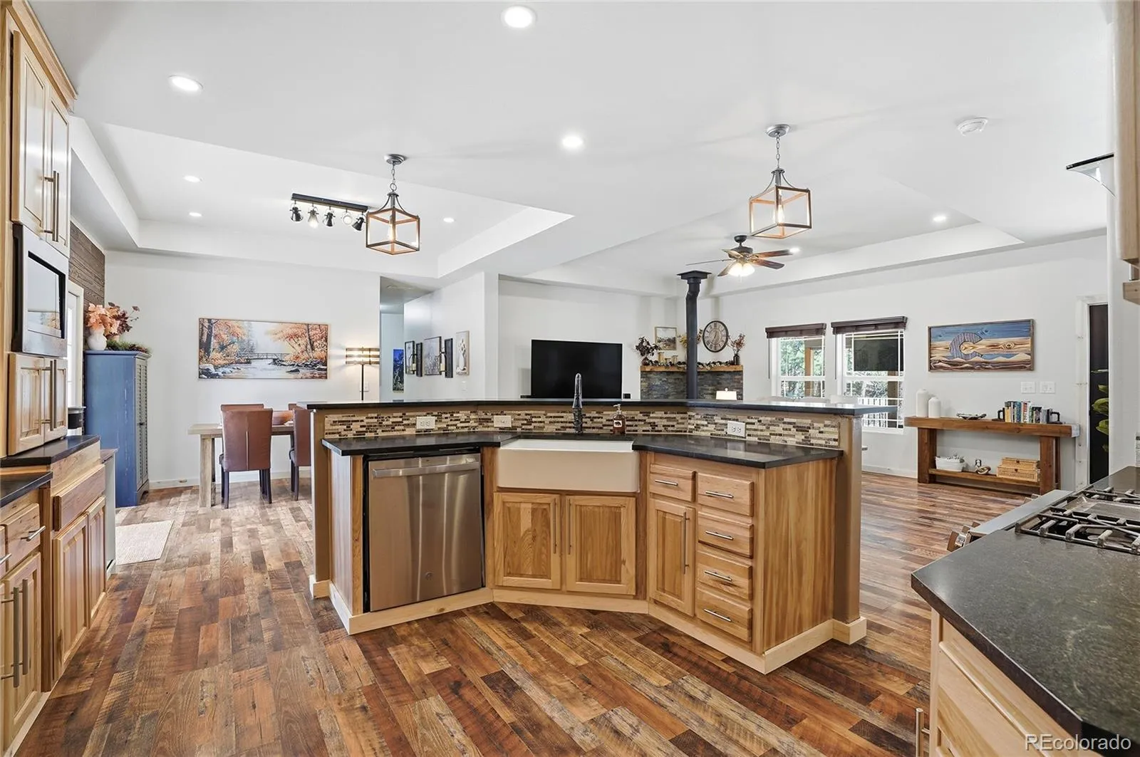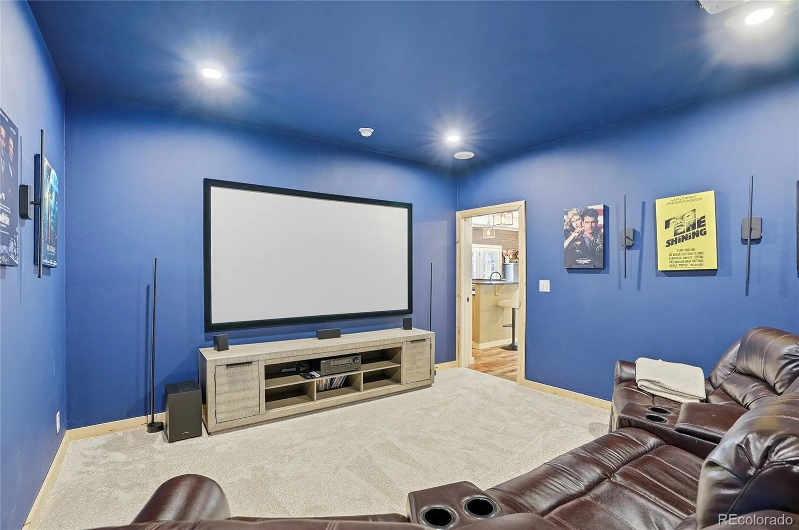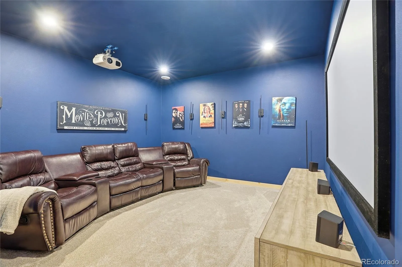 The home features 4 bedrooms, including one ideal for a home office or flex space, plus a dedicated home theater room perfect for movie nights, gaming, or entertaining. The open-concept kitchen flows seamlessly into the living room, creating an inviting space for gatherings and daily living. A cozy wood-burning fireplace adds warmth and charm, while central heat and A/C provide year-round comfort.