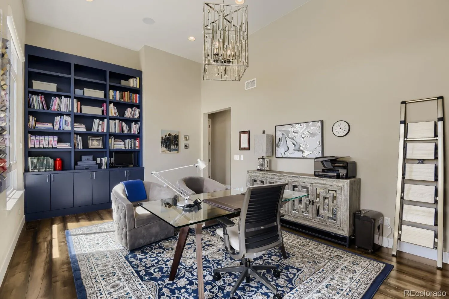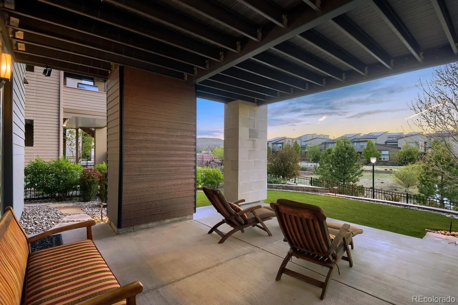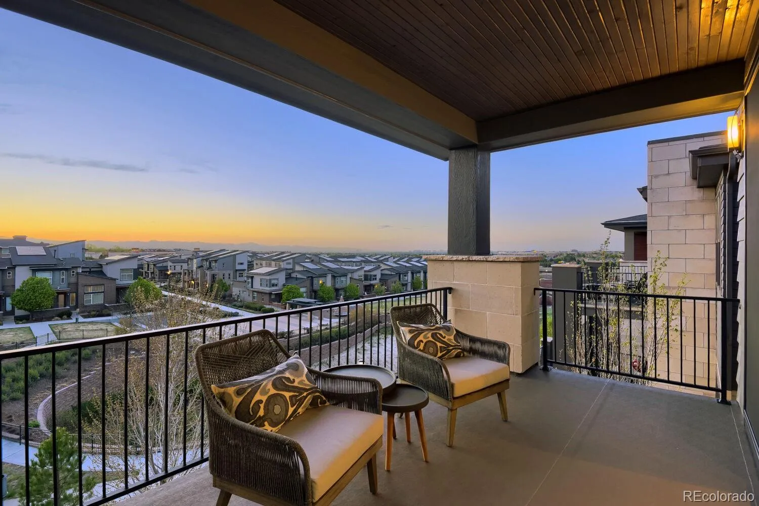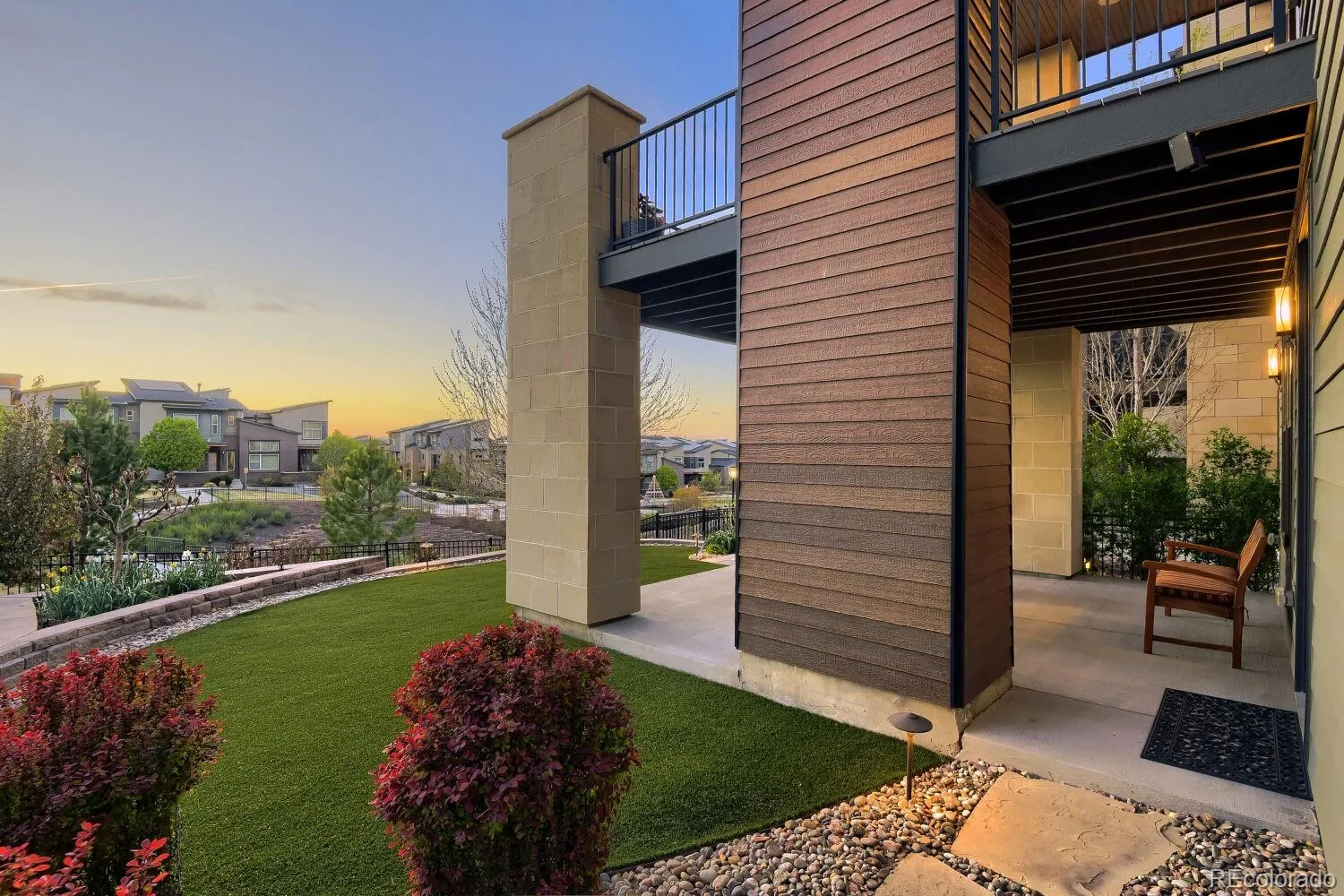 Experience elevated living in the highly sought-after Ridgegate community on Bellwether Lane. This exceptional 3-story home offers a rare blend of luxury, functionality, and design, complete with a private elevator servicing all levels. Thoughtfully crafted with engineered maple flooring, soaring 10’ ceilings, and high-end finishes throughout, every detail has been carefully considered. The heart of the home is the stunning main level, where an open-concept layout seamlessly connects the kitchen, dining, and great room. The chef’s kitchen impresses with a quartz waterfall island, Sub-Zero/Wolf appliances, full column refrigerator and freezer, wine cooler, abundant cabinetry, and a spacious walk-in pantry. The great room features a sleek ceramic tile gas fireplace, dry bar, and expansive sliding doors opening to the deck, perfect for indoor-outdoor living. A showstopping office with 13’ ceilings, built-ins, and a crystal chandelier completes the main floor. Upstairs, the luxurious primary suite offers a private balcony with panoramic Rocky Mountain views, a spa-inspired 5-piece bath with soaking tub, walk-in shower with dual shower heads, and a spacious walk-in closet with direct access to the laundry room. An additional bedroom with en-suite bath completes the upper level. The lower level provides a versatile bedroom or flex space with access to a covered patio. Additional highlights include Robern LED Bluetooth mirrors, smart home features, whole-home security, turf landscaping for low maintenance, and a 3-car tandem garage with climate-controlled storage. Ideally located just steps from parks, trails, Lone Tree Rec Center, library, and shopping, this is refined Colorado living at its best.