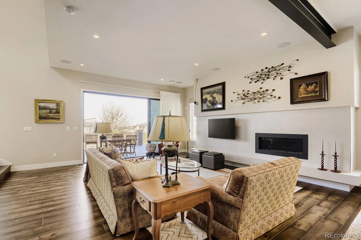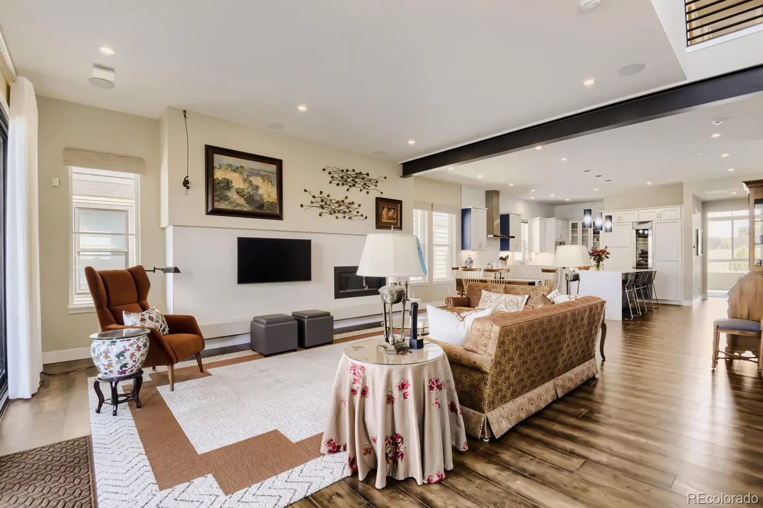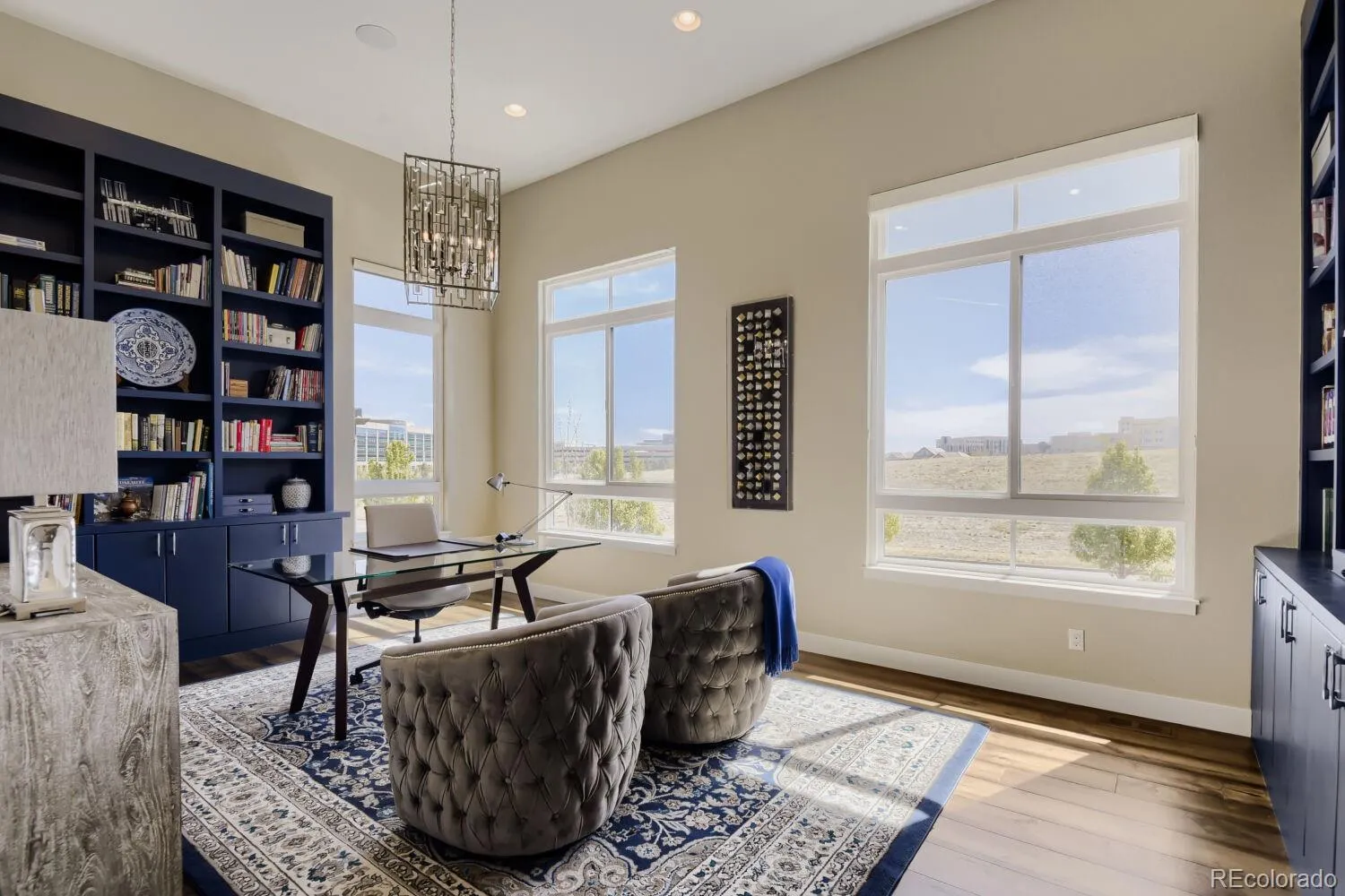 Experience elevated living in the highly sought-after Ridgegate community on Bellwether Lane. This exceptional 3-story home offers a rare blend of luxury, functionality, and design, complete with a private elevator servicing all levels. Thoughtfully crafted with engineered maple flooring, soaring 10’ ceilings, and high-end finishes throughout, every detail has been carefully considered. The heart of the home is the stunning main level, where an open-concept layout seamlessly connects the kitchen, dining, and great room. The chef’s kitchen impresses with a quartz waterfall island, Sub-Zero/Wolf appliances, full column refrigerator and freezer, wine cooler, abundant cabinetry, and a spacious walk-in pantry. The great room features a sleek ceramic tile gas fireplace, dry bar, and expansive sliding doors opening to the deck, perfect for indoor-outdoor living. A showstopping office with 13’ ceilings, built-ins, and a crystal chandelier completes the main floor. Upstairs, the luxurious primary suite offers a private balcony with panoramic Rocky Mountain views, a spa-inspired 5-piece bath with soaking tub, walk-in shower with dual shower heads, and a spacious walk-in closet with direct access to the laundry room. An additional bedroom with en-suite bath completes the upper level. The lower level provides a versatile bedroom or flex space with access to a covered patio. Additional highlights include Robern LED Bluetooth mirrors, smart home features, whole-home security, turf landscaping for low maintenance, and a 3-car tandem garage with climate-controlled storage. Ideally located just steps from parks, trails, Lone Tree Rec Center, library, and shopping, this is refined Colorado living at its best.