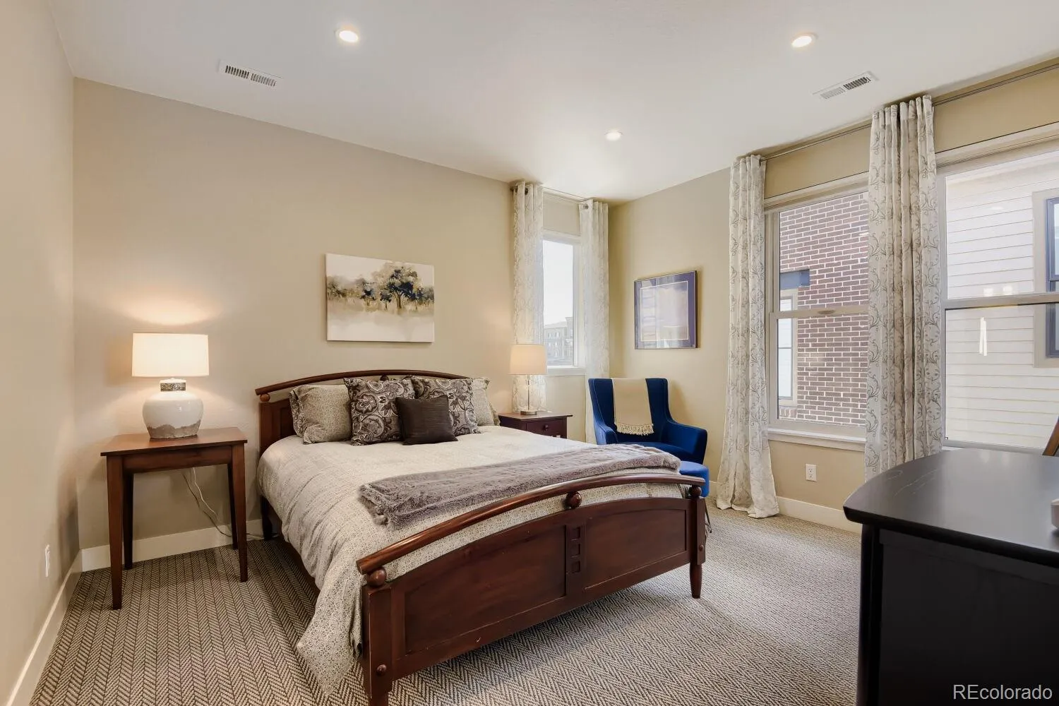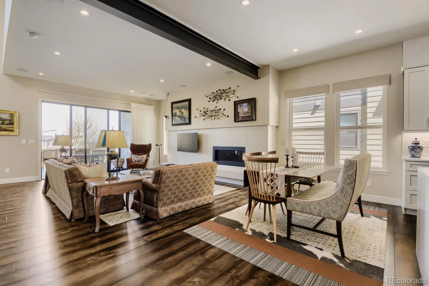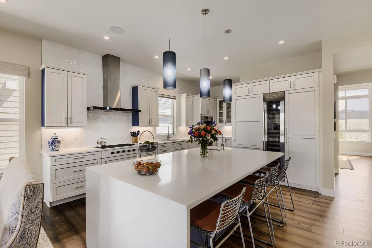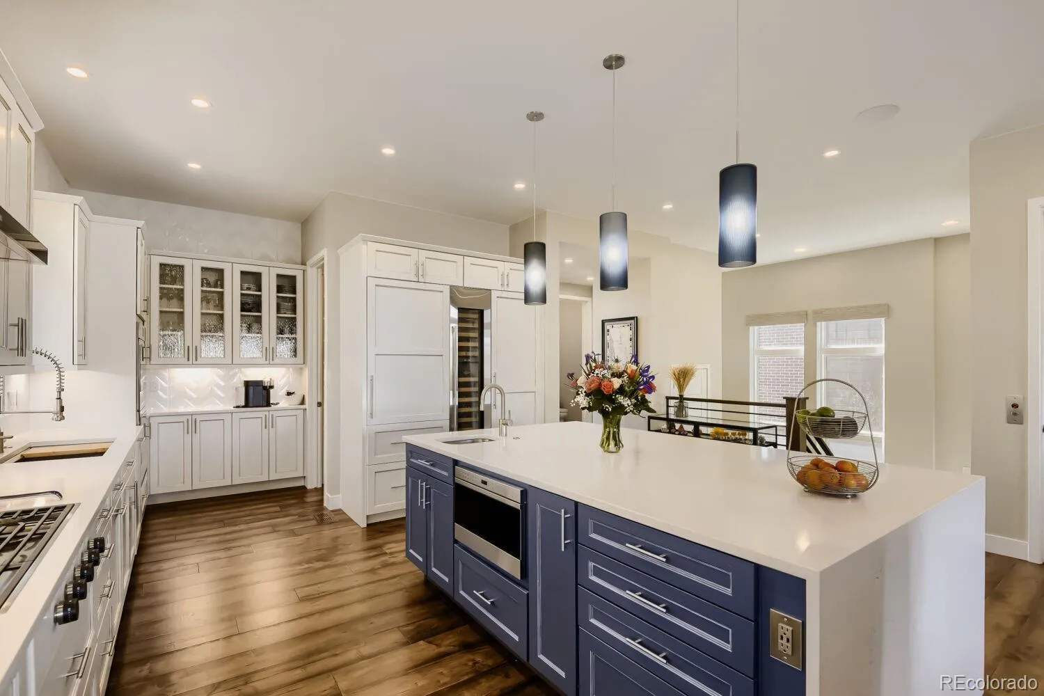 Experience elevated living in the highly sought-after Ridgegate community on Bellwether Lane. This exceptional 3-story home offers a rare blend of luxury, functionality, and design, complete with a private elevator servicing all levels. Thoughtfully crafted with engineered maple flooring, soaring 10’ ceilings, and high-end finishes throughout, every detail has been carefully considered. The heart of the home is the stunning main level, where an open-concept layout seamlessly connects the kitchen, dining, and great room. The chef’s kitchen impresses with a quartz waterfall island, Sub-Zero/Wolf appliances, full column refrigerator and freezer, wine cooler, abundant cabinetry, and a spacious walk-in pantry. The great room features a sleek ceramic tile gas fireplace, dry bar, and expansive sliding doors opening to the deck, perfect for indoor-outdoor living. A showstopping office with 13’ ceilings, built-ins, and a crystal chandelier completes the main floor. Upstairs, the luxurious primary suite offers a private balcony with panoramic Rocky Mountain views, a spa-inspired 5-piece bath with soaking tub, walk-in shower with dual shower heads, and a spacious walk-in closet with direct access to the laundry room. An additional bedroom with en-suite bath completes the upper level. The lower level provides a versatile bedroom or flex space with access to a covered patio. Additional highlights include Robern LED Bluetooth mirrors, smart home features, whole-home security, turf landscaping for low maintenance, and a 3-car tandem garage with climate-controlled storage. Ideally located just steps from parks, trails, Lone Tree Rec Center, library, and shopping, this is refined Colorado living at its best.