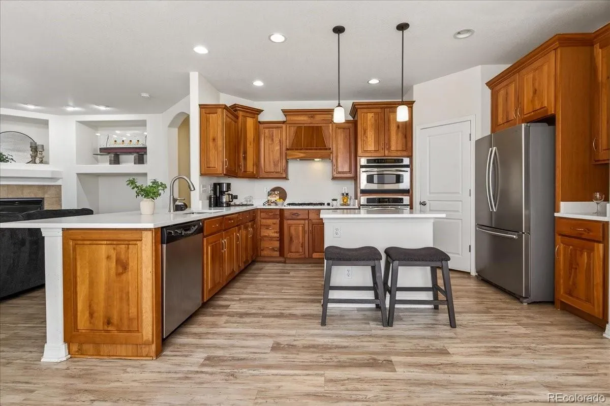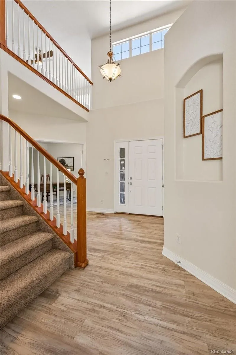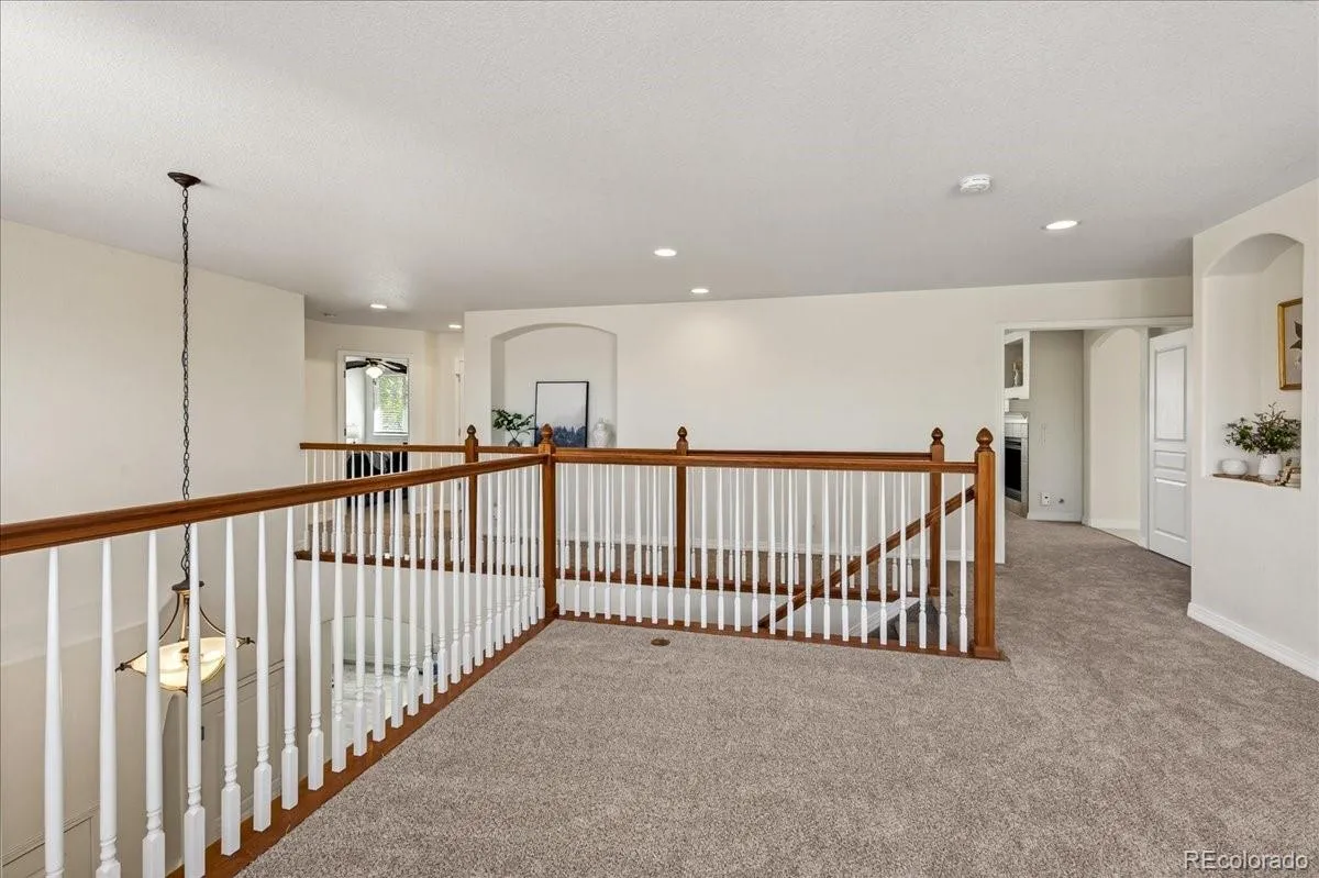 The breathtaking kitchen is a true centerpiece, showcasing brand-new white quartz countertops, a new sink, knotty cherry cabinets with abundant storage, a large pantry, stainless steel appliances, center island, and a bright eating space. The main level also includes formal living and dining rooms filled with natural light, a warm and inviting family room with a cozy gas fireplace, a convenient powder room, and a well-equipped laundry room with full-size washer and dryer, utility sink, and additional storage—located just off the attached 2-car garage. Upstairs, you’ll find a huge loft offering endless possibilities—perfect for a second office, media room, play area, or creative space. The primary suite features fresh carpeting, a spacious walk-in closet, private deck access, and a spa-like 5-piece bathroom with new LVP flooring. Two additional generously sized bedrooms and a full bathroom complete the upper level. The unfinished, insulated basement is a blank canvas ready for your personal touch, complete with rough-in plumbing for future expansion. Additional highlights include a newer furnace, central air conditioning, and water heater. Enjoy ample parking with a 3-car garage, plus a fantastic location within walking distance to the Turnberry Elementary School and neighborhood park. Residents also have access to a community pool—perfect for summer relaxation. Close to Bison Recreation Center as well! This home truly has it all—space, updates, and an unbeatable location. Welcome home!