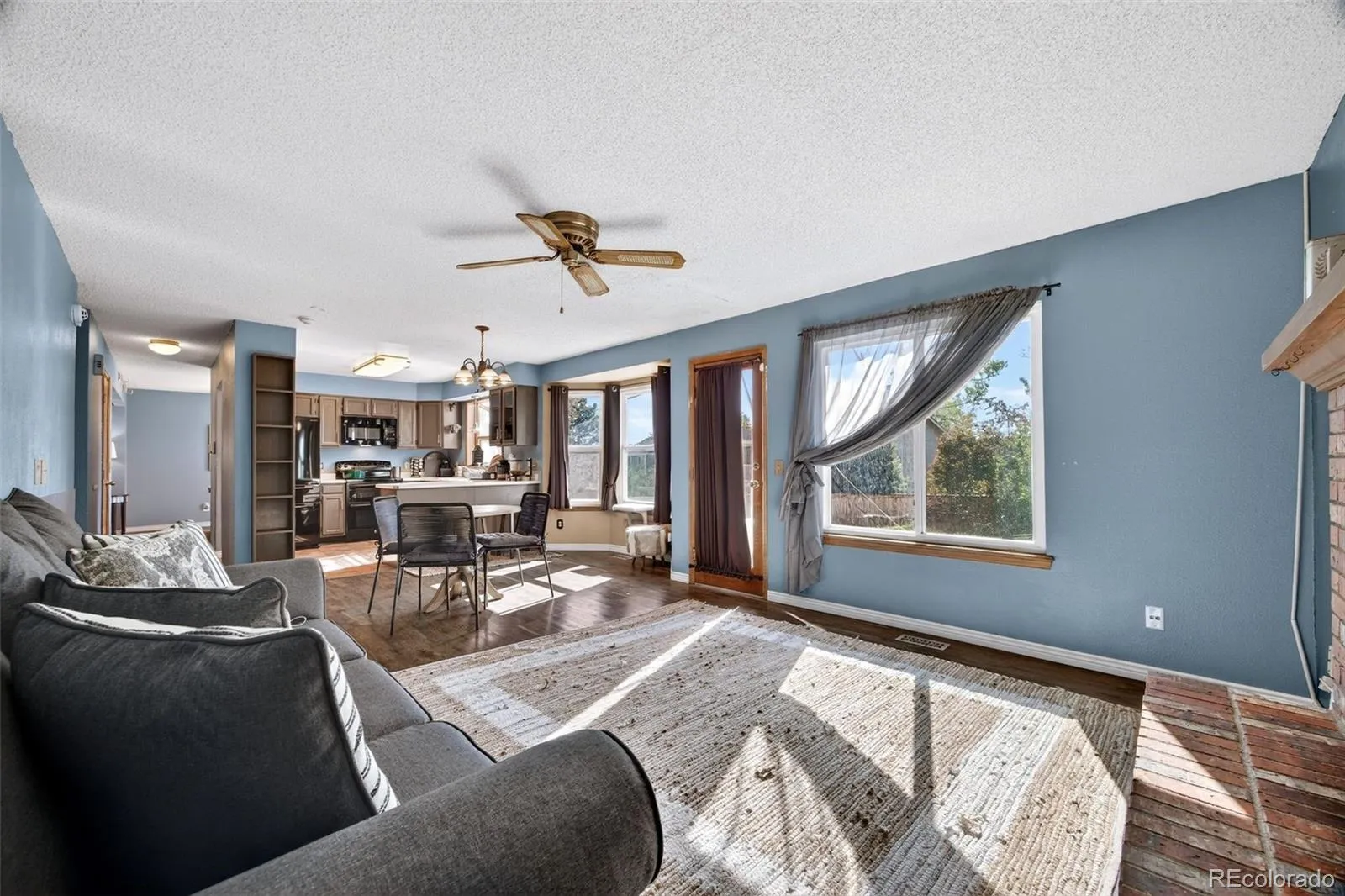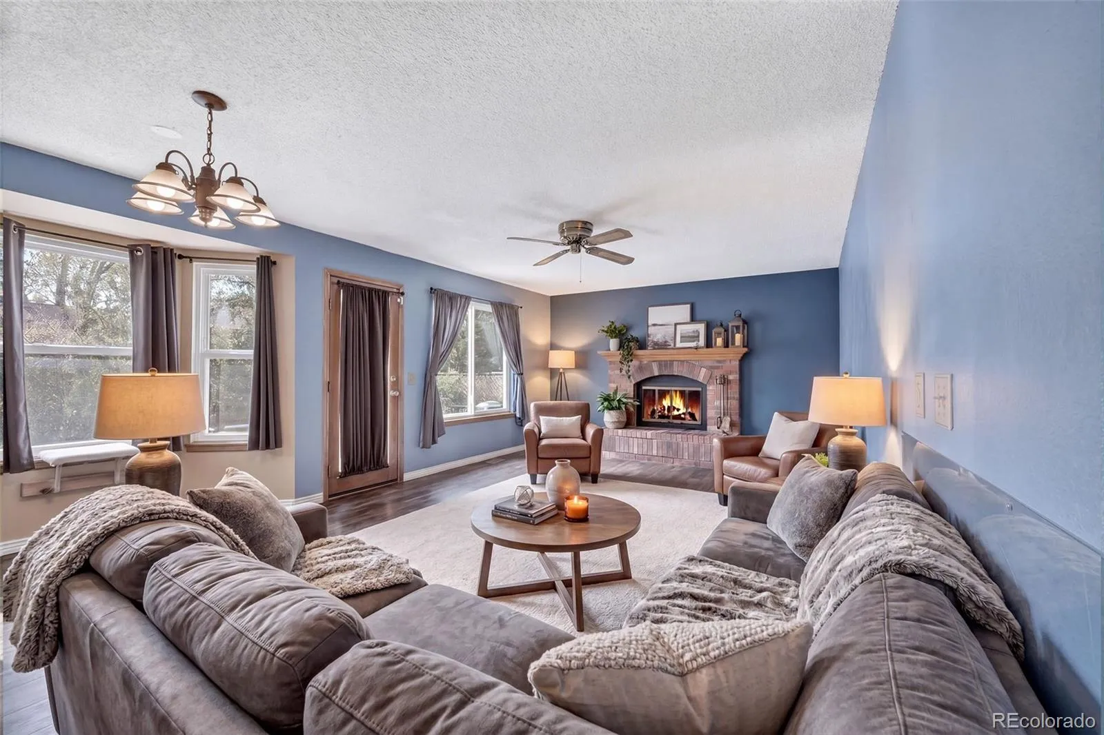 Welcome to 9222 Crestmore Way, a warm and inviting home tucked into the heart of Highlands Ranch where comfort, space, and character come together beautifully. From the moment you arrive, the mature landscaping and charming curb appeal set the tone for what’s inside. Step through the front door into a light filled interior featuring soaring ceilings and an open, airy layout that immediately feels like home. The main living space is anchored by a stunning brick wood burning fireplace that creates the perfect focal point for cozy evenings and relaxed gatherings. Natural light pours in through large windows, highlighting the rich flooring and thoughtfully designed flow between living, dining, and kitchen spaces. The kitchen offers generous counter space, abundant cabinetry, and a bright window over the sink, making it both functional and welcoming. It opens seamlessly to additional living and dining areas, ideal for entertaining or everyday living. Upstairs and down, the home offers flexible spaces that can easily adapt to your lifestyle, whether you need a home office, workout area, or additional lounge space. One of the standout features is the spacious backyard. This expansive outdoor area is truly a blank canvas, ready for your vision. Whether you dream of creating a lush garden, outdoor entertaining space, or play area, there is plenty of room to make it your own. Located in the highly desirable Highlands Ranch community, you are close to scenic trails, parks, and open space, with easy access to shopping, dining, and C470. Chatfield Lake Park is just a short 10 to 15 minute drive for boating and outdoor recreation, and you are about an hour from premier ski resorts for easy mountain getaways. Two refrigerators in the garage are included, offering added convenience and extra storage. This is a home that offers space, charm, and endless potential in one of the area’s most sought after neighborhoods.