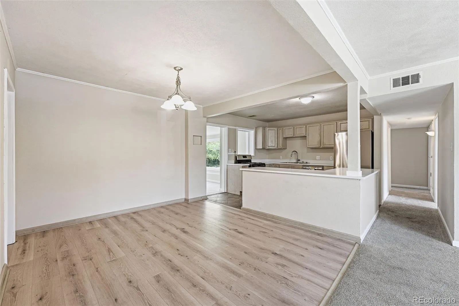 Classic mid-century red-brick ranch tucked between Anschutz Medical Campus and Del Mar Park. The bright open-concept floor plan centers around a large open kitchen adjacent dining and living rooms, plus a large south-facing bedroom/office. A hallway leads to two comfortable bedrooms, a spacious hall bath with tub, and an east-facing primary suite with ¾ bathroom. Through the kitchen, find a cozy family room including a gas log fireplace and wall to wall windows, with easy access to the back patio and large backyard. A large laundry/wash room provides interior access to a convenient storage room off the southwest corner of home. Recent upgrades include new sewer line (2026), two remodeled bathrooms (2026), new kitchen surfaces (2026), a driveway and walkways surrounding the home (2025), new gutters (2025), refrigerator (2024) and water heater (2022) as well as various window upgrades (2025). Easy Access to Hoffman Park, Del Mar Park and Pool, as well as Stanley Marketplace/Central Park. Quick commute to Anschutz and Denver Tech Center, or take nearby RTD light rail to DIA or Downtown.