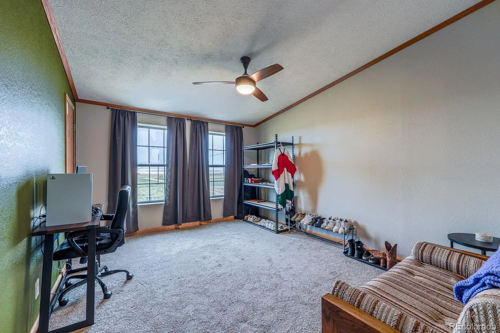 Welcome home to this incredible 40-acre property in Calhan—perfectly set up for your four-legged family members and wide-open living. Step inside to a spacious living room that welcomes you in, seamlessly connecting to a formal dining area complete with a built-in hutch. The remodeled kitchen features stainless steel appliances (all included), offering both style and functionality. The thoughtfully designed layout provides excellent separation of space. On one side of the home, you’ll find the primary suite, complete with a versatile bonus room—ideal for a nursery, home office, or private retreat. On the opposite side, a large great room just off the kitchen creates a cozy, inviting space perfect for entertaining. The secondary bedroom includes its own private bathroom, while a third bedroom and an additional full bath are tucked down the hall for added privacy. Additional interior features include a laundry room with a utility sink and ample storage. Step outside to a beautiful back deck where you can take in breathtaking views of Pikes Peak. The property is fully equipped for rural living, featuring a 60×40 insulated shop, a loafing shed ready for horses or cattle, and an additional shed currently set up as a fenced chicken coop. The land is fenced and cross-fenced with multiple water access points throughout, making animal care and land management easy and efficient. This is Colorado country living at its best—space, functionality, and unforgettable views all in one. Come see this property today!