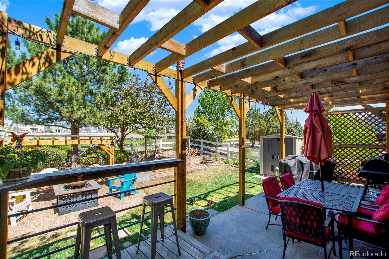 Welcome to this beautifully updated home on a quiet cul-de-sac in the Murphy Creek community. Backing directly to the Murphy Creek Golf Course, this property offers stunning backyard views and a sense of privacy that’s hard to find—and is conveniently located just a short drive to Denver International Airport. Step inside to discover durable LVP flooring throughout the main level, and fresh paint The spacious layout features 4 bedrooms and 4 bathrooms, with updated finishes throughout—including a newly updated primary bathroom complete with double sinks and a sleek frameless shower. Enjoy the convenience of main floor laundry, with washer and dryer included. Upstairs and in the finished basement, you’ll find cozy carpeted spaces. The basement is built for fun and entertaining, featuring a media area, ping pong space, and a convenient powder bath. The roof was replaced in 2020, offering added peace of mind. The kitchen is equipped with stainless steel appliances, all included. In the backyard enjoy Colorado evenings around the firepit or chiminea, unwind in the swing chairs, or host under the pergola—all while taking in the golf course views. The patio table and chairs are included, along with bar stools on the back patio. A storage shed and raised garden bed add extra functionality. The tandem 3-car garage provides plenty of room for vehicles, toys, or a home gym setup. Community amenities include a pool, clubhouse, tennis courts, and playground—perfect for enjoying a friendly neighborhood. This is the kind of home that checks all the boxes—location, layout, updates, and outdoor living.