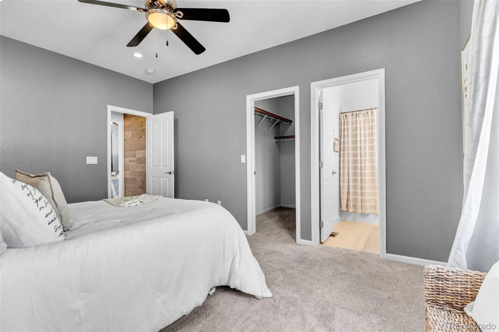 Upstairs, both bedrooms function as primary suites, each with its own full bathroom and walk-in closet. The main primary includes a dual-sink vanity, adding that extra level of convenience buyers are looking for. With 2.5 bathrooms total, the layout is flexible and works well for guests, roommates, or a true dual-primary setup.