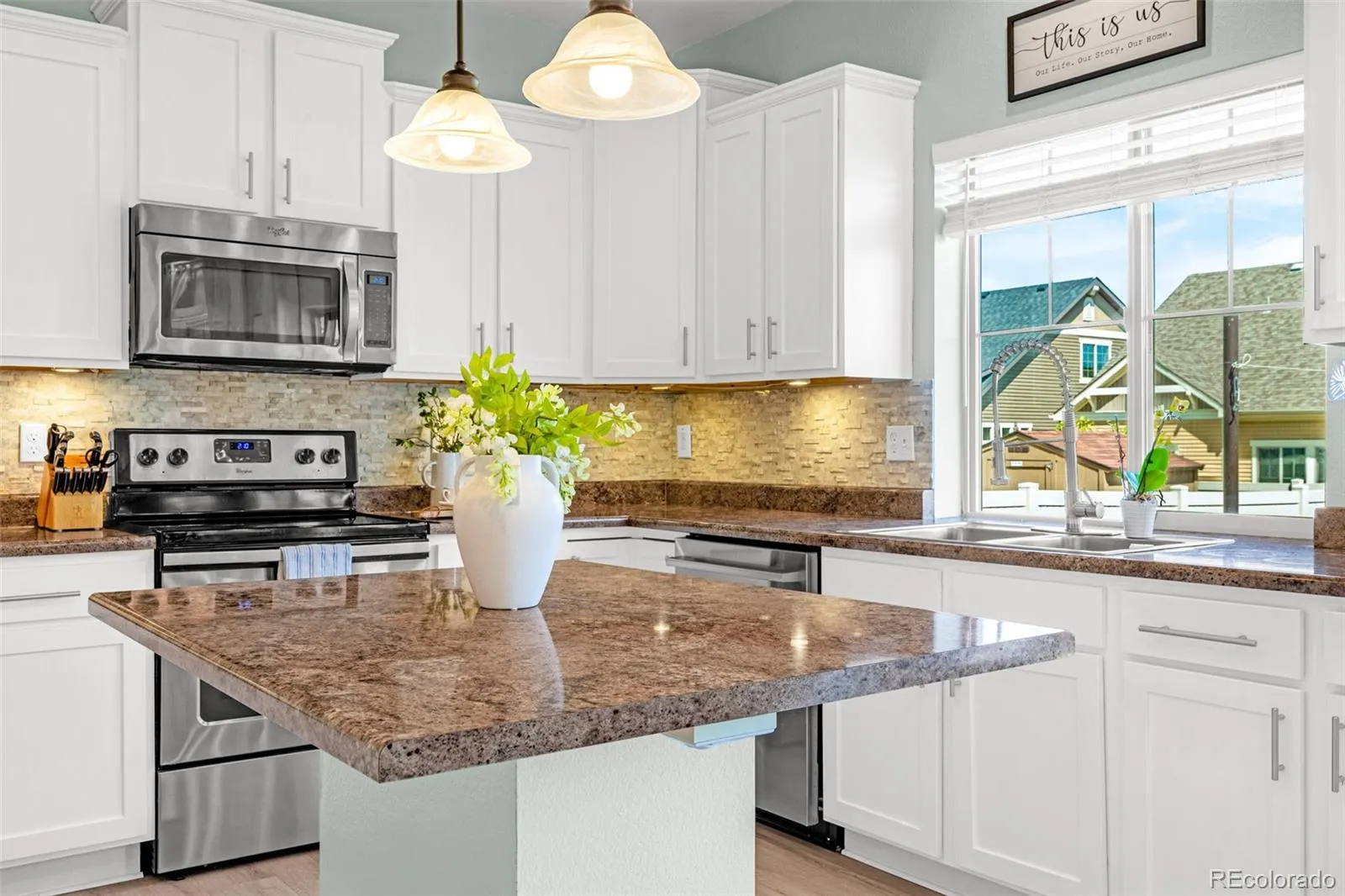 Outside, enjoy a freshly landscaped backyard, nearly new vinyl siding, and a custom concrete walkway that enhances curb appeal. A future community park, splash pad, and community hub at 47th & Telluride (coming 2027) adds long-term enjoyment to the neighborhood. A paid-off solar system, new roof and siding installed in 2025 with transferable warranties complete the package—delivering comfort, efficiency, and connection.