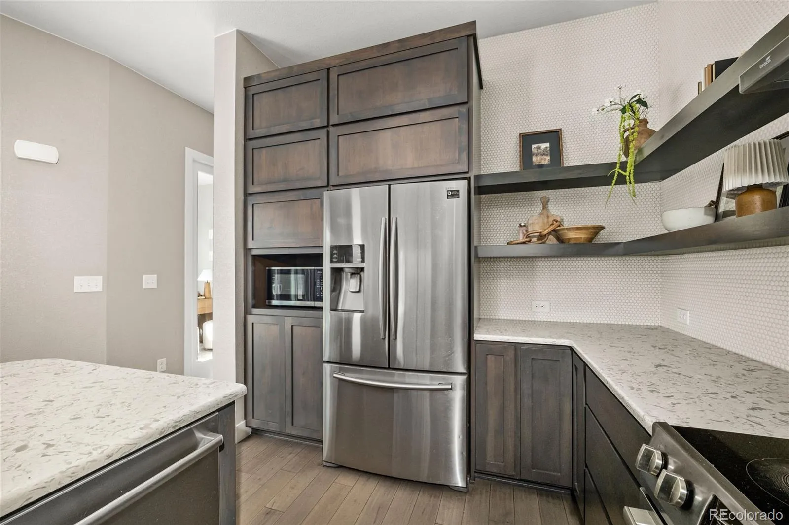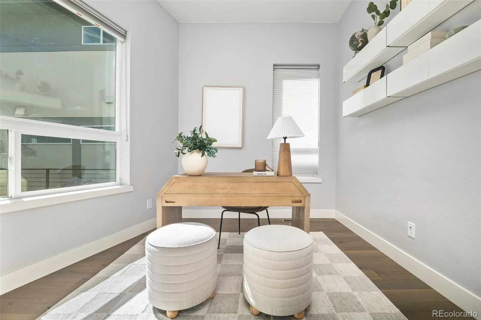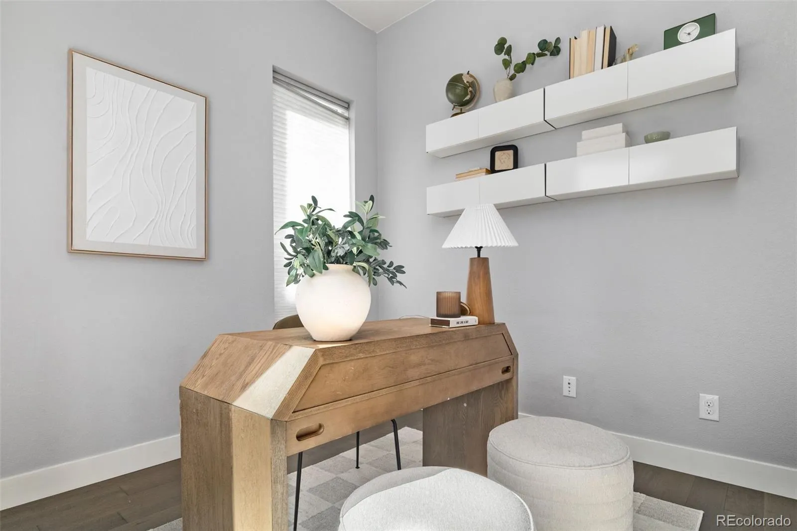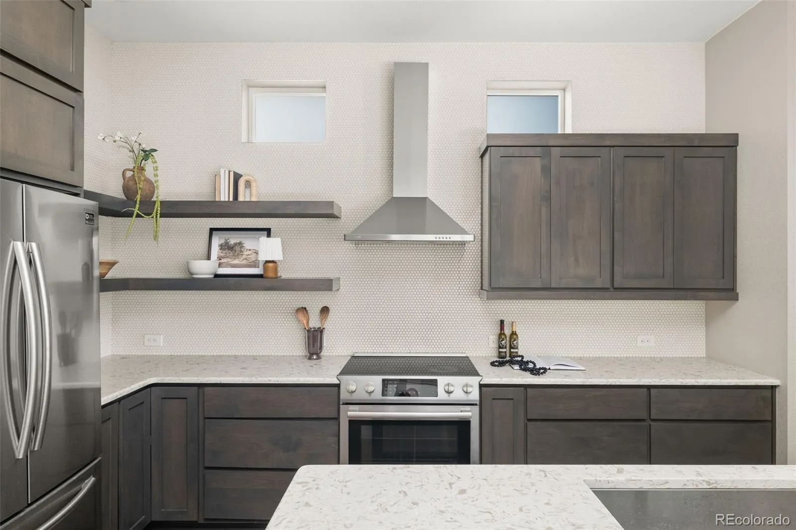 This modern, open-concept masterpiece in Midtown seamlessly blends sleek architectural lines with the warmth of natural light, courtesy of its soaring ceilings and expansive windows. The main level is anchored by a bright, flowing layout featuring rich hardwood floors and a high-end kitchen equipped with quartz countertops and stainless steel appliances, a space designed equally for quiet mornings and vibrant entertaining. Retreat upstairs to a spacious primary suite that serves as a private sanctuary, complete with a double vanity, a walk-in shower, and generous closet space, alongside two additional bedrooms and a second full bath. The home’s versatility continues in the finished basement, which offers a private guest suite or home office with its fourth bedroom, full bathroom, wet bar, and flexible lounge area. Outside, the lifestyle is effortless with a fenced-in, low-maintenance turf yard and a spacious patio perfect for relaxing evenings, while the oversized two-car garage provides dedicated storage for all your Colorado gear. Strategically located just two minutes from the 24-mile Clear Creek Trail system and a short walk to local breweries and parks, this home puts you within 15 minutes of Downtown Denver and Golden, and only 25 minutes from Boulder. It is a thoughtfully designed residence that captures the very best of Denver’s vibrant culture and Colorado’s active, outdoor spirit.