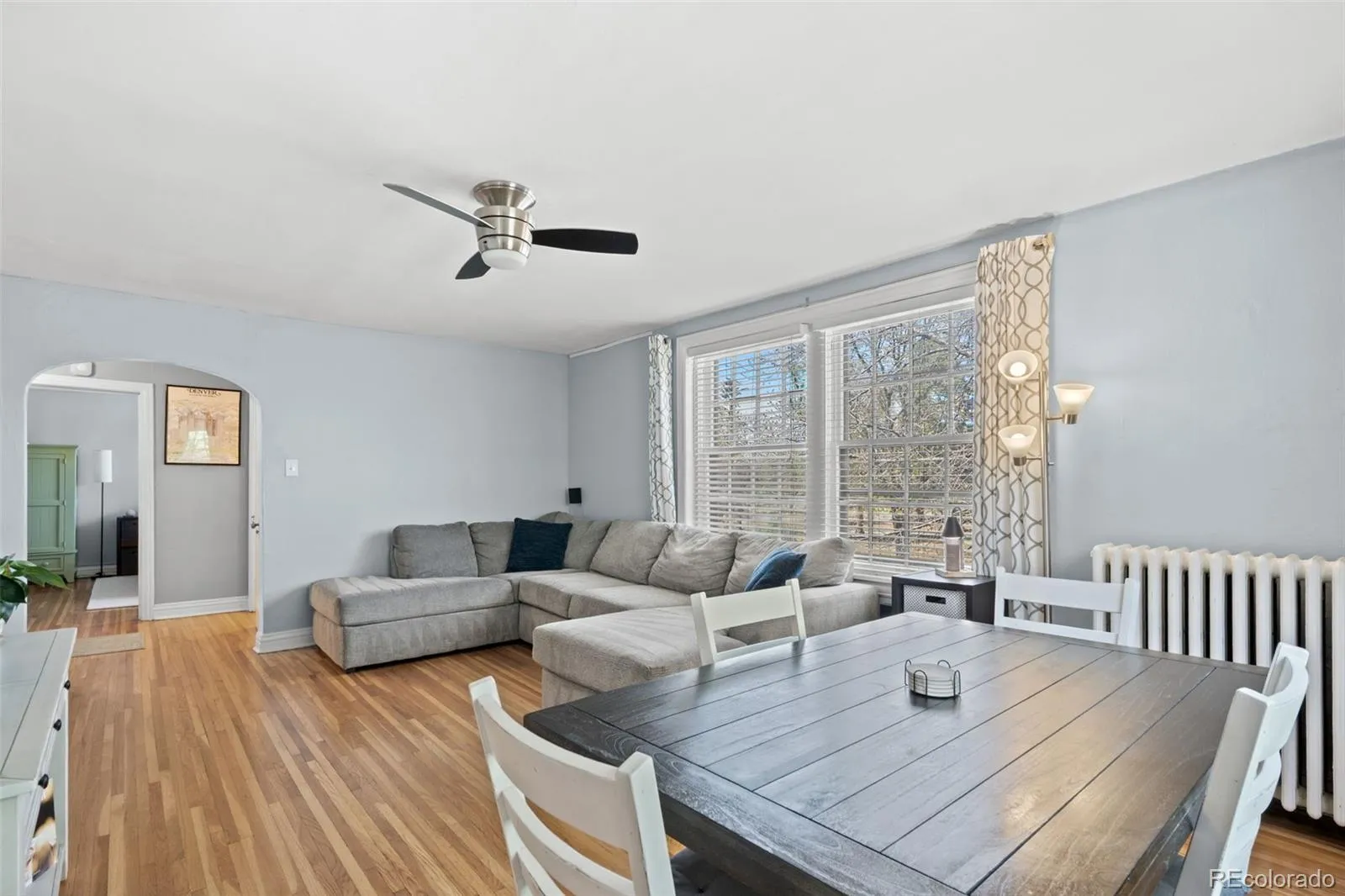 Welcome to this Denver historic gem, perfectly situated just across from City Park and walking distance to the vibrant energy of East Colfax. Located on the second floor, this inviting condo offers an abundance of natural light with oversized windows, overlooking the park, creating a warm and airy feel throughout. Inside, you’ll find beautiful hardwood floors and a thoughtfully designed layout with both a spacious living room and a distinct dining area—ideal for entertaining or enjoying quiet evenings at home. The updated kitchen features modern finishes and functionality. The spacious primary bedroom has a walk-in closet for ample storage. A second bedroom, conveniently located just off the living room, provides flexible space for a home office, guest room, or creative studio. Please note this room is non-conforming, offering versatility to suit your needs. This home also includes a rare one-car garage, providing convenience and protection year-round, along with a private locked storage unit (roughly 3ft by 7 ft) in the basement for all your extras. Residents enjoy access to coin laundry and a truly special outdoor space—a charming, fenced perennial English garden that offers a peaceful retreat right at home. Whether you’re taking a stroll to nearby parks, restaurants, and cafes, or relaxing in your sunlit living space, this condo offers the perfect blend of comfort, character, and unbeatable location.