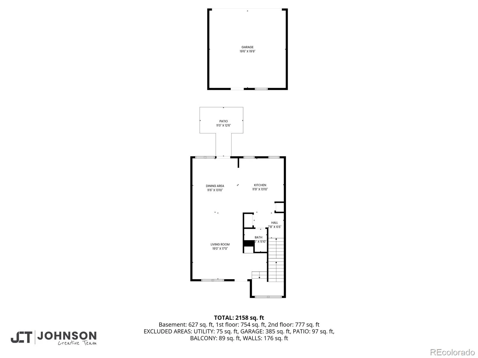 Outdoor spaces include a quiet, fenced yard with low-maintenance turf and a private back patio, along with a detached 2-car garage. Additional features include central forced air heating and cooling, recessed lighting, a ceiling fan in the primary bedroom, engineered wood flooring on the main level, carpet in the upper bedrooms and basement, and a Ring doorbell system already installed.