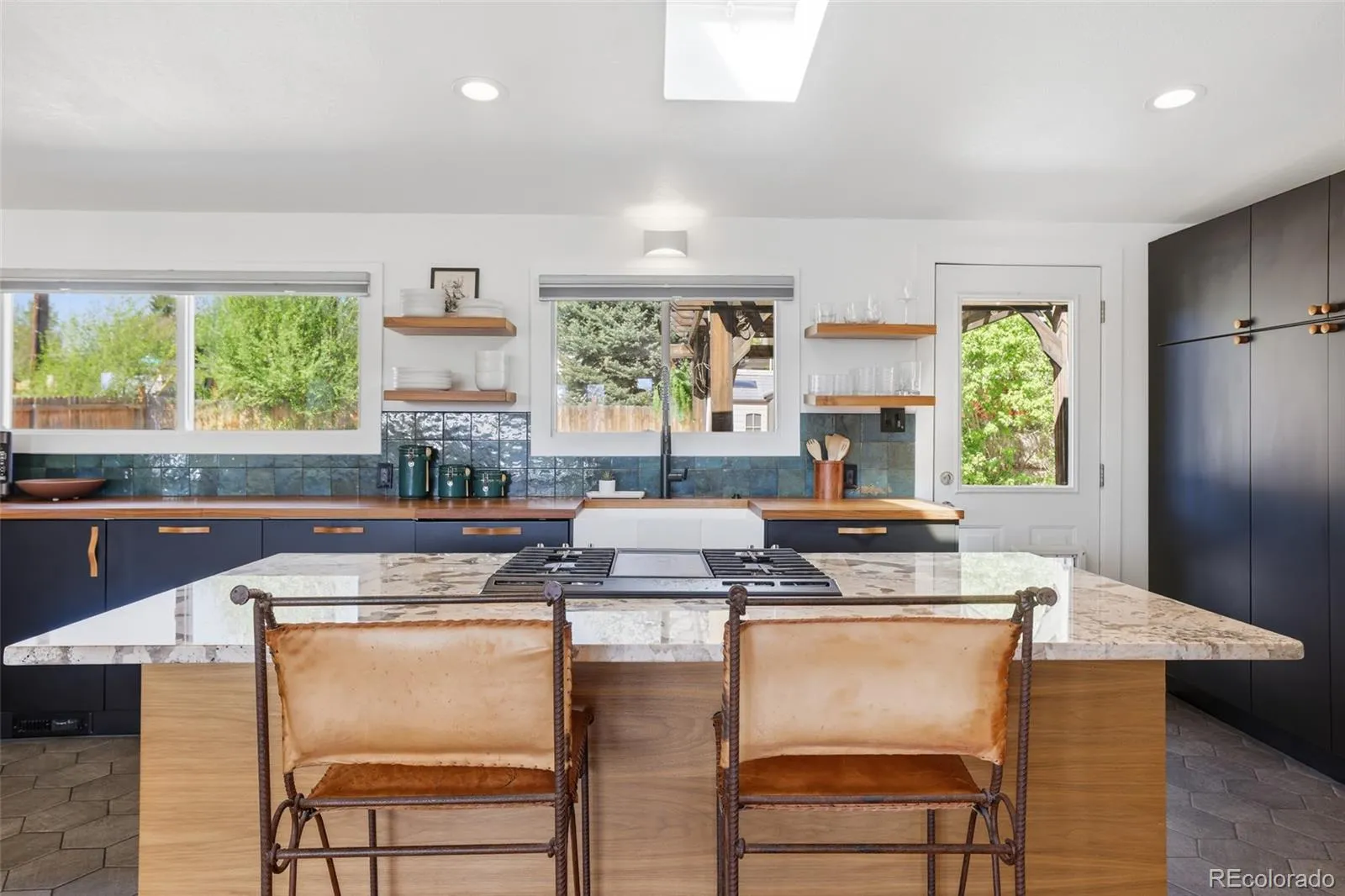 Harvey Park has a way of holding onto its character, and this 1956 Burns brick home fits right in — with thoughtful upgrades that have had time to settle into something that just feels right. The kitchen is built for the way people actually live, with block and granite countertops, matching stainless appliances, a Sub-Zero wine cooler, and a panel-front Bosch dishwasher integrated so cleanly into the cabinetry it disappears. High ceilings rise at the heart of the home where a skylight fills the space with natural light throughout the day. The primary bedroom features a custom carpenter-built closet — fitted drawers, open shelving, and a sliding barn door — and a spa-inspired bathroom with a rain shower worth lingering in. Miele stackable laundry is tucked away neatly, and the deep single-car garage offers more storage and flexibility than the footprint suggests. Oak hardwood floors, smart home integration throughout, and a backyard built for gathering make this one of the more complete homes you’ll find in the neighborhood. This is a home that’s been cared for — and it shows.